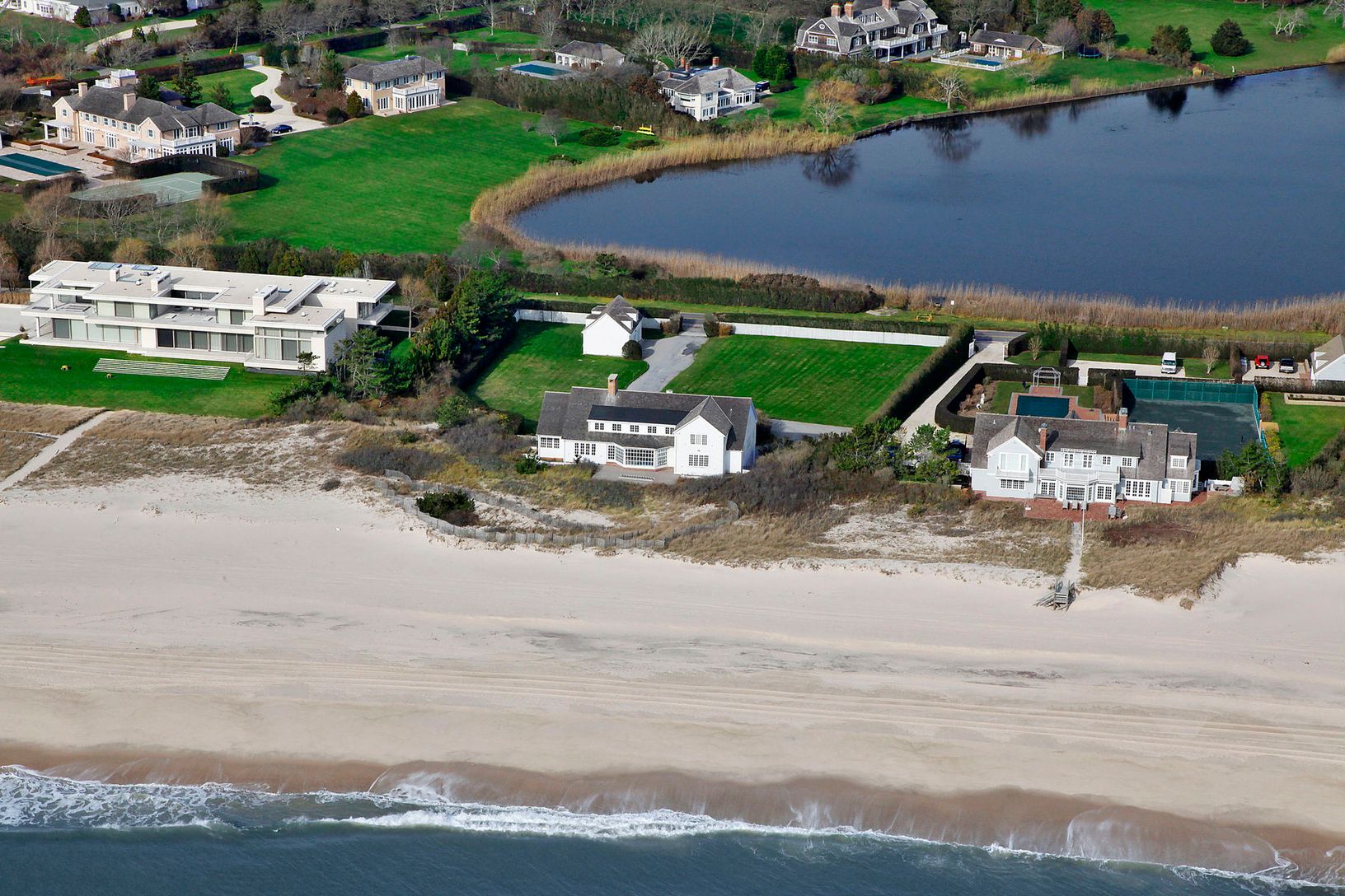 For the first time in over a half century, this property is being offered for sale. Set in one of the most desirable locations of the Hamptons. Behind the lush green hedges is a spectacular residence on two, beautifully landscaped acres with 287.26 ft of fabulous oceanfront. This home offers amazing ocean and pond views from all levels. The house includes a double-height, 17 ft great room, formal dining room, sun room and a third floor. A tota