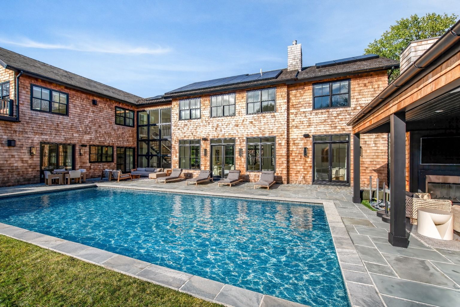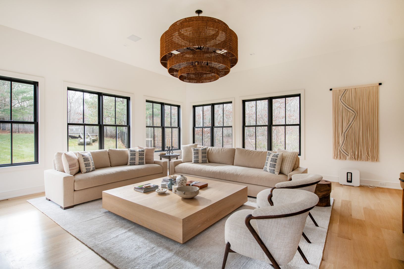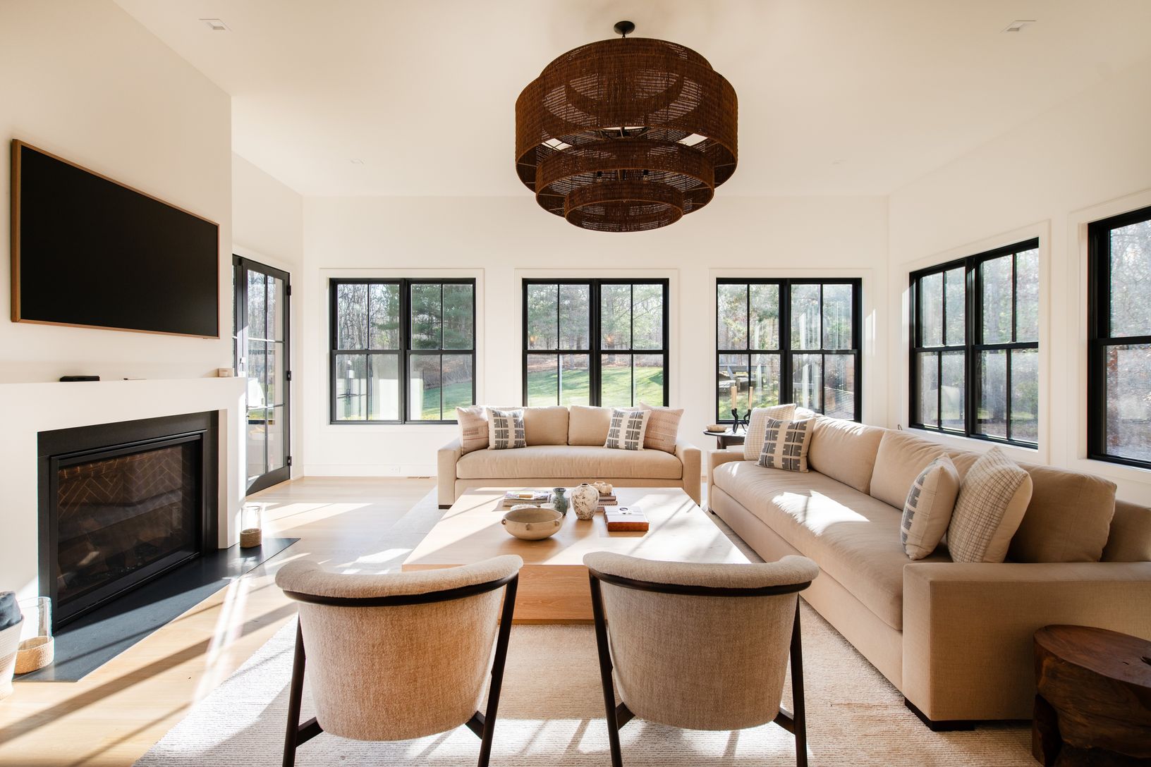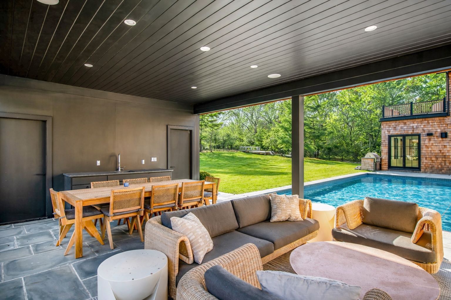 Available July 2026. Experience luxury living at this stunning brand new construction with designer furnishings available to rent for the first time. Sited on a private 1.5 acres, this transitional masterpiece offers ample space for entertainment and relaxation. As you enter through the foyer, you're swept into the dramatic light-filled great room, featuring soaring ceilings, a fireplace, and french doors leading out to the outdoor living spac