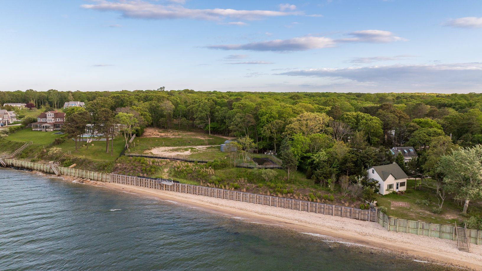 A once-in-a-generation opportunity awaits on the storied “Gold Coast” of the Hamptons: a 3.6-acre waterfront estate perched high atop a bluff with 260 feet of private beach frontage and panoramic views across Great Peconic Bay, Robins Island, and the North Fork. This extraordinary property occupies the historic site of the original 1896 bluff-side cottage known as Mostly Hall, a beloved Hamptons landmark. Today, the land has been meticulously
