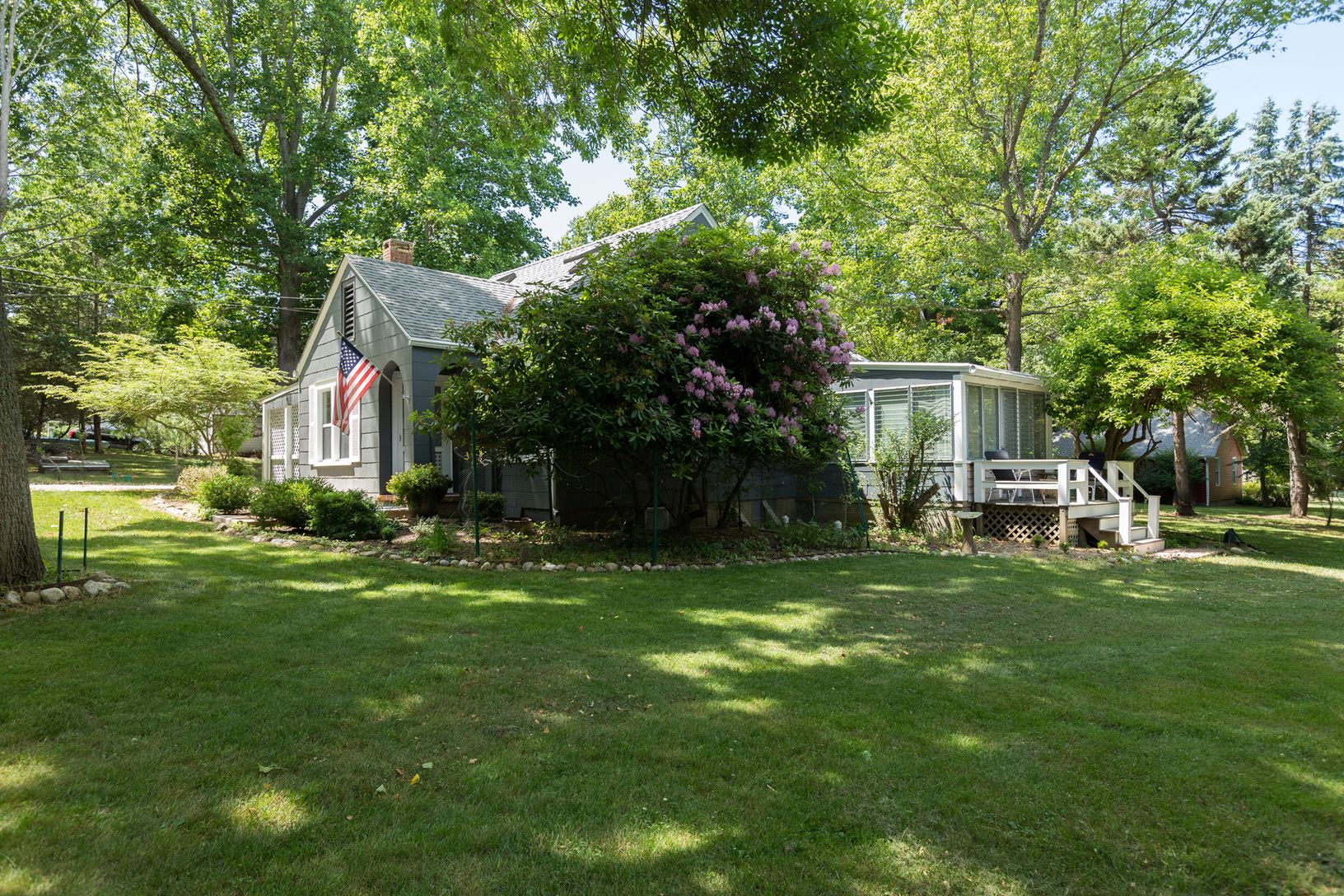 Adorable Craftsman style 3BR/1.5Ba Cottage centrally located. Access to Gardiner's Creek at the end of the private road for your kayak. LR w/FP & built-in book shelves opens to the formal DR. The first floor also hosts 2 BRs, Full BA, 3 season porch, Kitchen w/door to back yard & stairs up. The second floor has a large bedroom with half bath and lots of storage. Covered patio, shed for storage & spacious grounds all add to this Isl