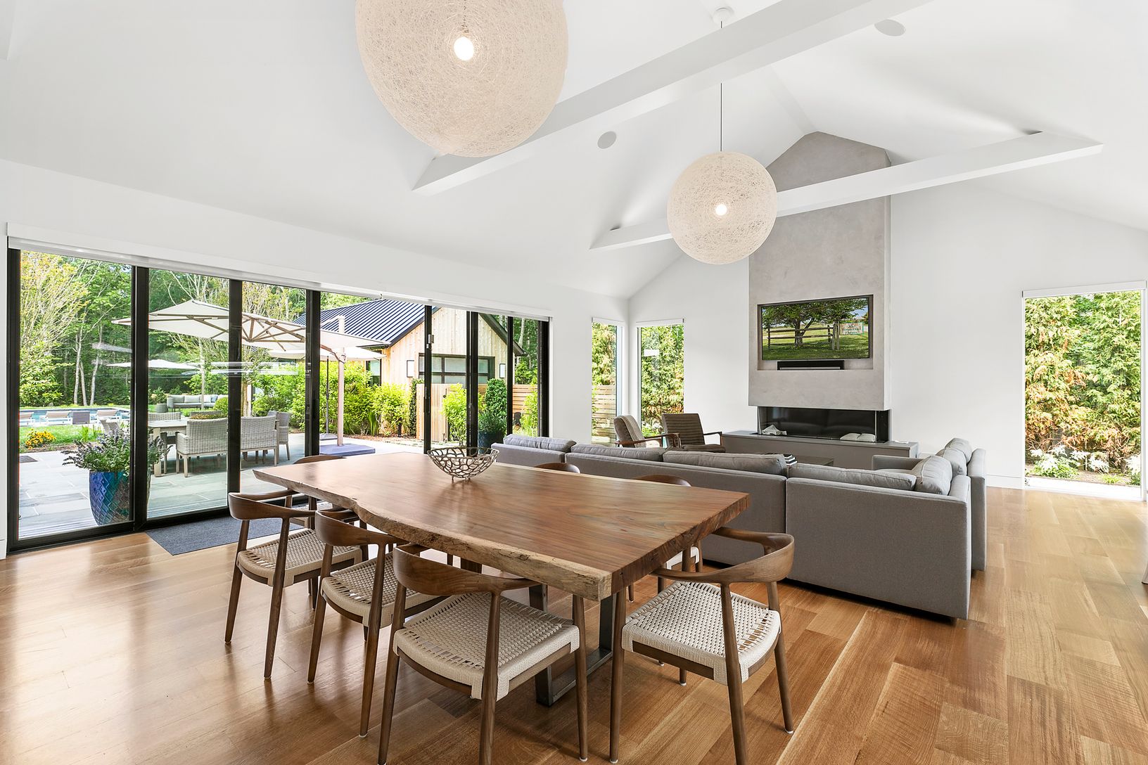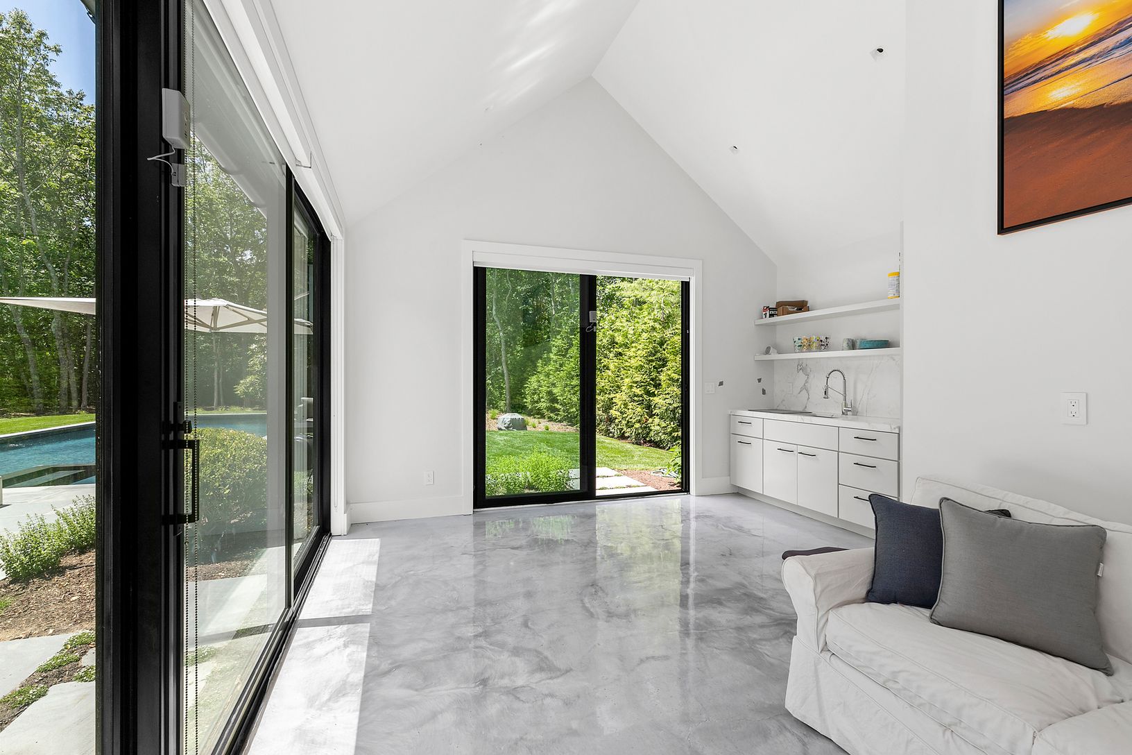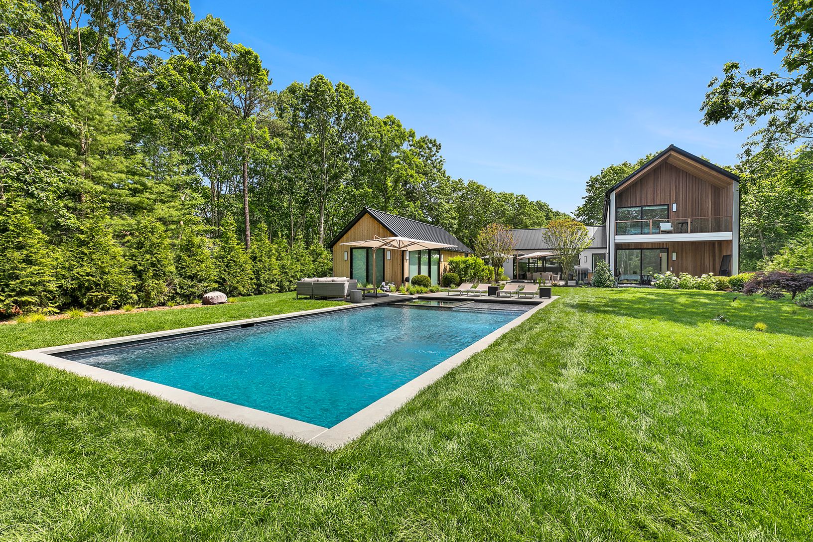 This stylish new home is a fabulous summer oasis perfect for enjoying the Hamptons. New construction built with top of the line appliances, fixtures and finishes, you will enjoy the luxury of living in a resort. The home features an open living area and great use of space brining the outside in by opening with large sliding doors to the beautiful private back yard. It has 5 bedrooms all ensuite, heated gunite pool, wonderful entertaining areas