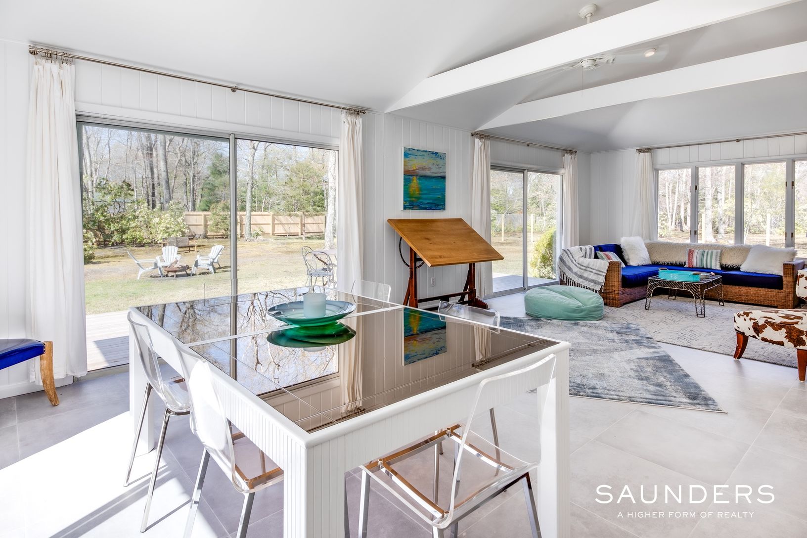 Make yourself at home in this fully and beautifully renovated 1,500+/- sq. ft. home with 3 bedrooms and 2 full baths in East Hampton's bucolic Springs, where you will enjoy access to Clearwater Beach. Everything about this welcoming home is new - floors, paint, appliances, decks, and shingles - no detail was overlooked. Enter to inviting interiors including a living room with pickled wood flooring, off which is a great room with comfortable se