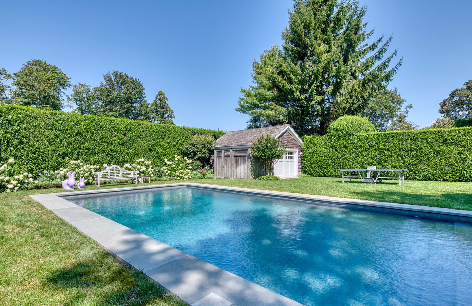 Come home to this fabulously appointed, five-bedroom, six-bath Southampton Village retreat located on a tree-lined street with easy access to ocean and all Village amenities. The beautifully manicured grounds feature a heated gunite pool, elegant outdoor entertaining areas with a bluestone terrace, outdoor shower, garage, and the focal point of the offering, an expertly built, 3,422± sf designer home. Interior features include a stunning and o