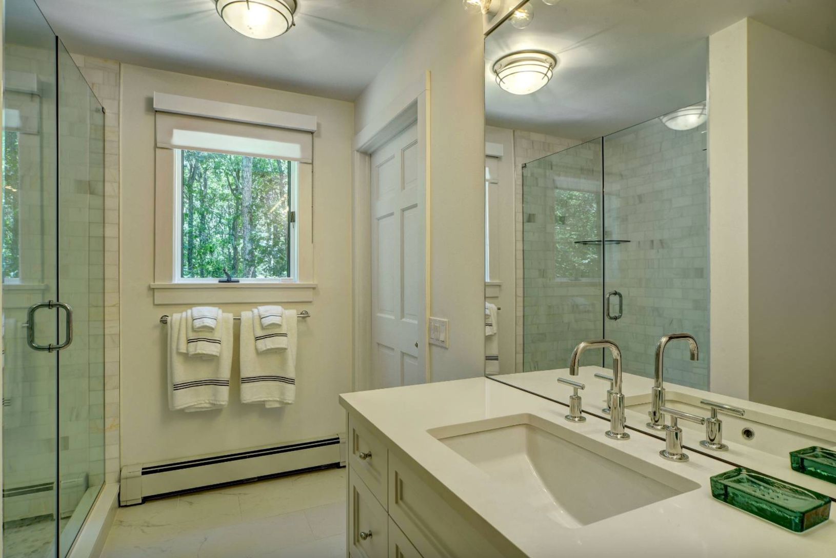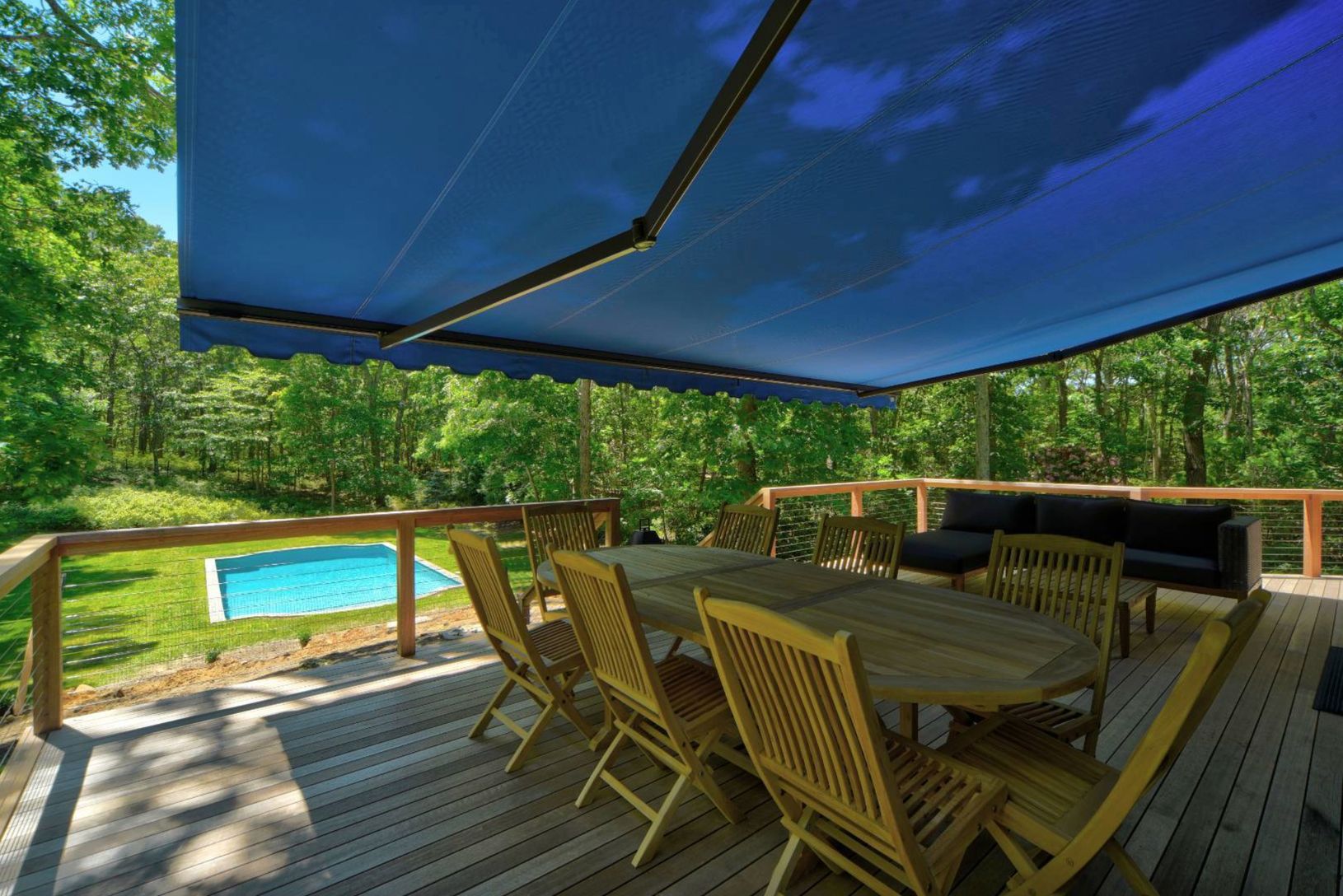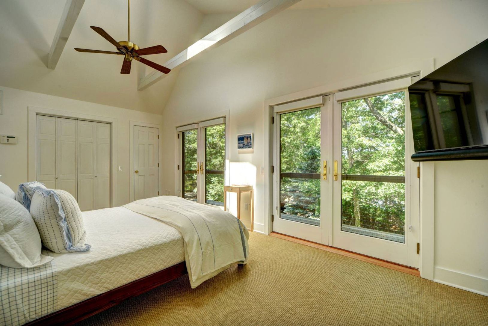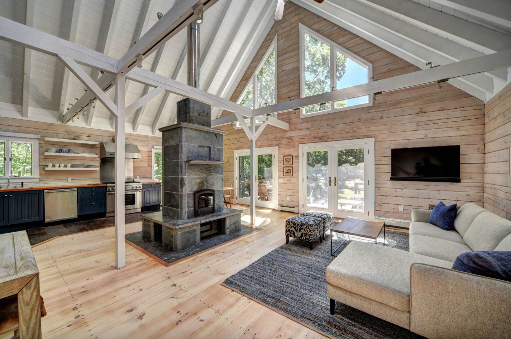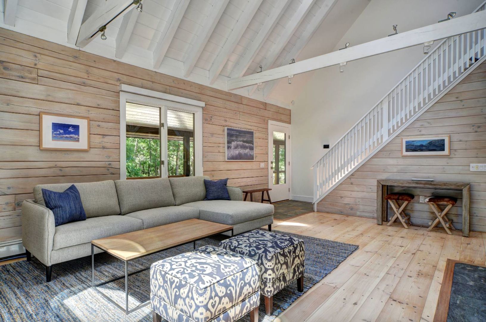 Set on nearly 5 acres with gunite pool and tennis, this newly renovated and furnished white washed barn will surely charm. Enjoy the privacy and serenity of this delightful property located conveniently between East Hampton and Sag Harbor. The main living area is a vast 3 story open space with living, dining and professionally equipped kitchen. Guest rooms are located on this level, while the owner's suite is located on the second level with J