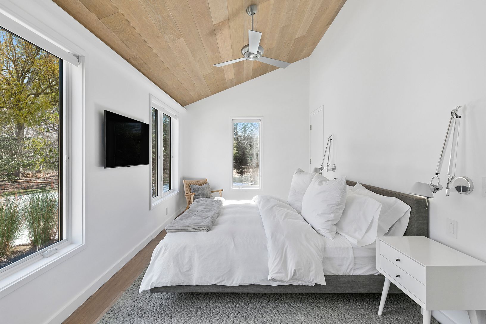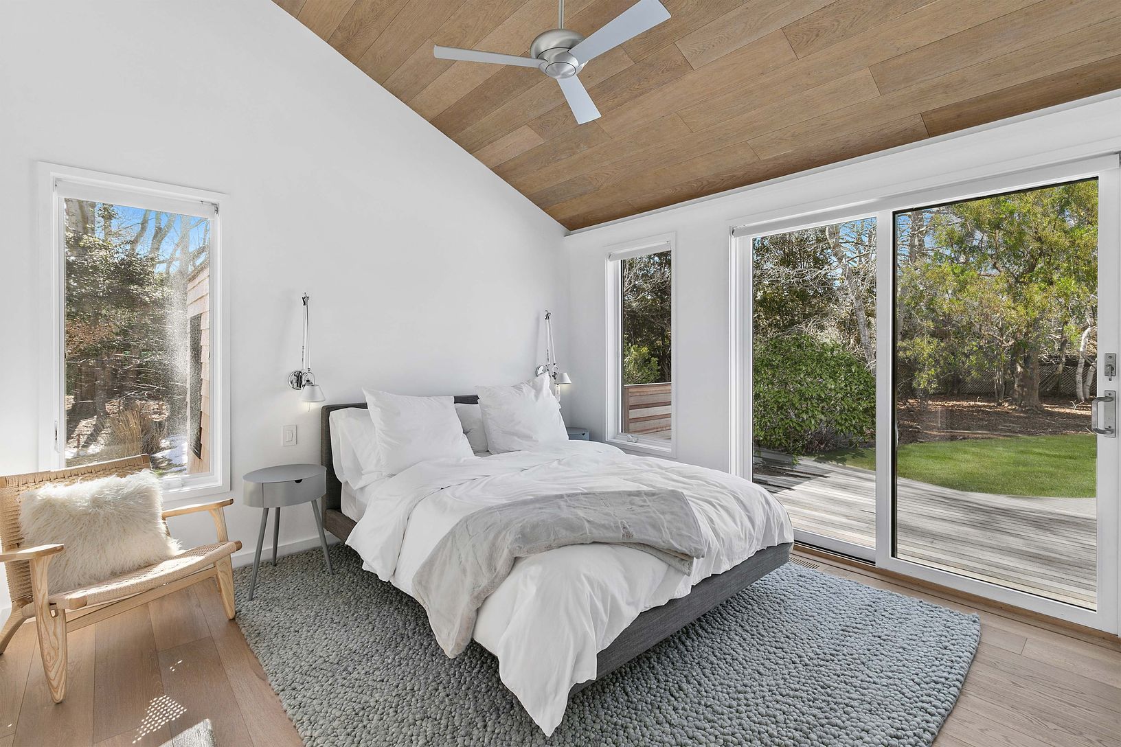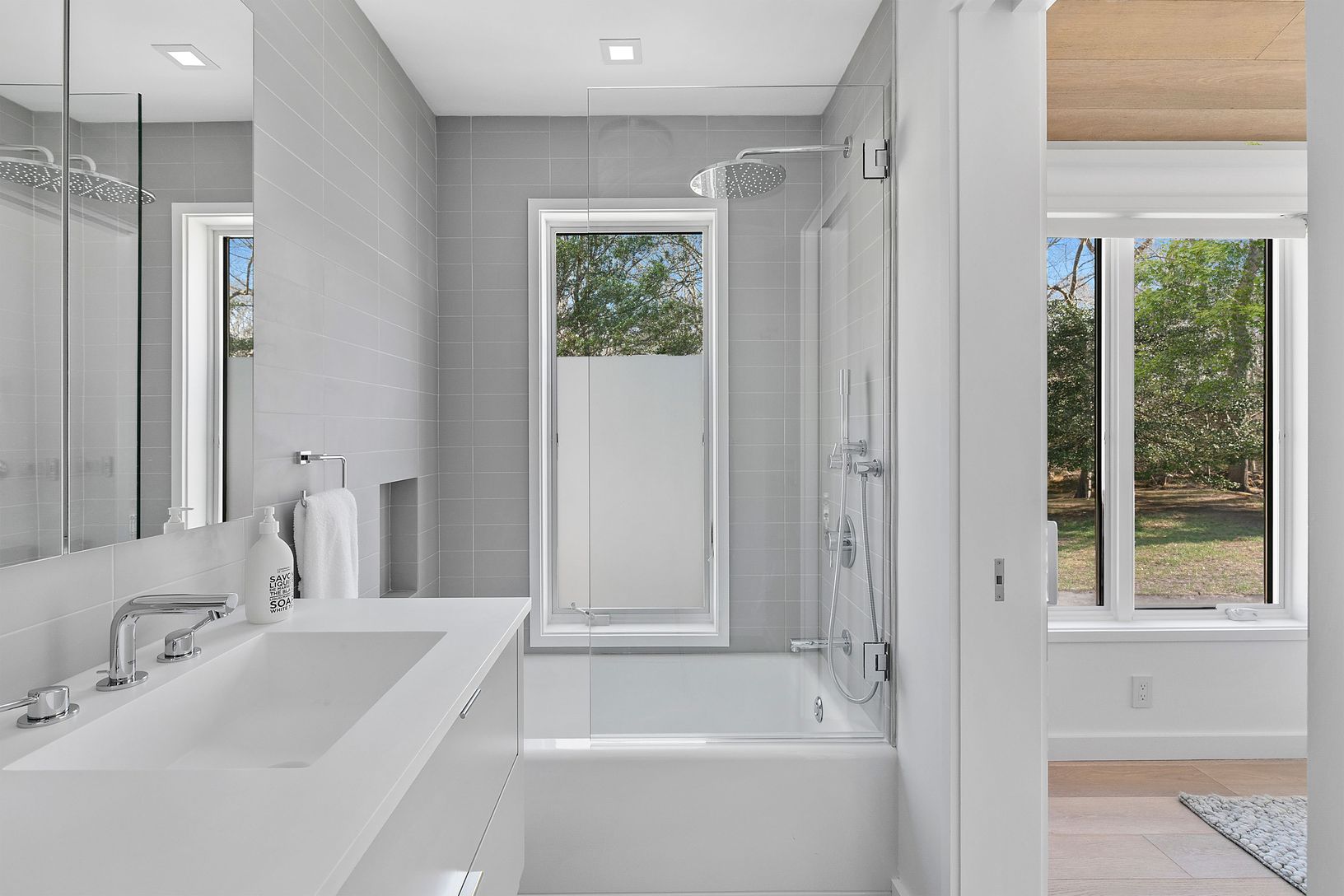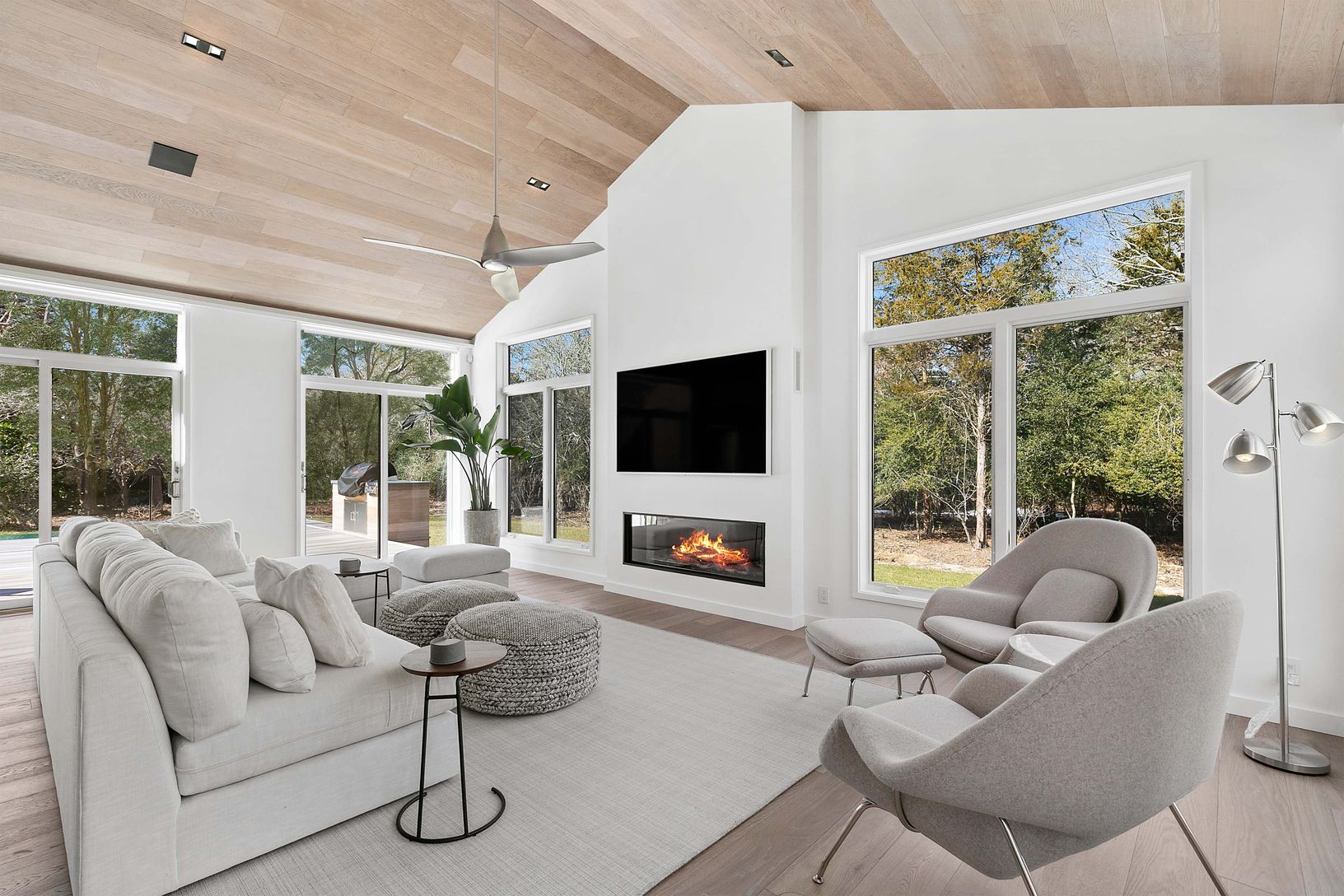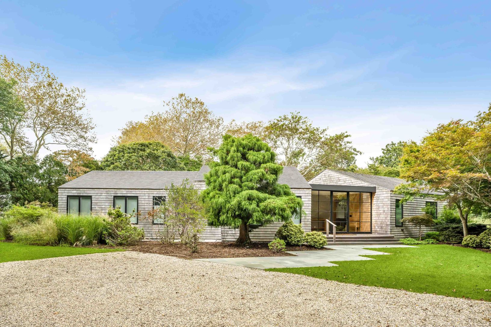 Close to ocean beaches and centered between the villages of Amagansett and East Hampton, sits this open and airy 4800 sq. ft, 5 bedroom, 5 bath modern home. The clean architectural lines in driftwood tones, ample natural light, and impeccable minimalist furnishings, epitomize the popular Amagansett Modern style, while the 1.5 acre property with heated Gunite pool, mature landscaping, built-in grilling station, and outdoor shower with rain head
