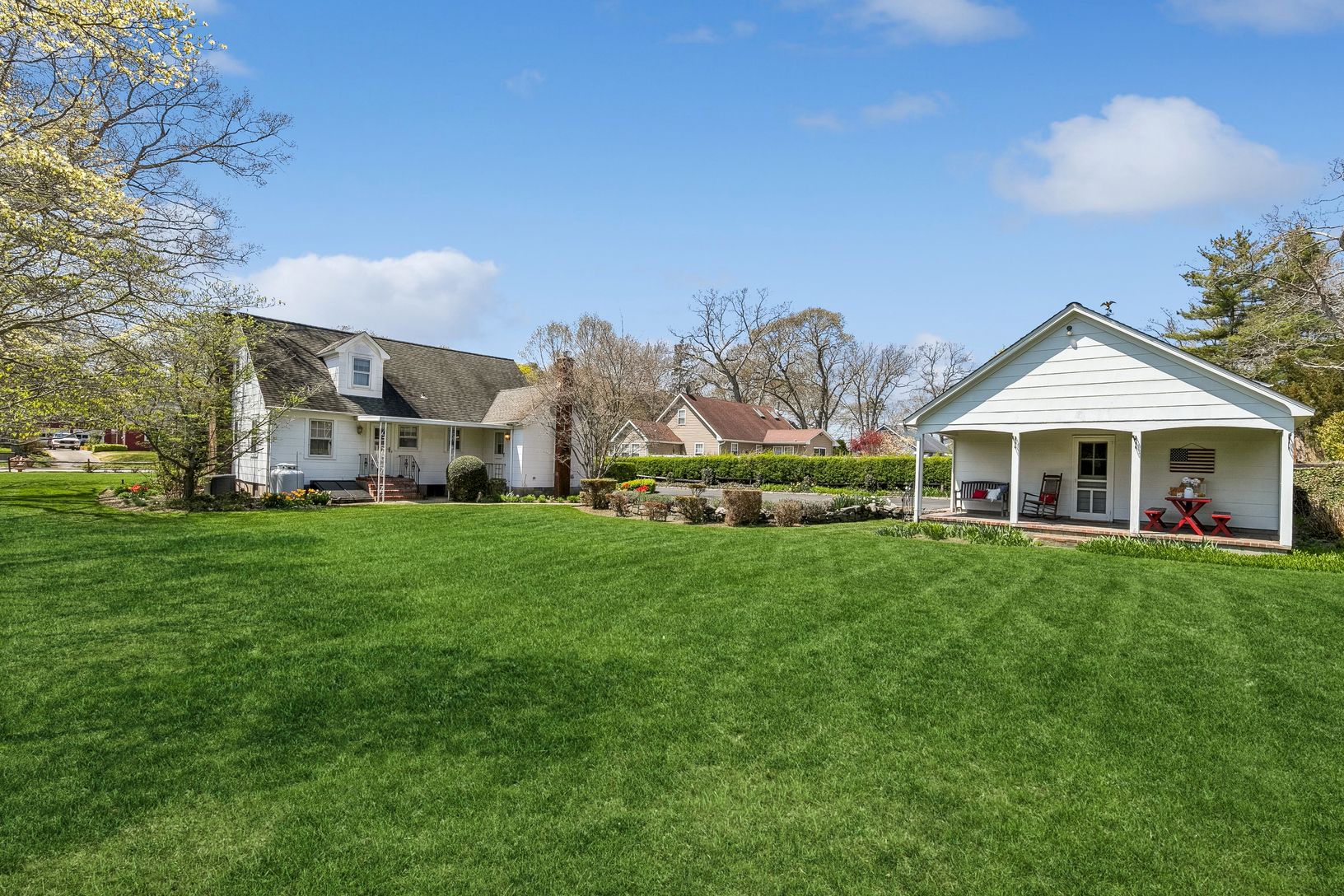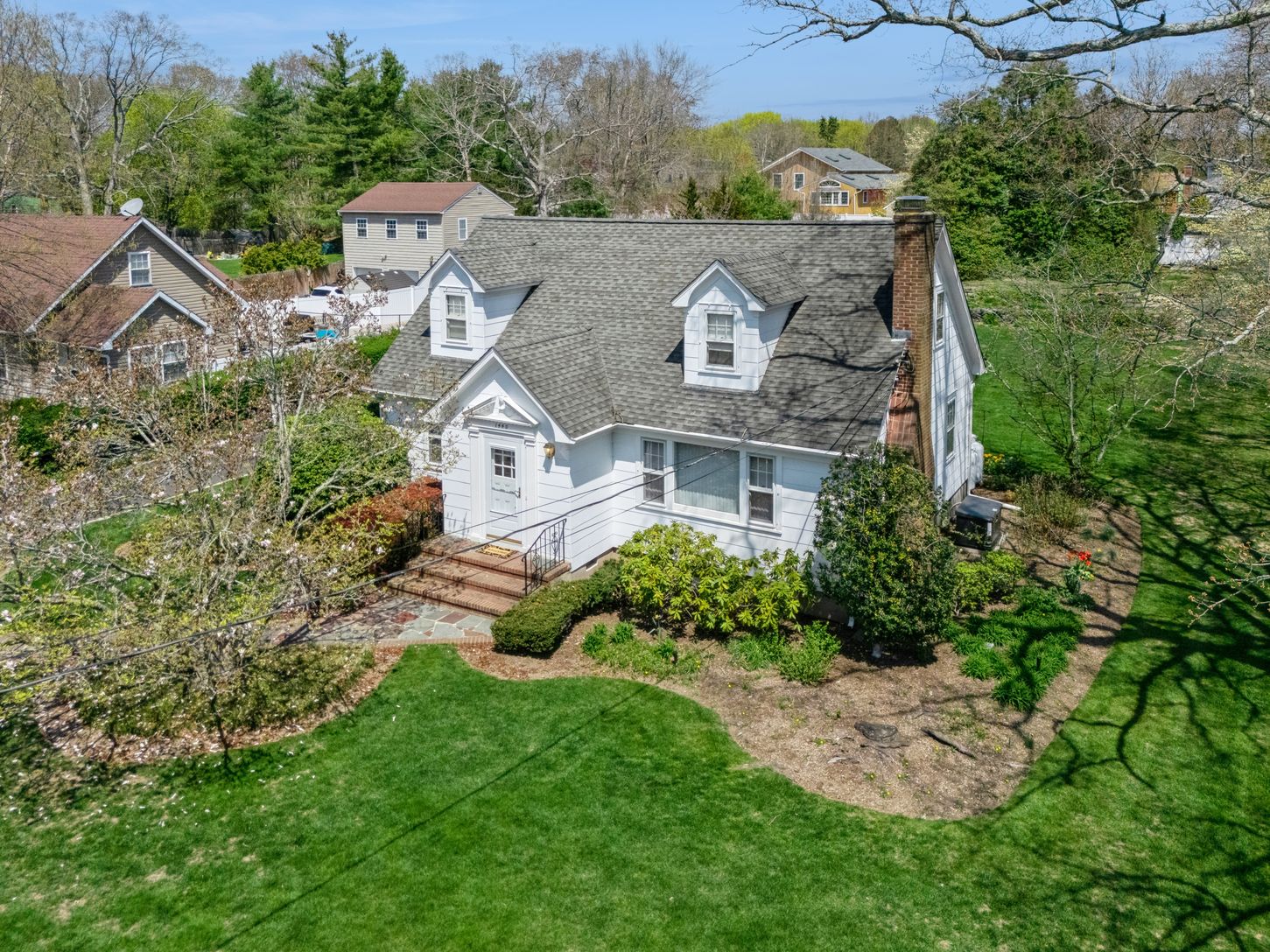 Welcome to 1440 Roanoke Ave, a charming cape-style home nestled in the heart of Riverhead, NY. This home features four spacious bedrooms and 1.5 bathrooms, a dining room and inviting living room with a wood burning fireplace. The lush .57-acre property is adorned with beautifully manicured gardens that bloom with lush perennials throughout the season, complete with an irrigation system for easy maintenance. The house comes equipped with an aut