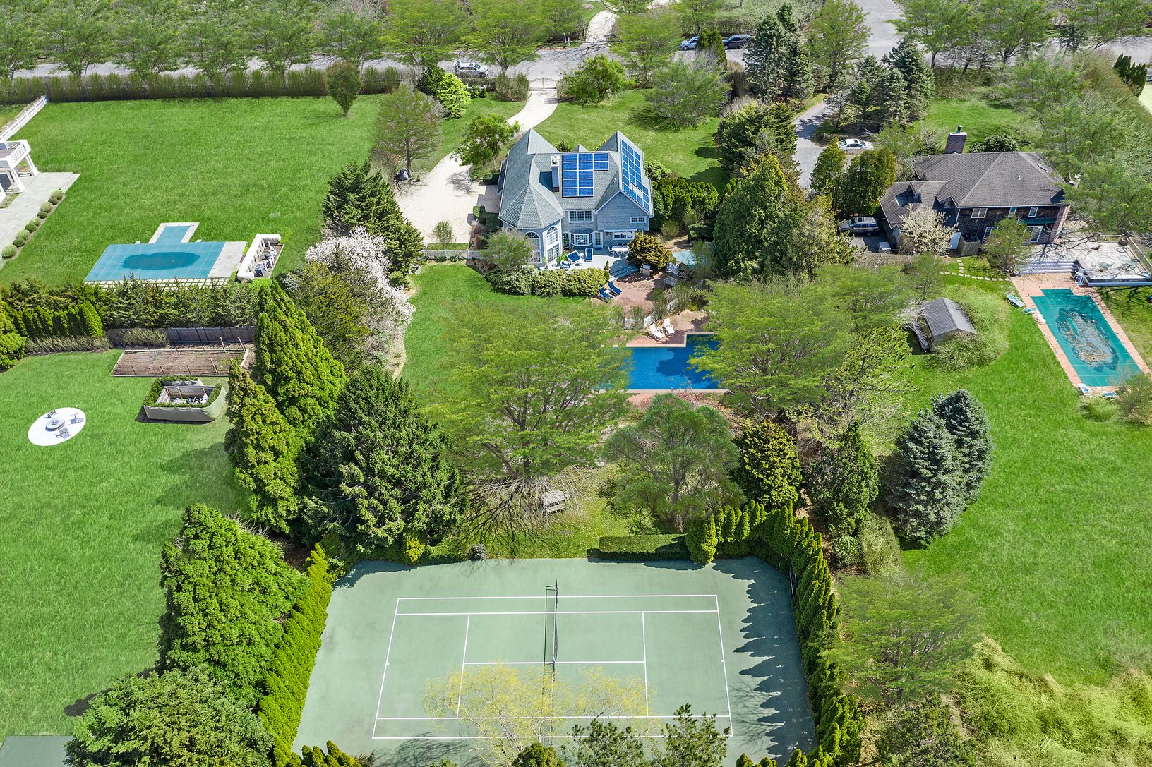 This south of the highway gated private estate situated on 1.4 acres in the village, features a traditional 4 bedroom 4.5 bath home with a heated saline gunite pool, spa, rubberized all-weather regulation tennis court, stone terrace, two car garage, and exquisitely landscaped gardens. This perfect location is 1.2 miles to white sand ocean beaches and five minutes to the charming and culturally vibrant Southampton Village. Enjoy both Southampto