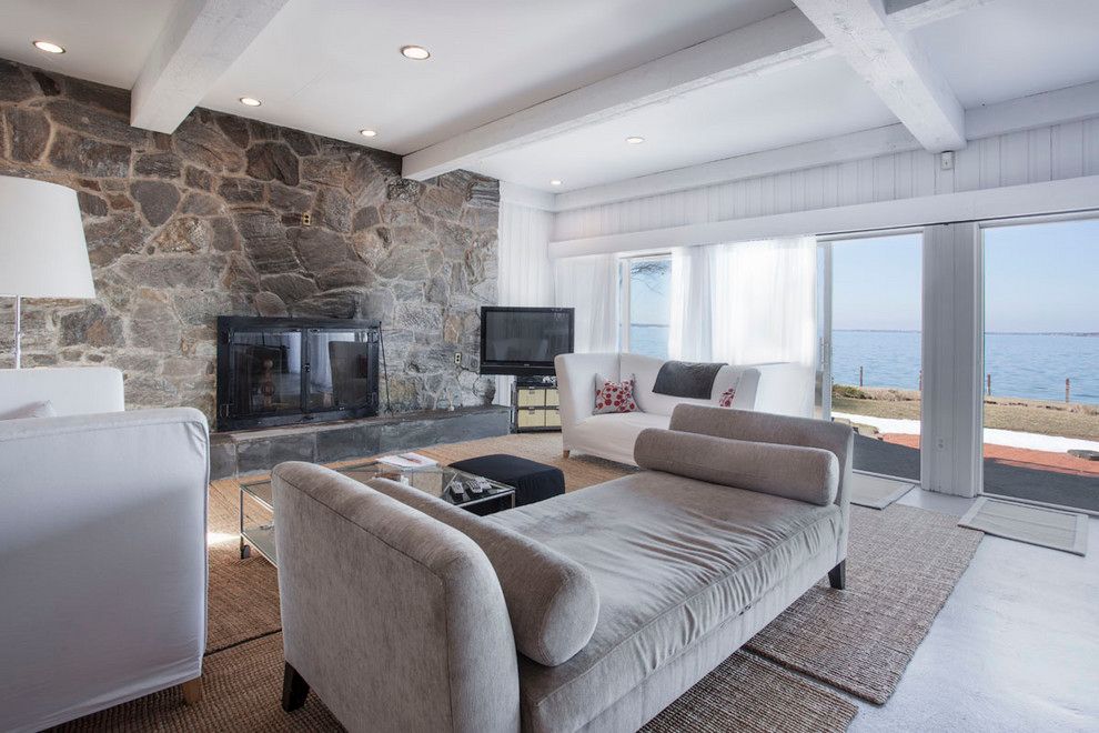 Located on over an acre in a Southampton waterfront community, this 5-bedroom, 4- bath home has magnificent waterviews and its own beach. Open and airy floor plan is anchored by an oversized stone fireplace and suffused with sunlight. Permits in place for waterside pool and a beautiful plan for a modern new home impeccably designed by architect, Jason Poremba, or very usable as is!. Amazing sunsets!