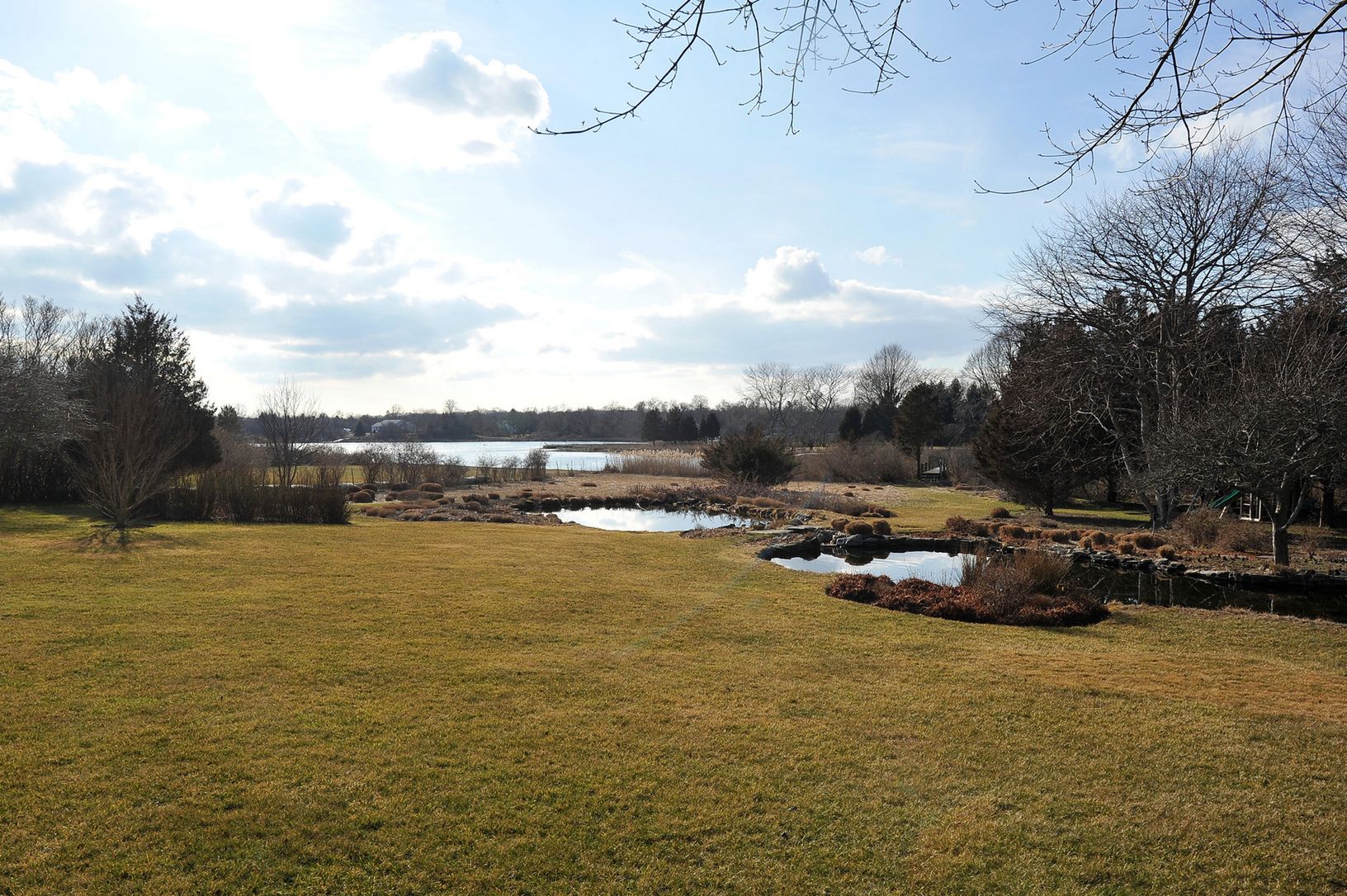Private and serene waterviews from this eight bedroom eight and one half bath traditional residence which includes a first floor master bedroom. Eat-in gourmet chefs kitchen, Living room with wood burning fireplace, dining and an enclosed sunroom. All this on over two waterfront acres in the estate section of Southampton Village, heated gunite pool, patios, two gazing ponds and your very own dock that leads out to Shinnecock bay.
