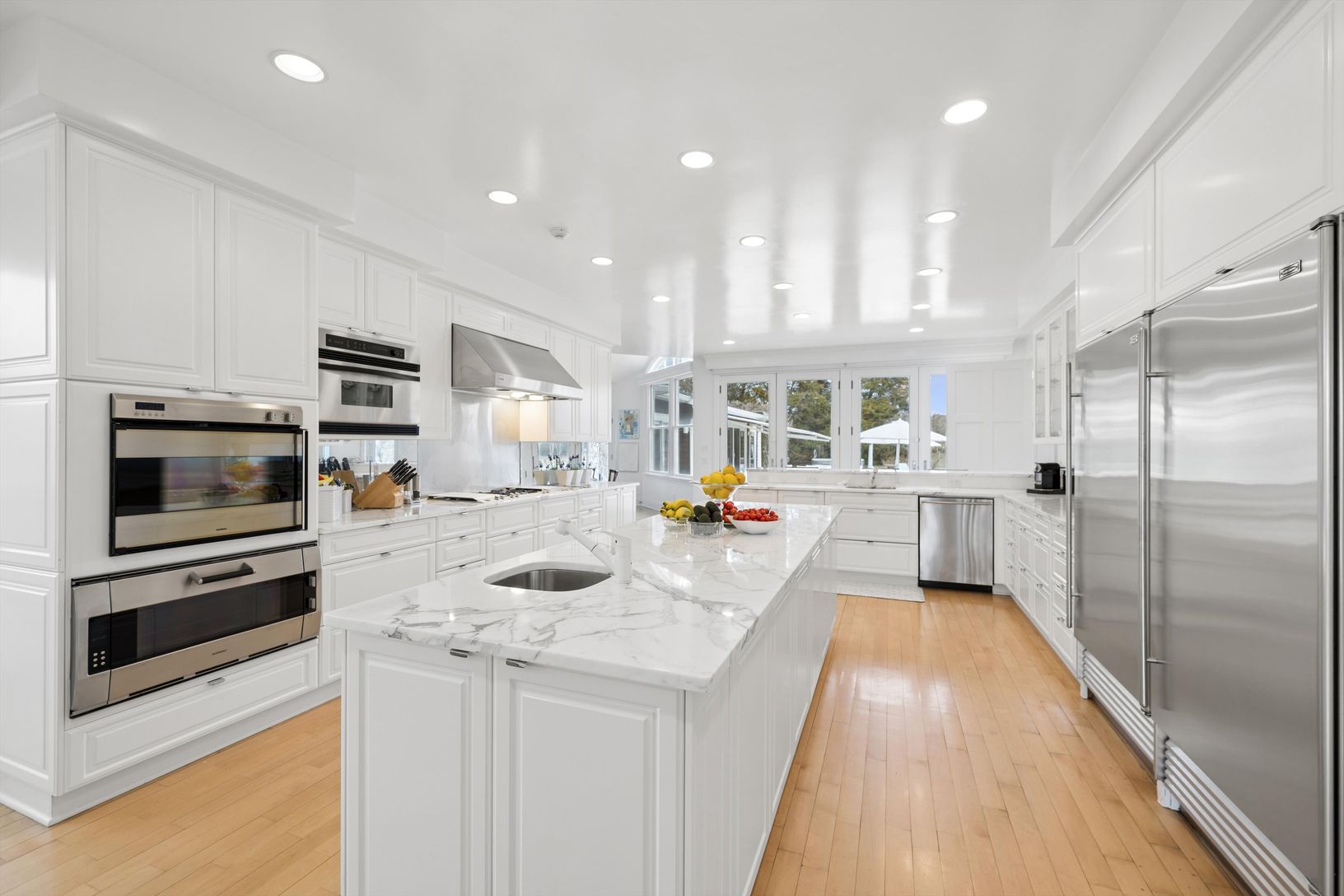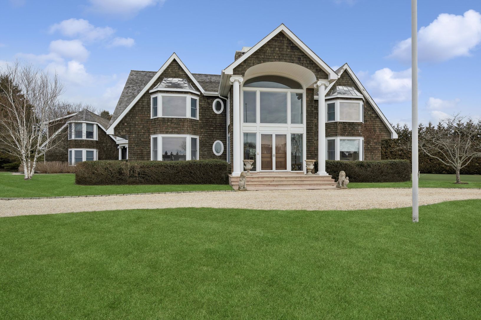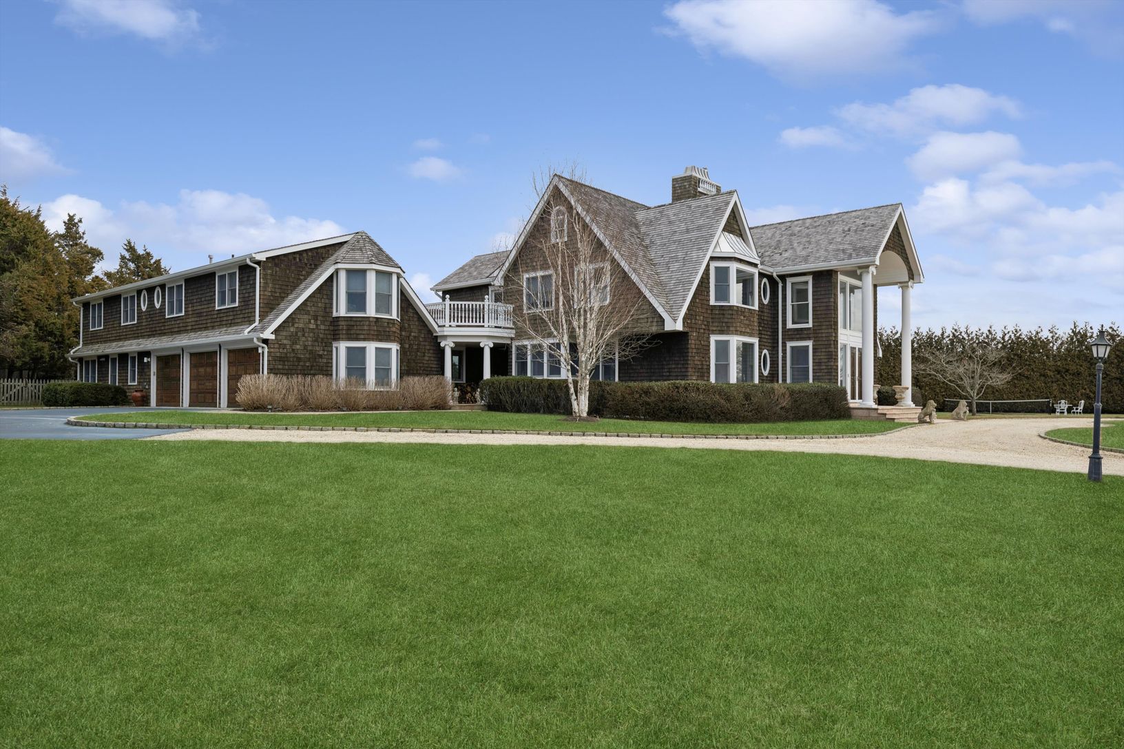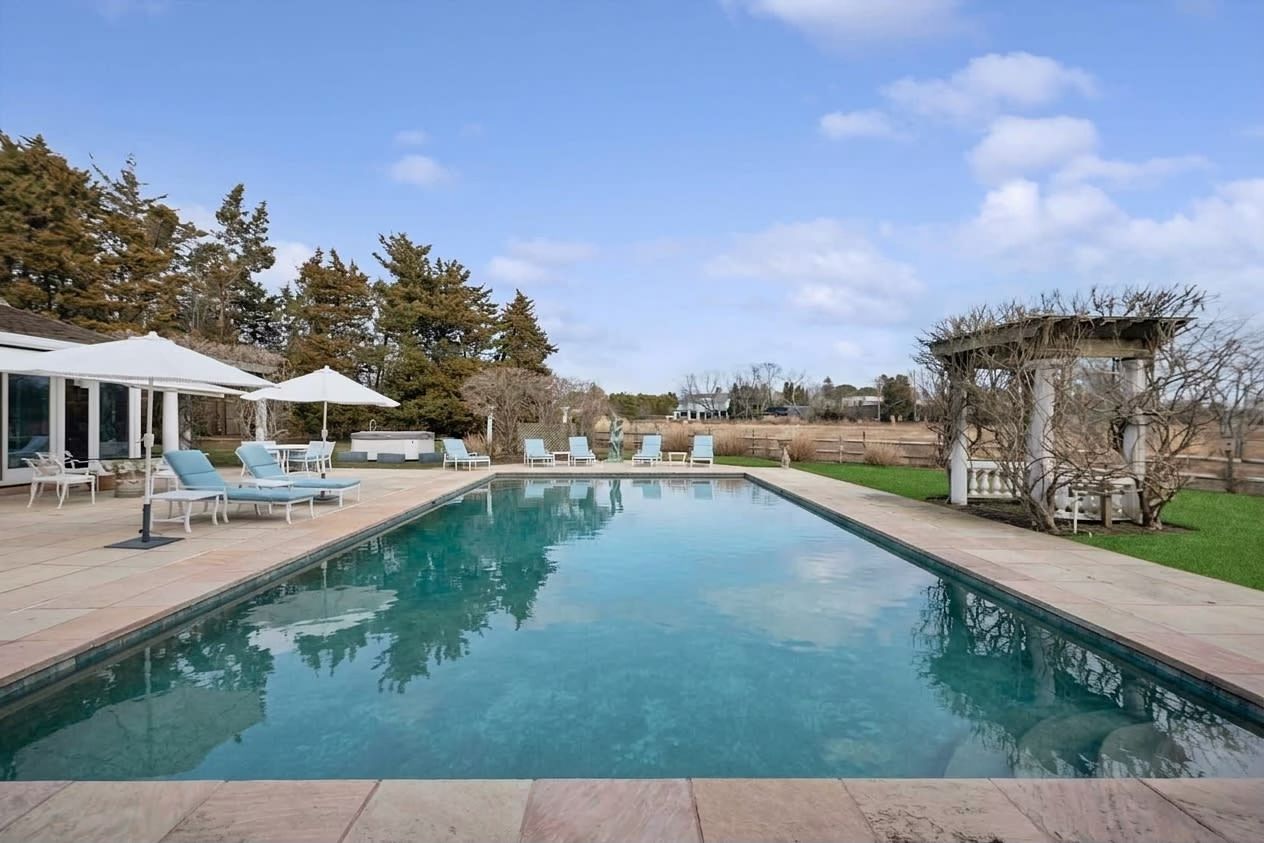 Tucked away on a quiet, tree-lined private road South of the Highway in Water Mill, set against the backdrop of an idyllic 18-acre preserve, this residence offers over 7,000 square feet of refined living space designed for effortless summer living, entertaining, and relaxation.