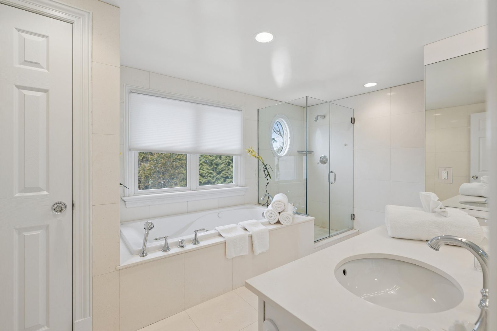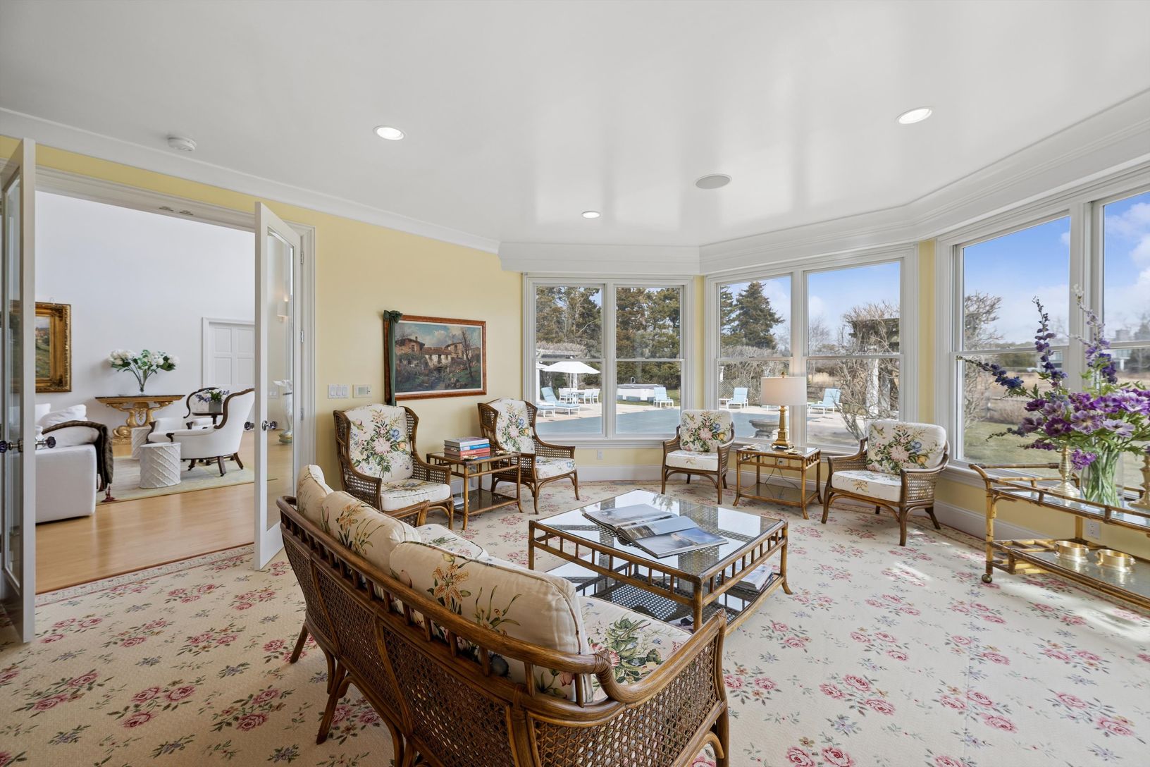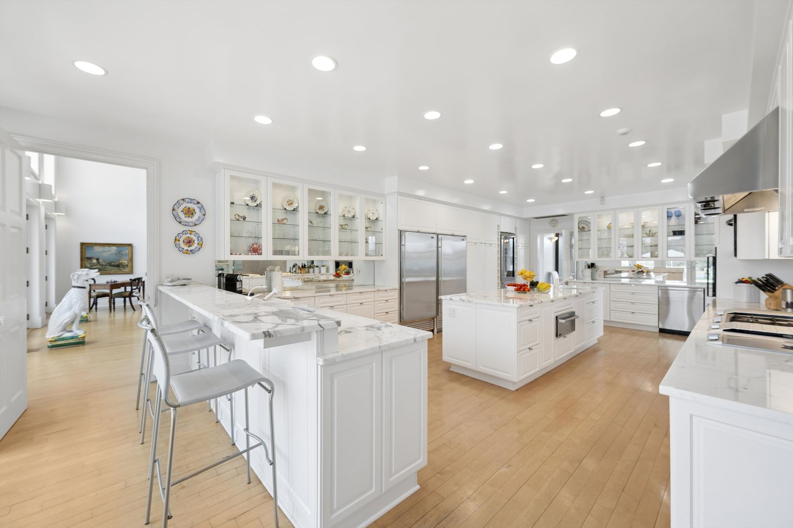From the moment you arrive, the home makes a striking impression. A grand entryway welcomes you into luminous interiors highlighted by soaring ceilings and a dra
