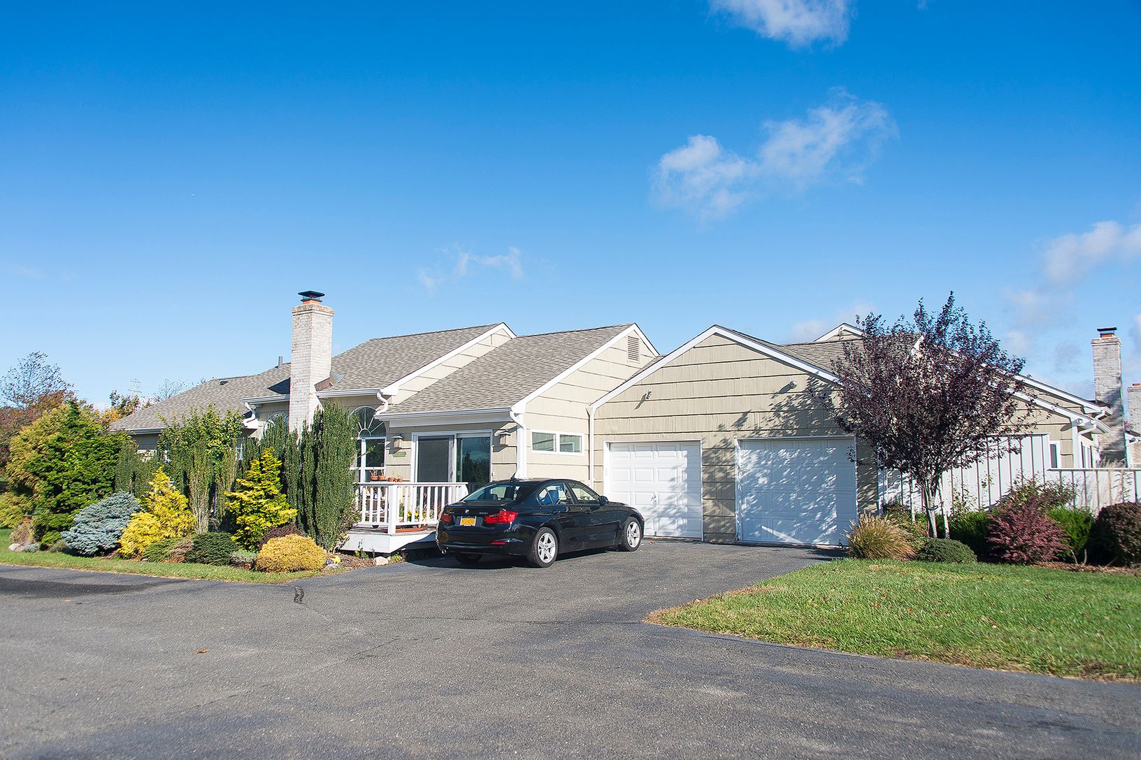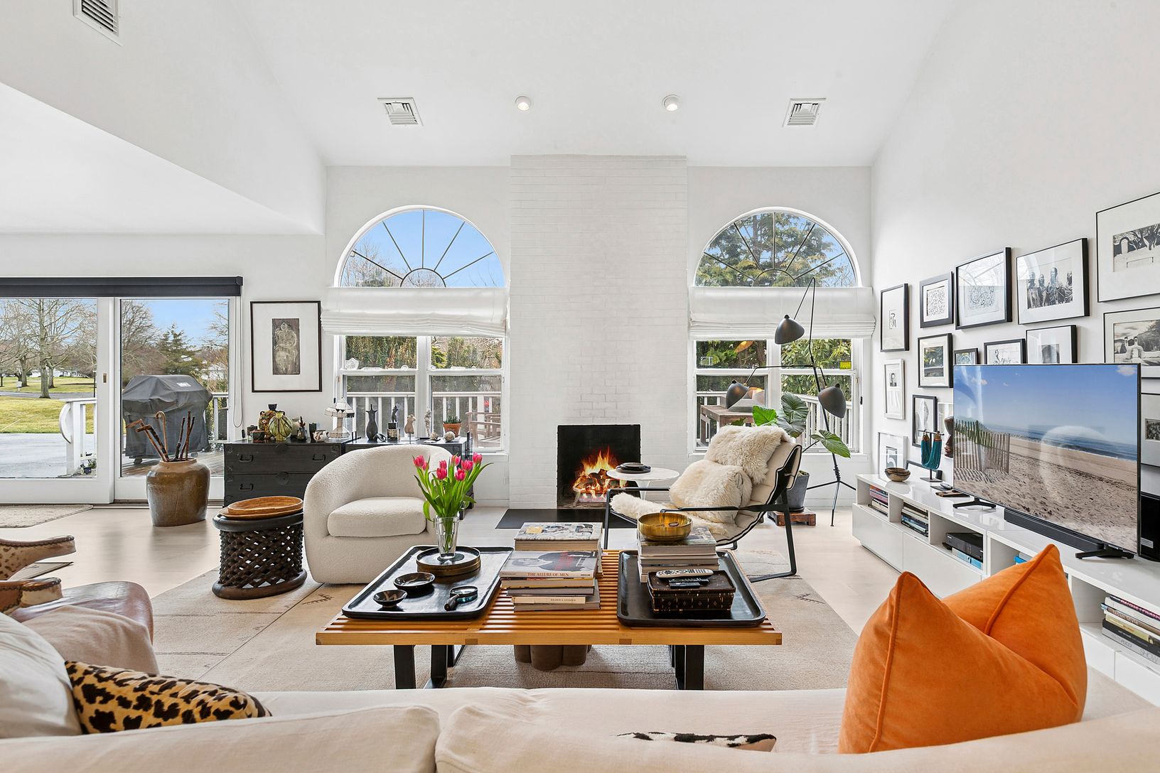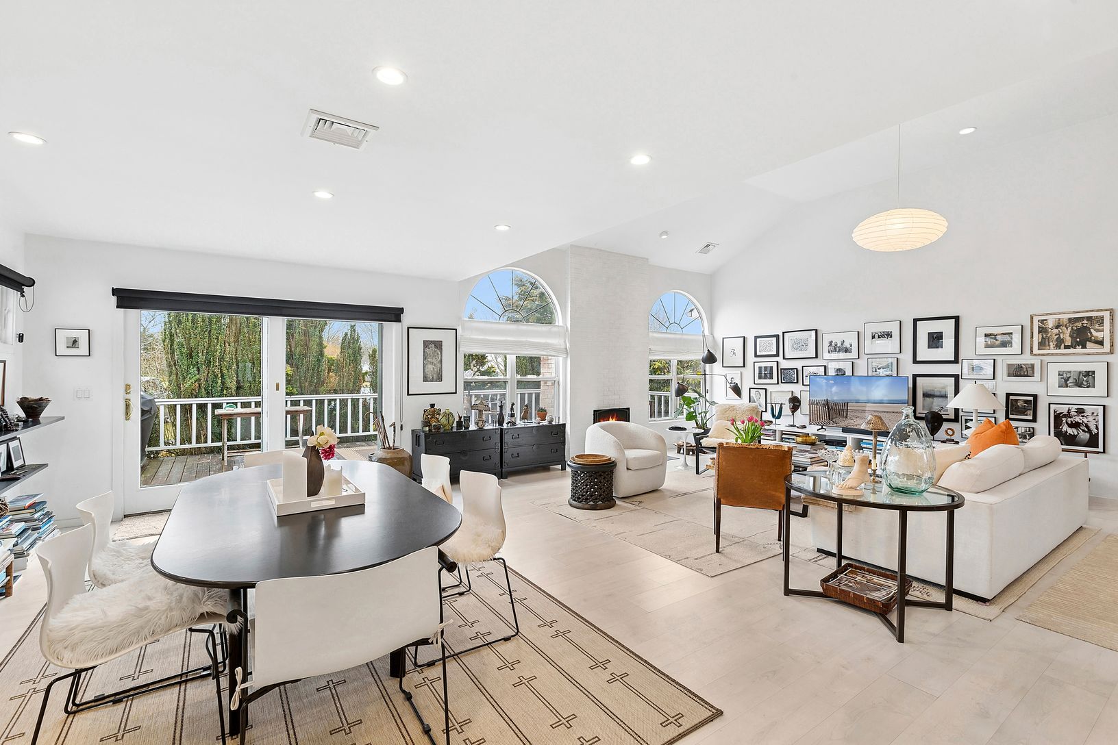 Presenting a remarkable two-bedroom, two-bathroom ranch-style condominium, now available within the desirable Saint Andrews community in Southampton. This elegantly renovated end unit features a spacious open floor plan and a contemporary kitchen that transitions effortlessly into the dining and living areas. Experience the warmth of vaulted ceilings and a welcoming wood-burning fireplace, along with a generous west-facing deck ideal for dinin