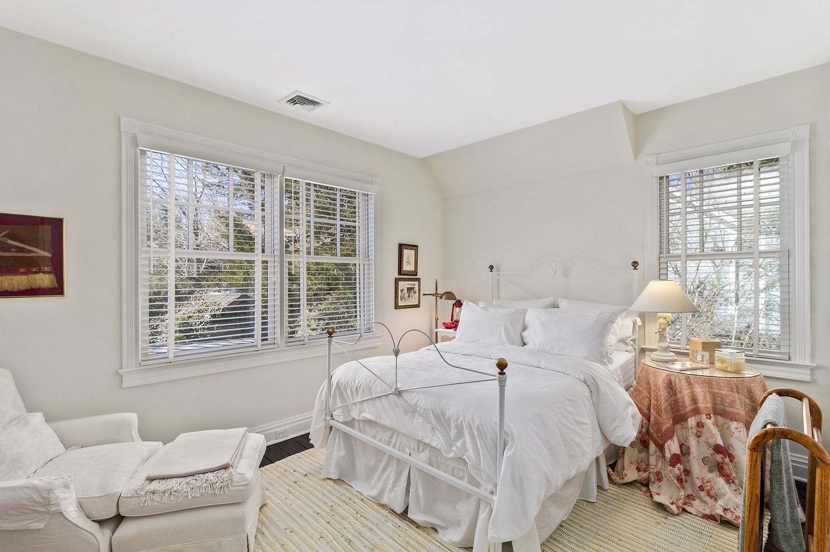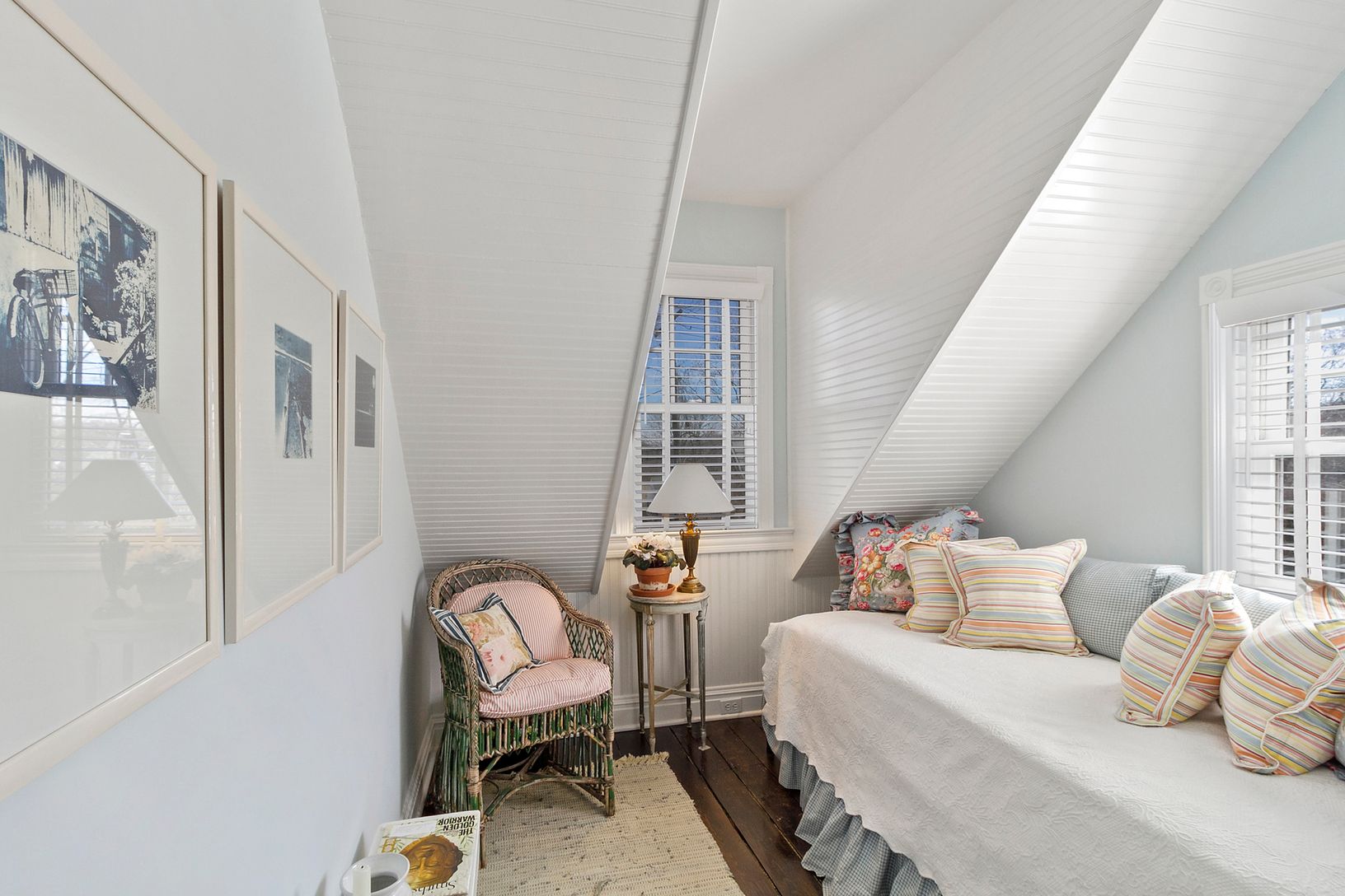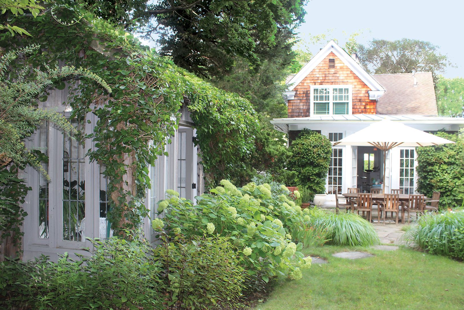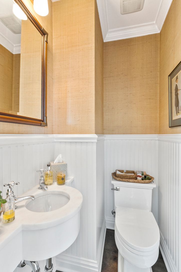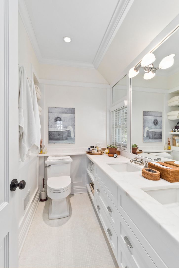 This charming vintage 1910 Sag Harbor Village home, which has been professionally designed and impeccably renovated by the homeowner, is a true gem. The first floor offers a separate den or potential fourth ensuite bedroom, a powder room, the open kitchen, plus dining with fireplace and living room. French doors lead to a patio and lovely lush gardens that provide full privacy. The garden also includes a romantic studio and two outdoor showe