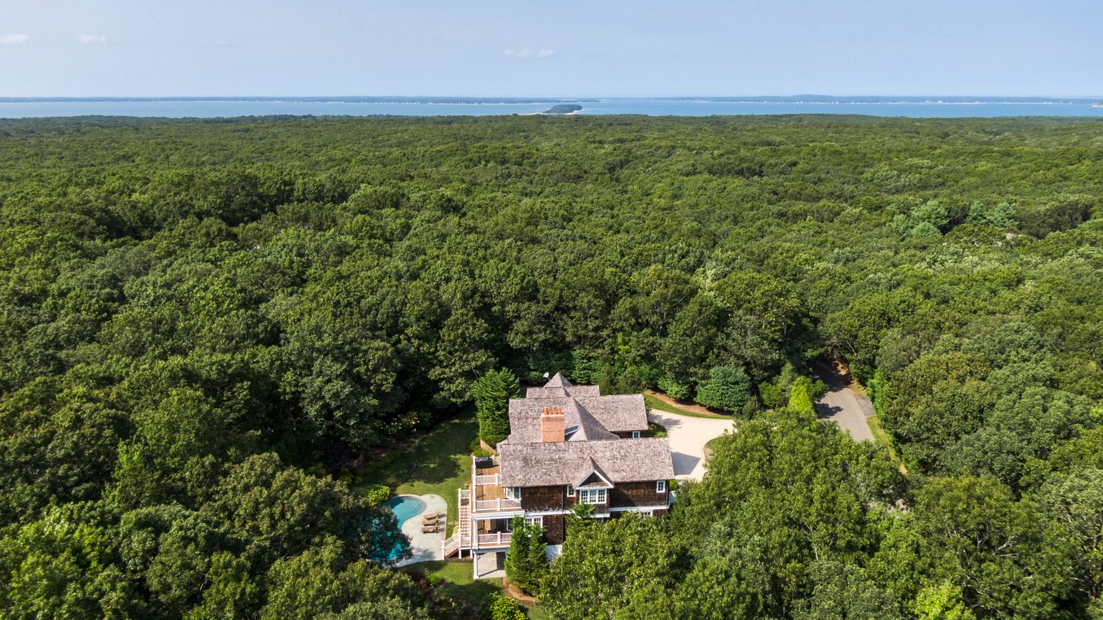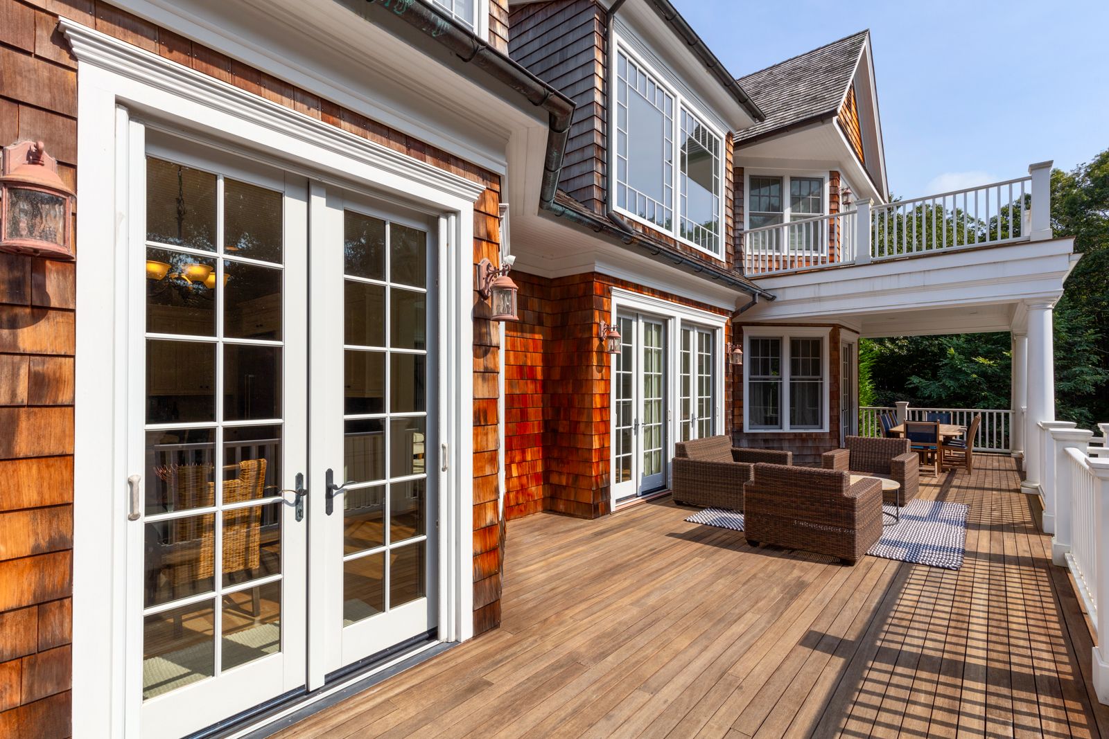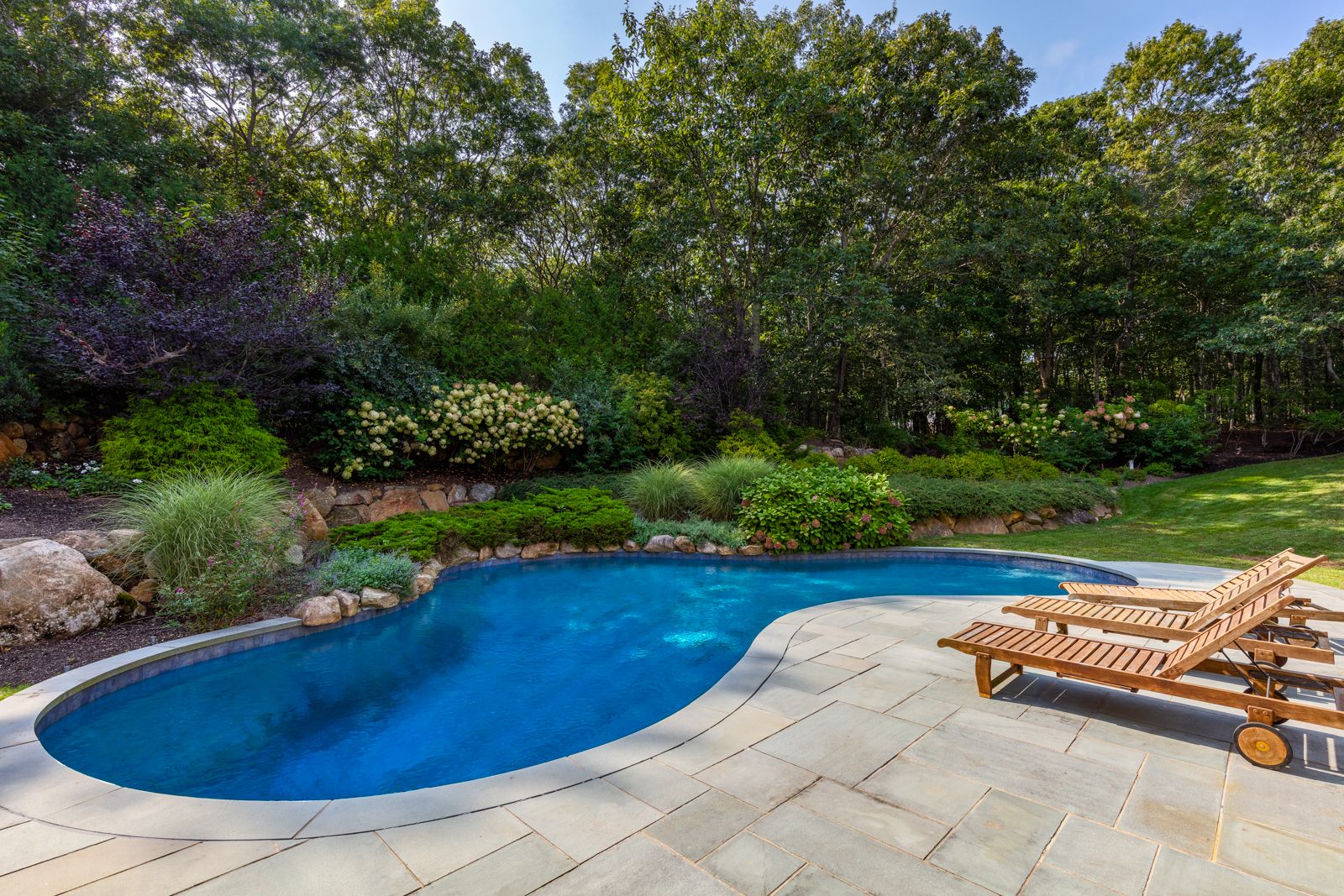 Sensational John Laffey-designed custom traditional tucked away on 1.6 beautifully landscaped acres between Bridgehampton and Sag Harbor with all amenities. 6,200 sq. ft. of living space plus finished lower level, with wet bar, gym, home theatre, wine room all with French doors opening to covered porch and pool. Six en suite bedrooms, coffered ceilings, custom stone work, Brazilian cherry floors, mahogany porches and decks, 2 masters, and larg