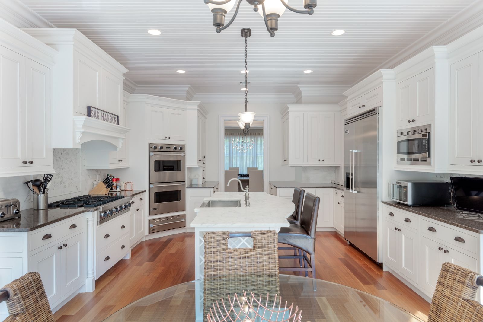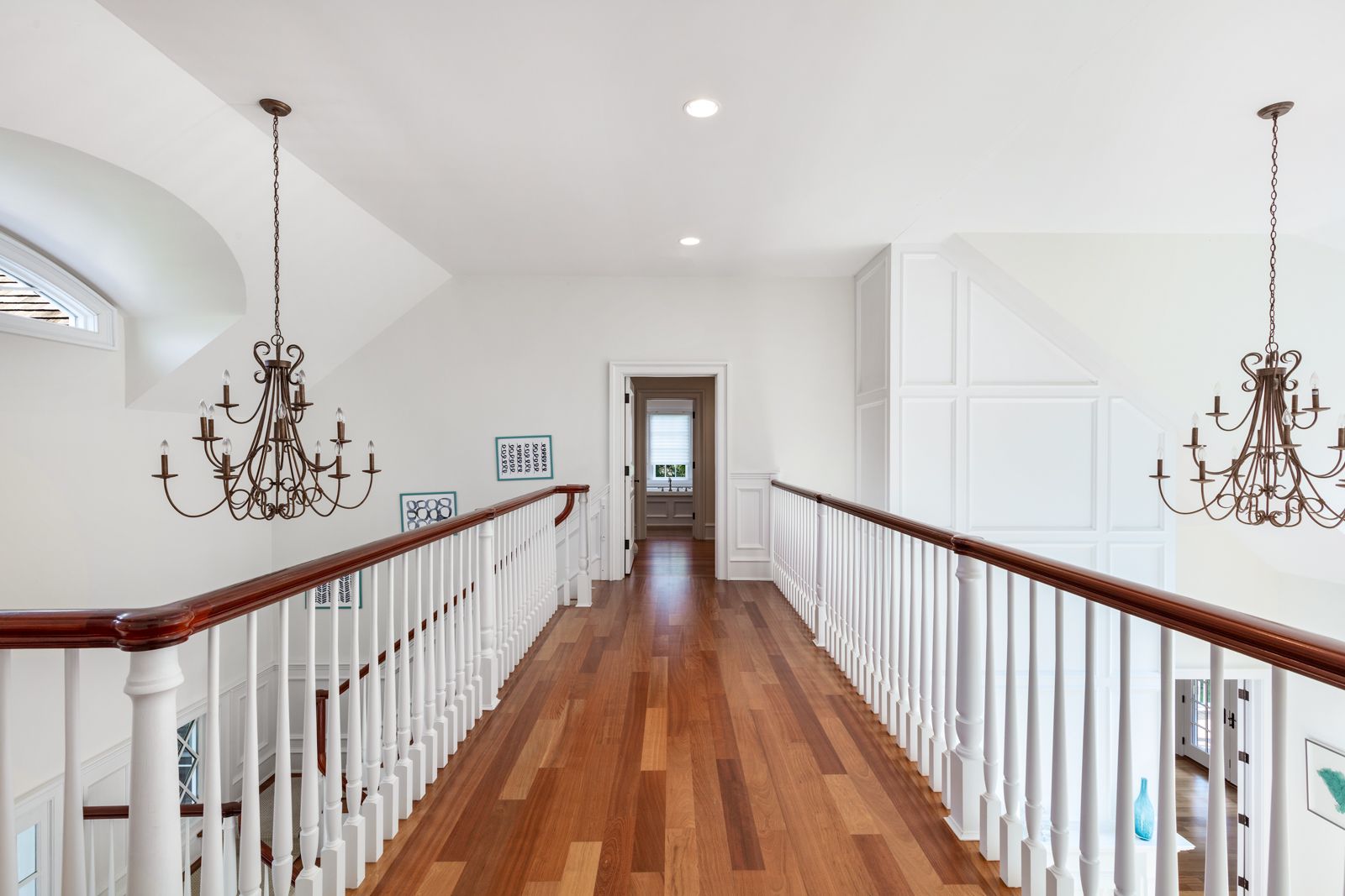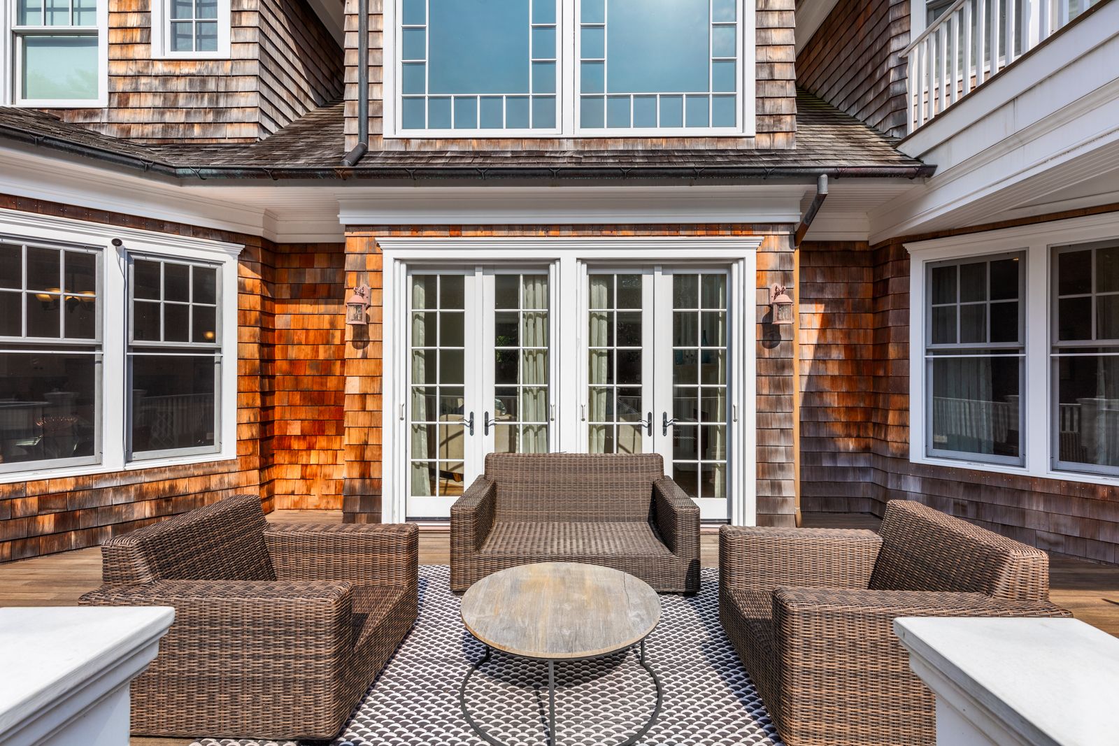 Sensational John Laffey-designed custom traditional tucked away on 1.6 beautifully landscaped acres between Bridgehampton and Sag Harbor with all amenities. 6,200 sq. ft. of living space plus finished lower level, with wet bar, gym, home theatre, wine room all with French doors opening to covered porch and pool. Six en suite bedrooms, coffered ceilings, custom stone work, Brazilian cherry floors, mahogany porches and decks, 2 masters, and larg
