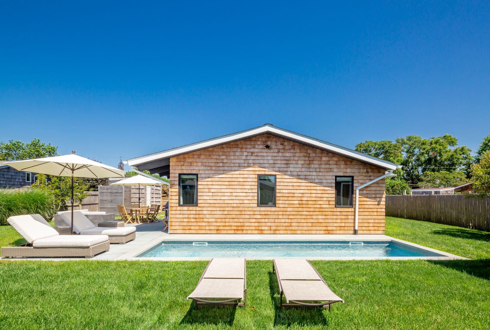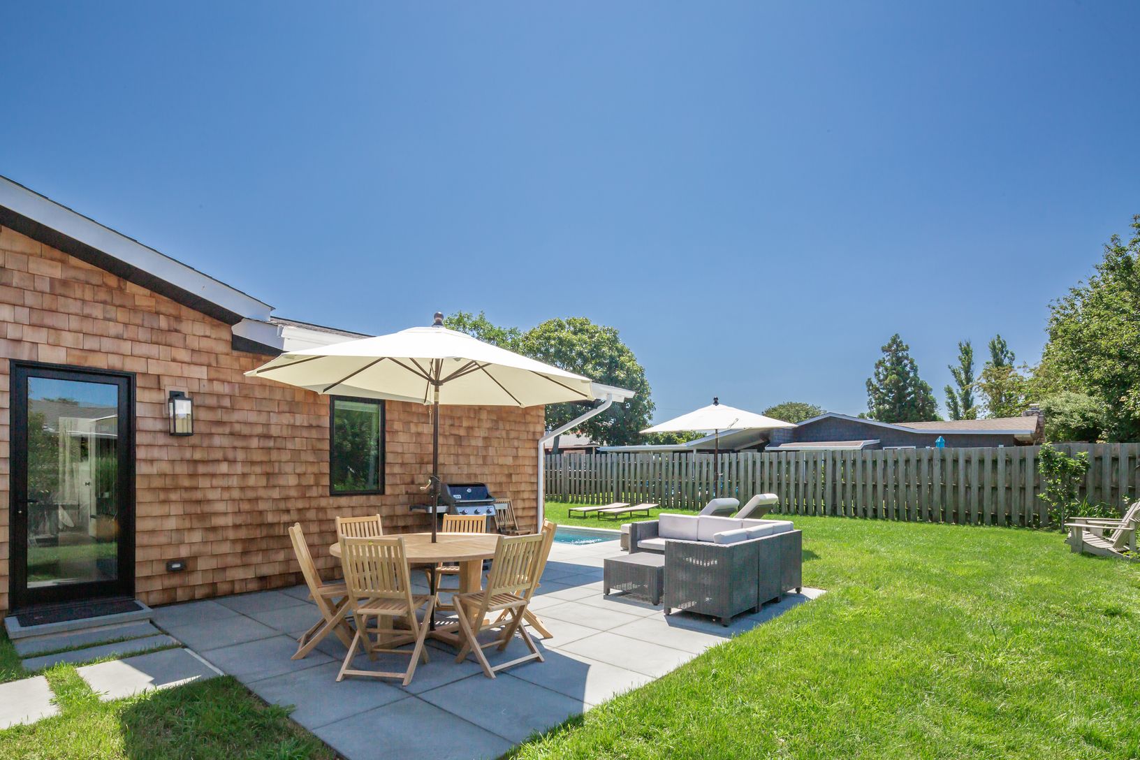 Experience beachside living at this completely renovated Montauk Beach house. Boasting 3 bedrooms and 2 modern bathrooms, this home provides the perfect summer retreat. Step inside to discover a brand new open kitchen, complete with top-of-the-line stainless steel appliances and ample storage space. The light-filled living room features large windows and a cozy gas fireplace, creating an inviting atmosphere for relaxation and entertainment. Ou