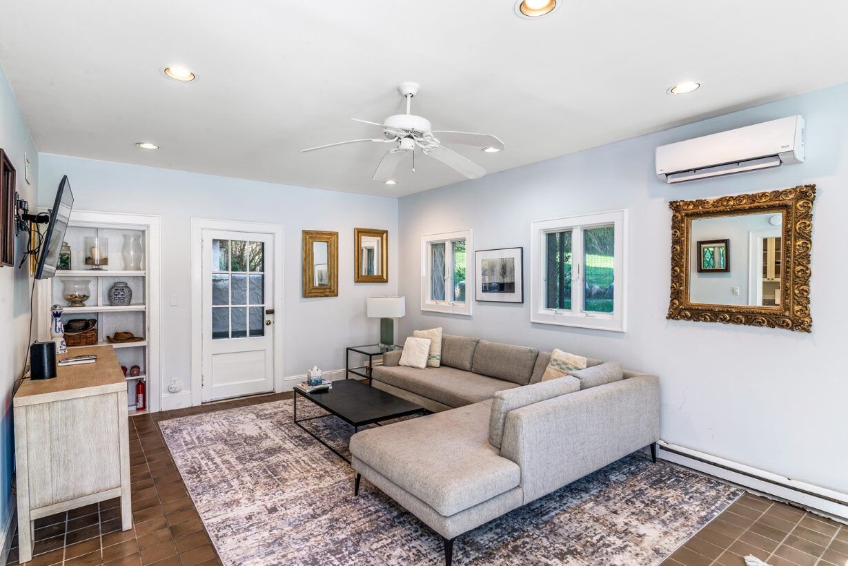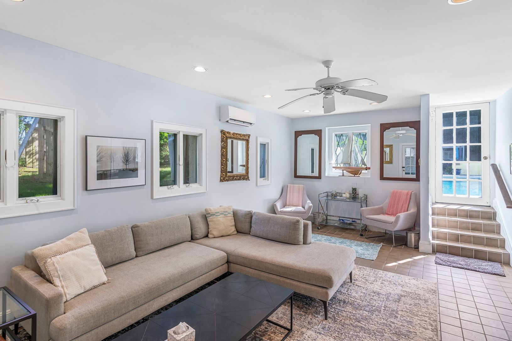 An incredible opportunity to own a piece of history. This magnificent Carl Fisher Tudor was built as Carl's own Pool house. The beautiful pool is the very first swimming pool built in Montauk. The main house has a gorgeous sunroom which looks out to a courtyard filled with specimen trees and flowers. The yard is also surrounded by a stonewall ensuring privacy and charm. The main house has two large bedrooms and two full bathrooms. Additionally