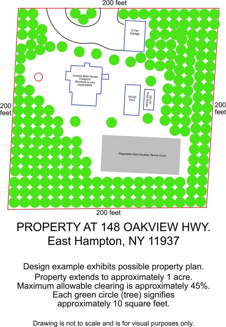 Privacy privacy privacy! Set on a quiet, wooded full-acre lot just two miles from East Hampton Village, this lot offers privacy and potential. The grounds feature a variety of beautiful specimen trees, including Hinoki Cypress, European Beech, Deodar Cedar, and Japanese Maple. With 25 percent of the lot (nearly 20,000 sq. ft.) still available to clear, there's room to add a pool, pool house, tennis/pickleball court, or expand the home. Surroun