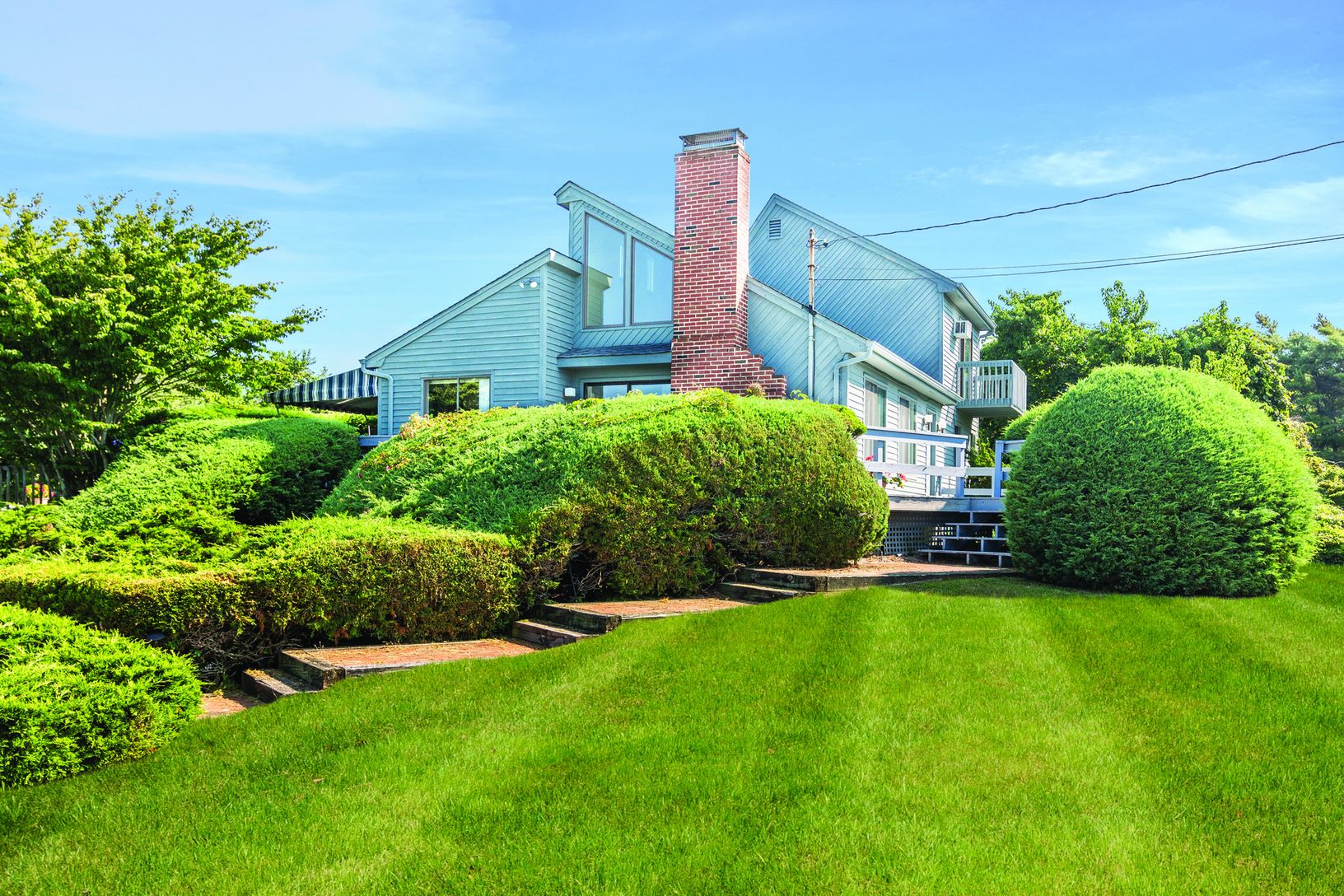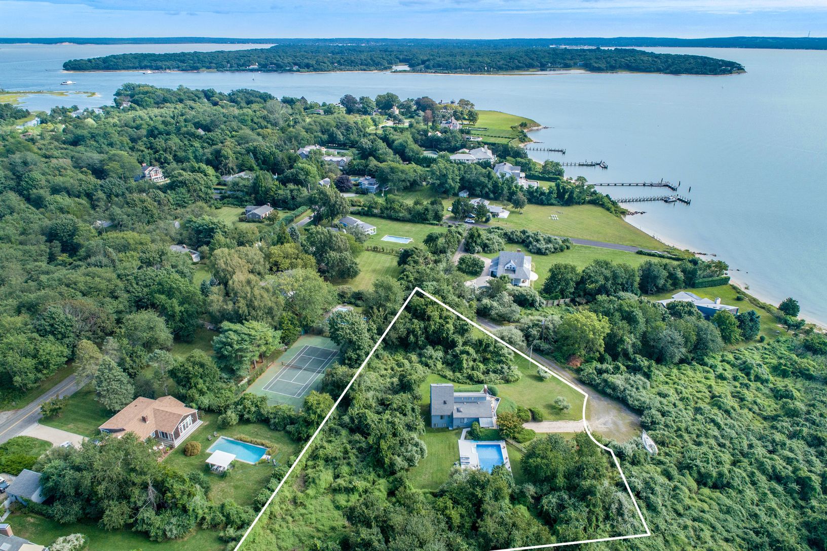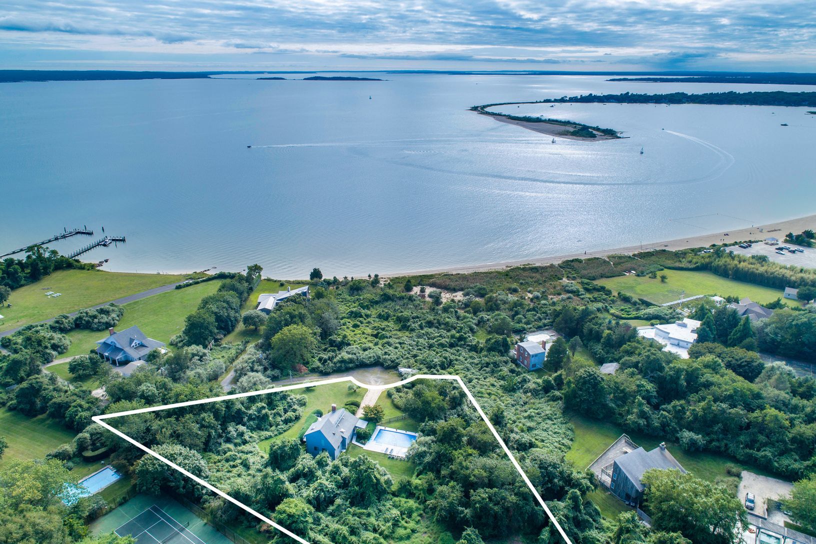 Down a hidden driveway overlooking Wades Beach, this contemporary sited on 1.2+/- acres with slight elevations looks onto inspiring saltwater, with views to Shell Beach. Double height ceilings in the living room give an immediate feeling of light and space, enjoyable during summer months with sliding doors and windows open and during the off season sitting by the fireplace. A dining area is adjacent to the kitchen which has a breakfast bar. Do