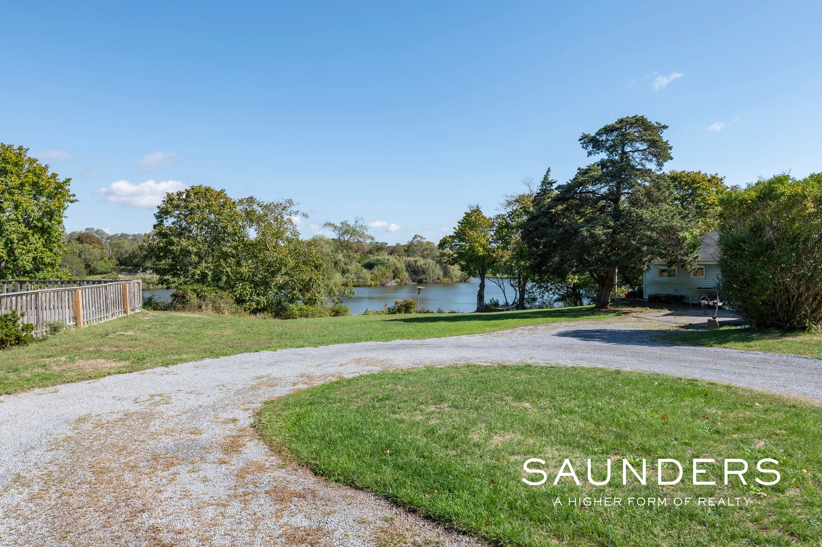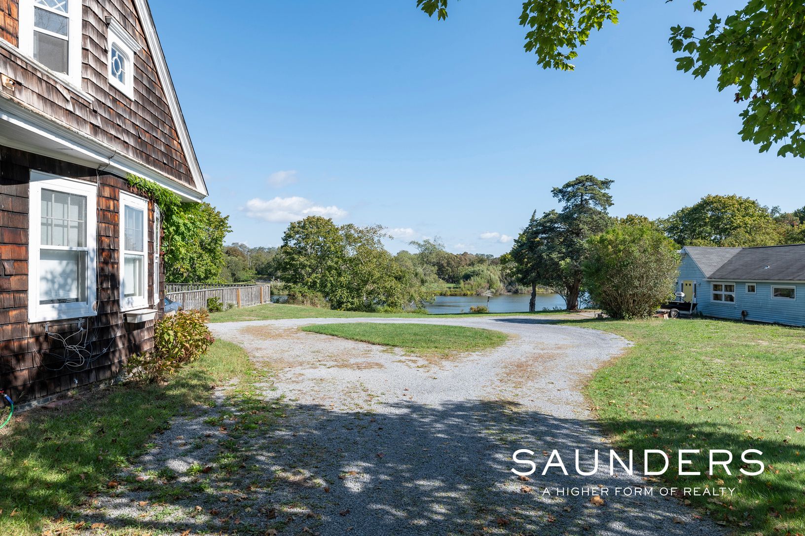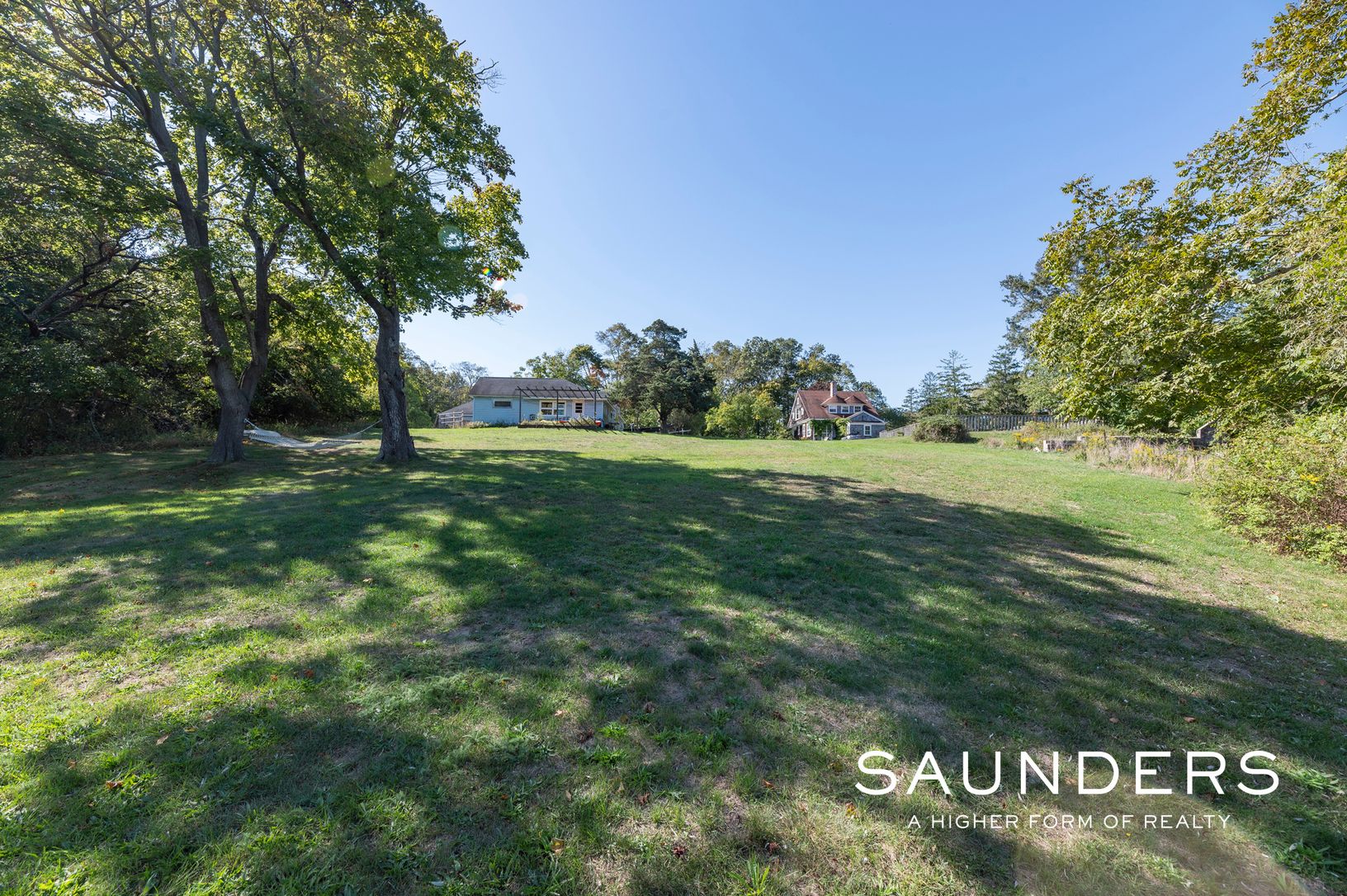 Located at the gateway to Watermill sits this historic compound on nearly 6 acres of waterfront. These are two single and separate lots being sold together. Currently there are 3 houses, a waterfront swimming pool, all with direct water views. The lots are subdividable. This could be one large family compound with mutiple dwellings, or build on one lot and sell the other. The possiblities abound.