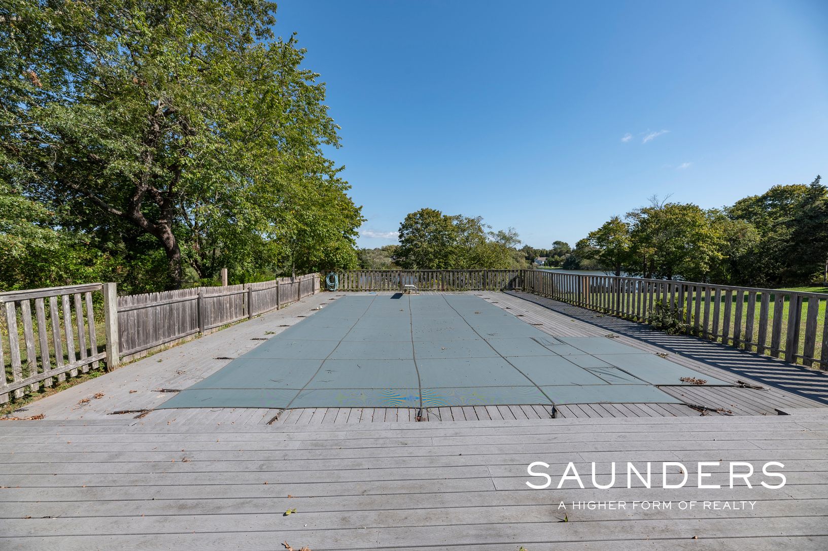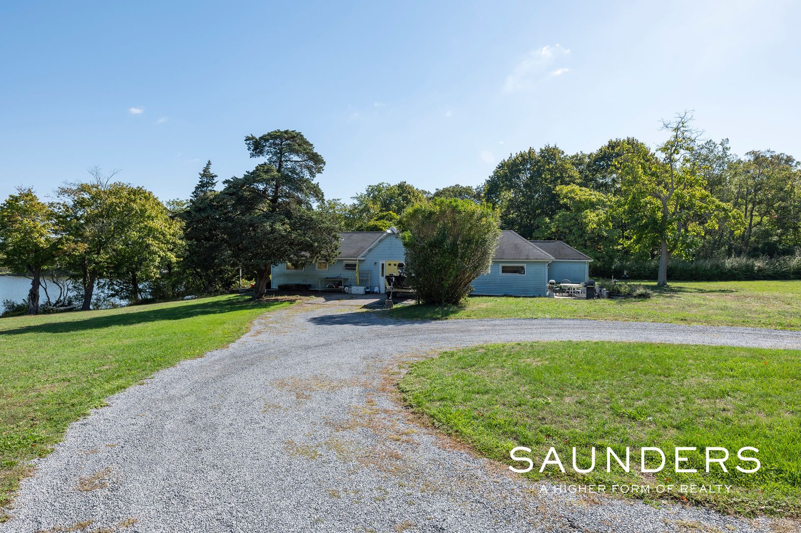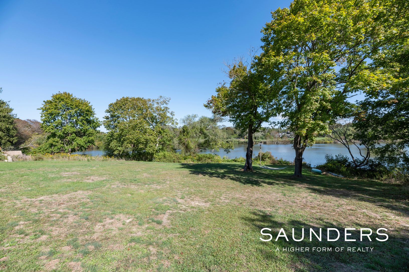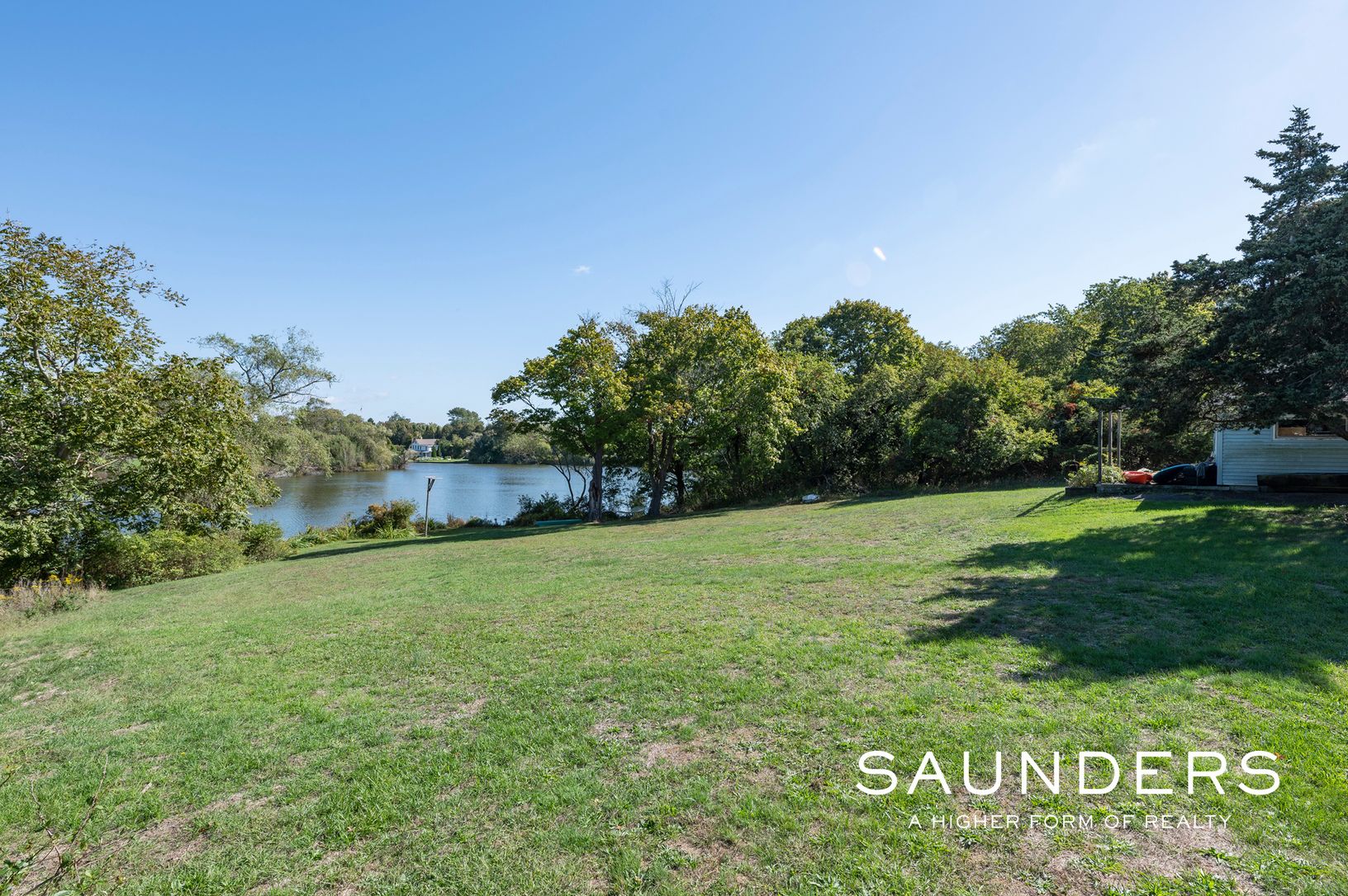 Located at the gateway to Watermill sits this historic compound on nearly 6 acres of waterfront. These are two single and separate lots being sold together. Currently there are 3 houses, a waterfront swimming pool, all with direct water views. The lots are subdividable. This could be one large family compound with mutiple dwellings, or build on one lot and sell the other. The possiblities abound.
