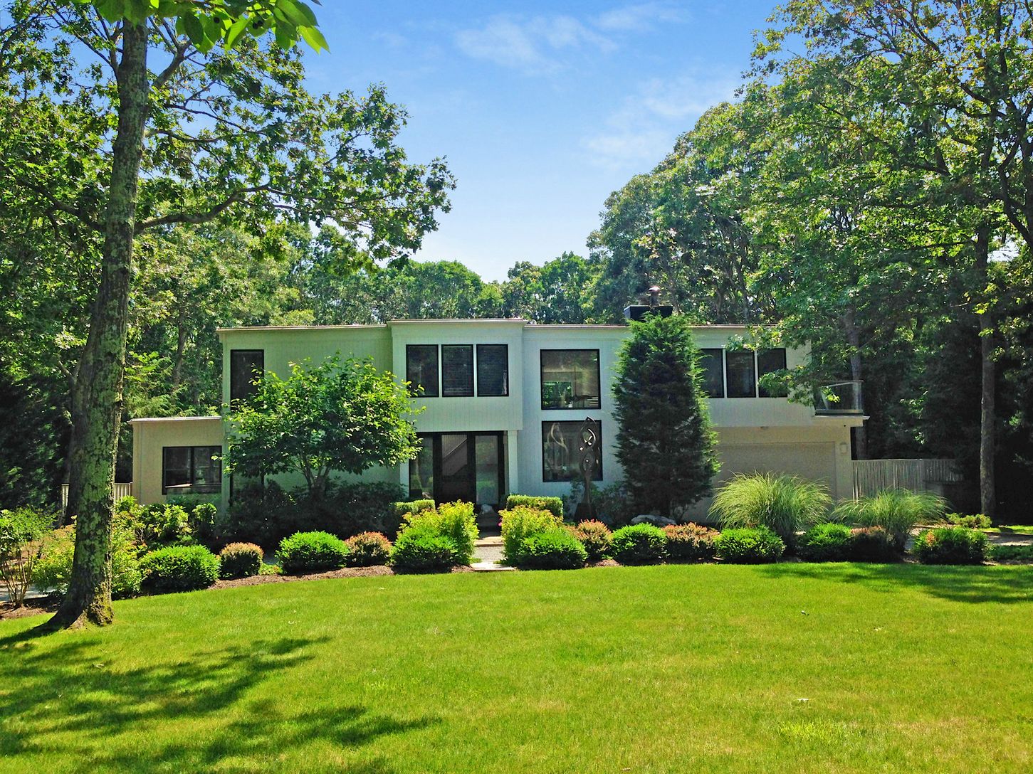 Soaring 4000 square foot Contemporary styled home features 7 spacious bedrooms, 5 and a half baths located on a lovely and private cul-de-sac 1 mile from Main Street and nearby ocean beaches in coveted Hansom Hills. Main floor consists of three bedrooms as well as an open floor plan with double height ceilings in living and dining areas that open to large gourmet kitchen with custom cabinetry and high end appliances that includes two full size