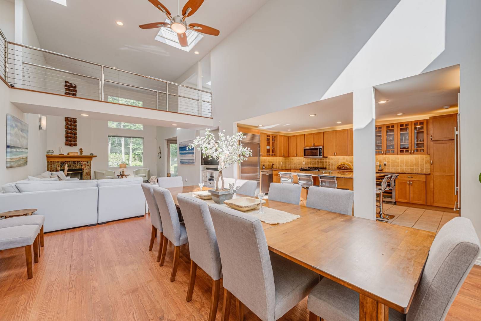 Welcome to 15 Anvil Court, East Hampton. This 5,600 square foot home features three levels of living space, with six bedrooms, five and one-half bathrooms, an open plan living room, kitchen and dining room, and a home theater! Located on a private cul-de-sac street close to East Hampton Village and ocean beaches in coveted Hansom Hills. Come in through the front door to the open floor plan with double height ceilings in the living and dining a