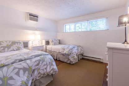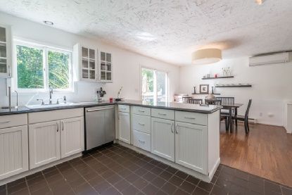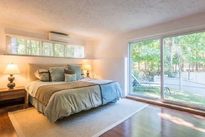 Renovated & improved, designer decorated 1800+/- square foot Contemporary home on a shy acre located on a sought-after street in East Hampton's Northwest Woods. Features include a sunken oversized living room with wall of glass, sliding French doors and a wood-burning masonry fireplace, a separate dining space that effortlessly flows into the stainless steel & granite kitchen with bright windows and glass doors overlooking the rear yar