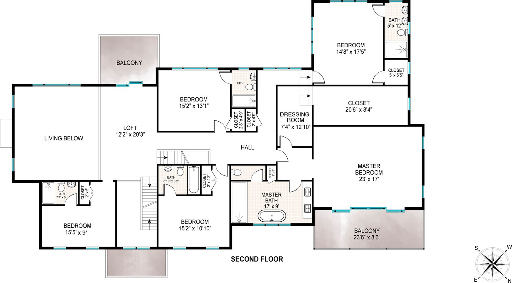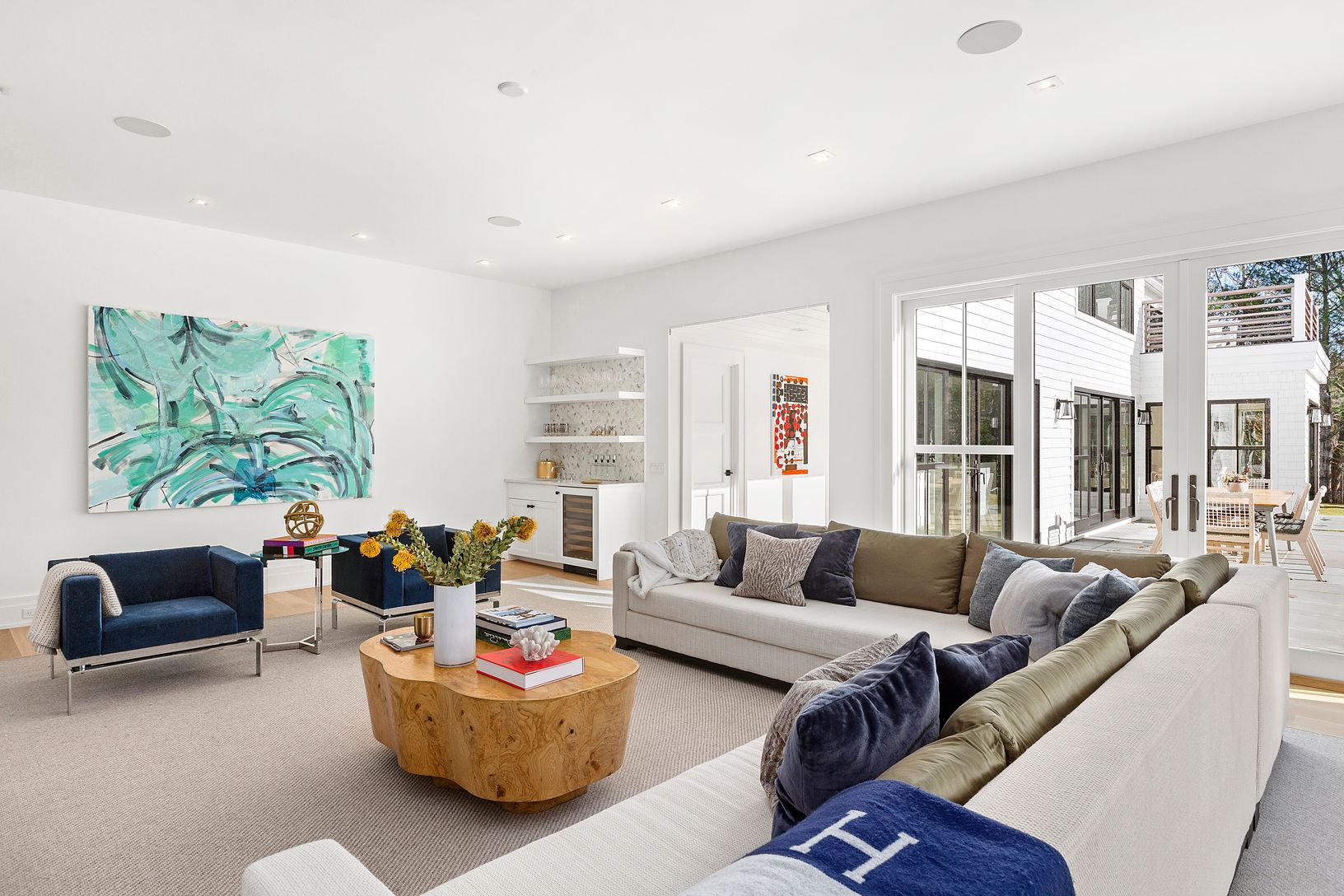 This beautifully constructed designer home spares no expense down to smallest details, bringing to life a home deserving of this 2 +/- acre hidden gem. With enough room for everyone, the home boasts seven bedrooms and seven and one-half bathrooms including the master suite with private balcony, large walk-in closet, and luxurious bath, four additional en suite bedrooms, a first floor junior master suite, and a lower level guest bedroom. The fi