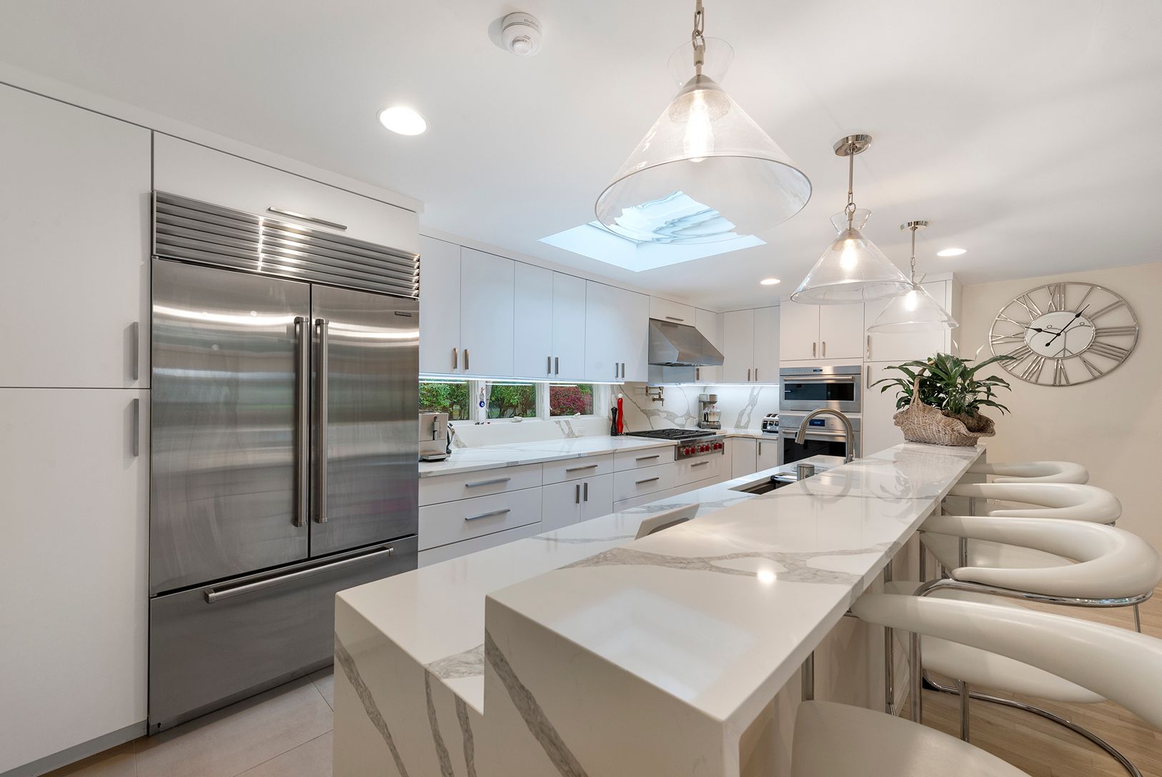 Immaculate, light-filled contemporary home offers an open floor plan with a great room including a newly renovated kitchen with a large breakfast island. There is a large primary suite with a spa bath and three additional guest bedrooms plus two recently renovated bathrooms. An expansive bluestone patio surrounds the heated pool. The convenient outdoor kitchen opens to a large outdoor dining area that's perfect for entertaining. Har-tru te