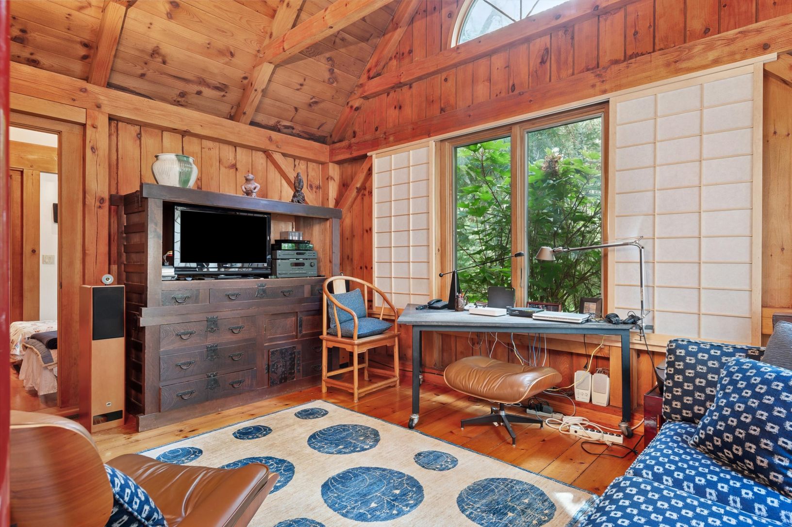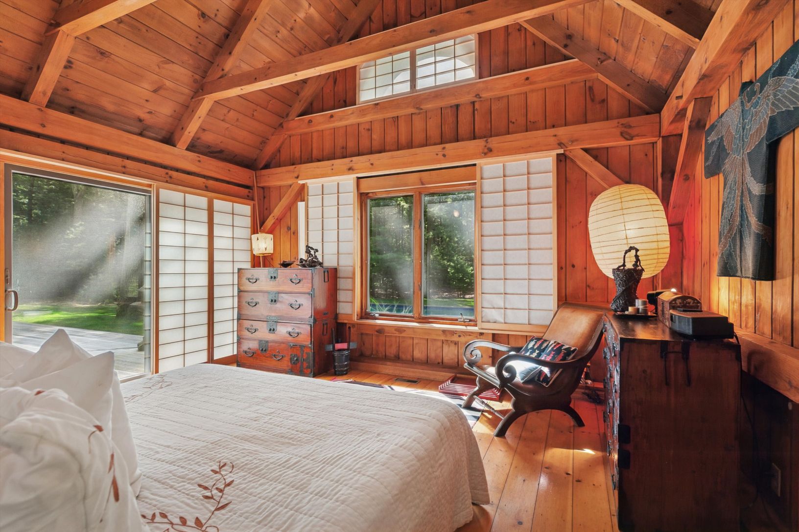 East meets West in this sensational 3000 SF post & beam residence nestled amid the natural privacy of 1.5 acres in East Hampton's desirable near Northwest. There's a distinctive, elegant yet relaxed Zen vibe throughout with a bright and open living, dining, kitchen area flanked by a wall of glass sliders all accessing the gorgeous deck, gardens, lawn and pool beyond. Single-level living offers comfort, convenience and privacy with 2 genero