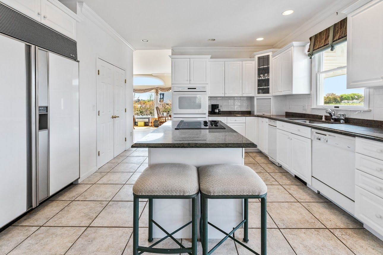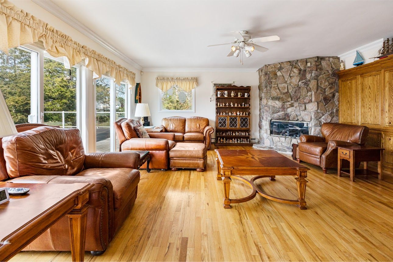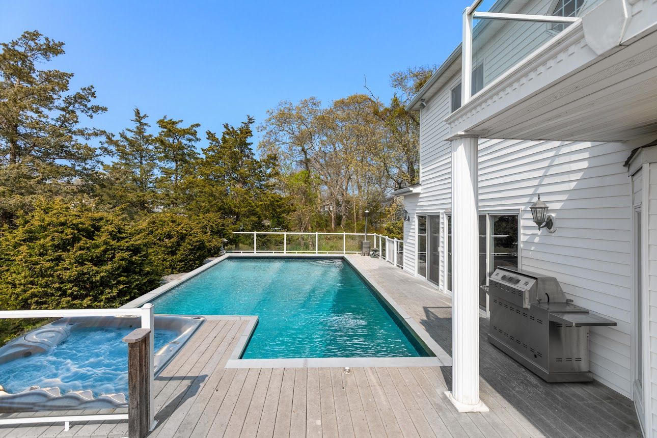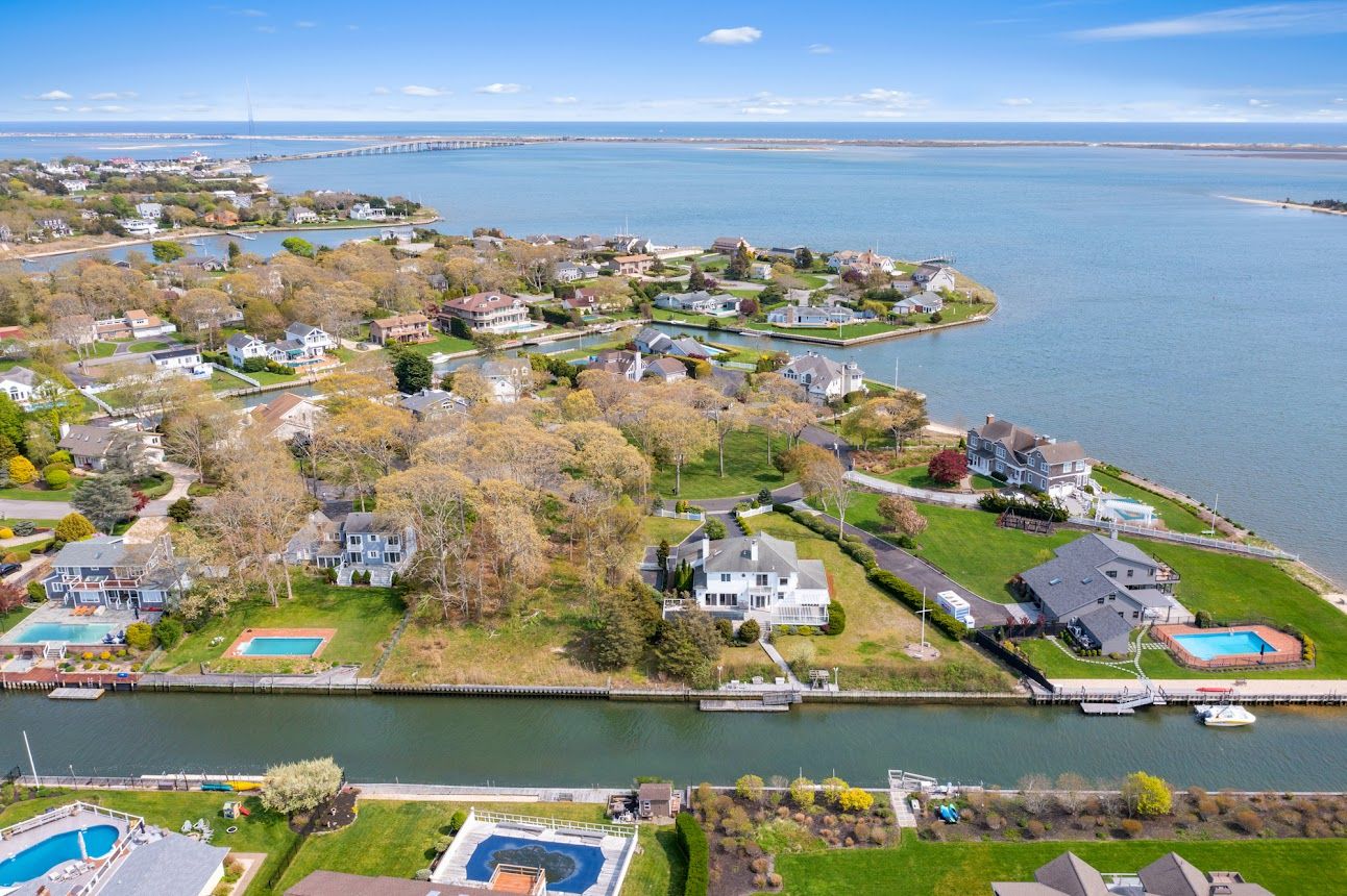 Welcome to your waterfront oasis in Hampton Bays! Nestled on an expansive .60-acre parcel of land within a prestigious private community, this exceptional residence offers an unparalleled coastal living experience. Situated on a serene cul-de-sac, the home boasts breathtaking panoramic views of the ocean, complemented by your very own private dock and an impressive 180 feet of bulkhead.