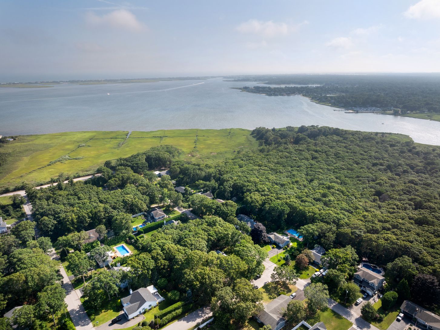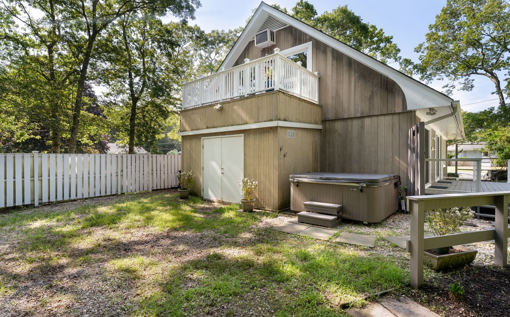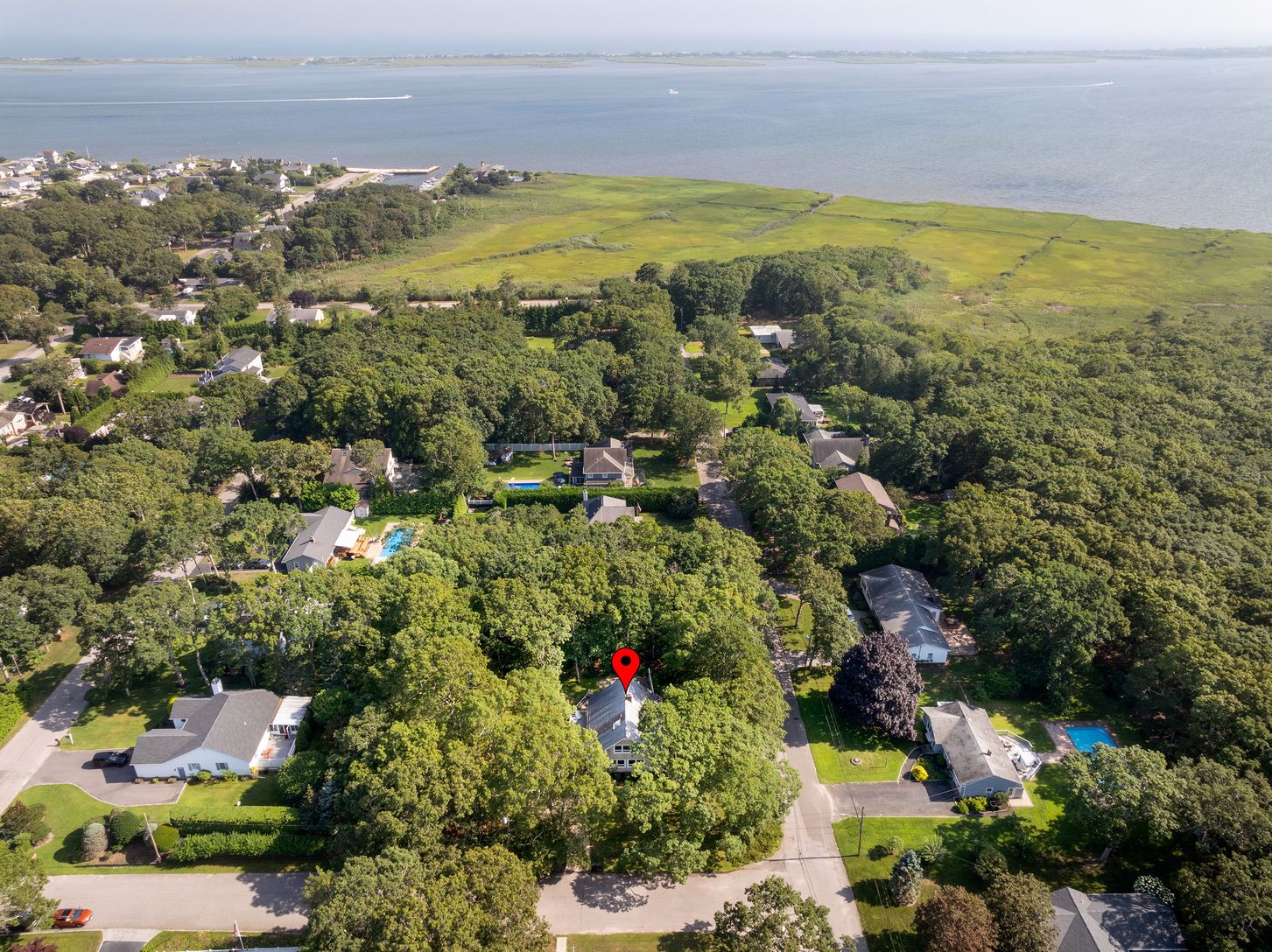 Welcome to Pine Neck Landing. Cape Cod in Private Waterfront Homeowner Association Community. 3 Blocks to Beach. Home features Living Room with Fireplace, Hardwood Floors on First Floor, Open Dining Room/Living Room Combo. Eat In Kitchen, 2 Bd. 1 Ba. on 1syt Floor. Large Cathedral ceiling Master Bedroom on 2nd Floor with Private Bath and & Upper Deci. Also Rear Sundeck & Hot Tub. Lovely Grounds with Sprinkler System. Whole Hous