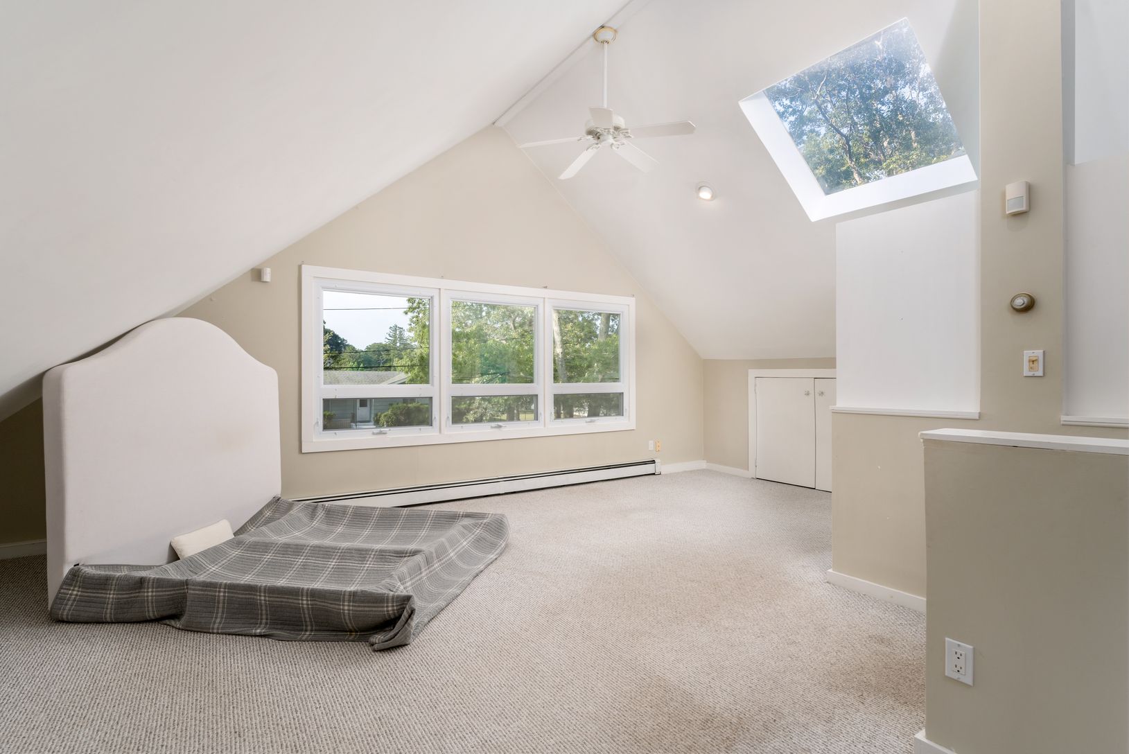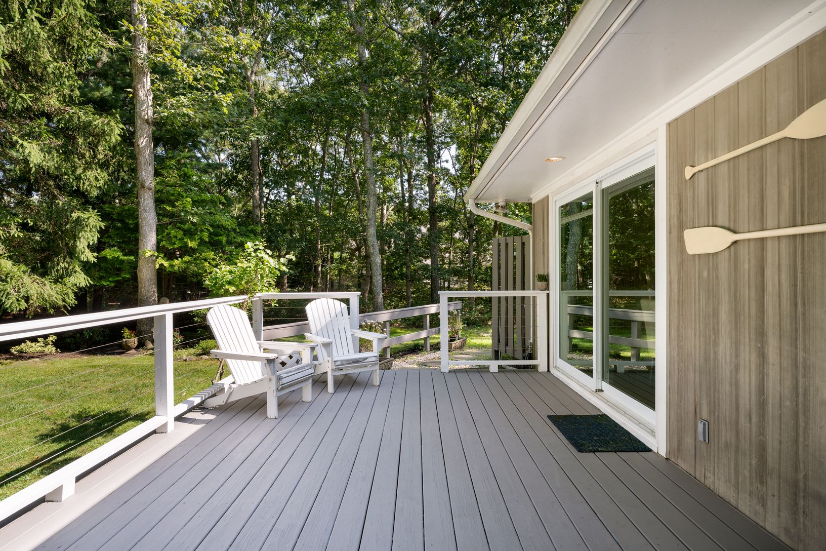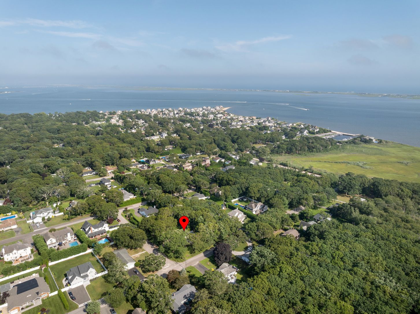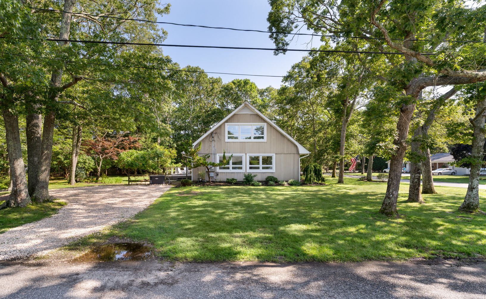 Welcome to Pine Neck Landing. Cape Cod in Private Waterfront Homeowner Association Community. 3 Blocks to Beach. Home features Living Room with Fireplace, Hardwood Floors on First Floor, Open Dining Room/Living Room Combo. Eat In Kitchen, 2 Bd. 1 Ba. on 1syt Floor. Large Cathedral ceiling Master Bedroom on 2nd Floor with Private Bath and & Upper Deci. Also Rear Sundeck & Hot Tub. Lovely Grounds with Sprinkler System. Whole Hous
