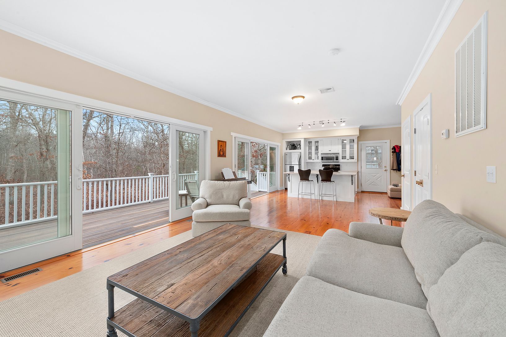 Just .60 mile from the Barnes Landing beach, this beautiful traditional home is on .34 of an acre between Springs and Amagansett. Built in 2008, the house features four bedrooms, each with it's own ensuite bath, including one on the first floor that could be used as a master bedroom. An open living area with wood burning fireplace, chef's kitchen and formal dining area make for easy entertaining. Additionally there is a full basement, mahog