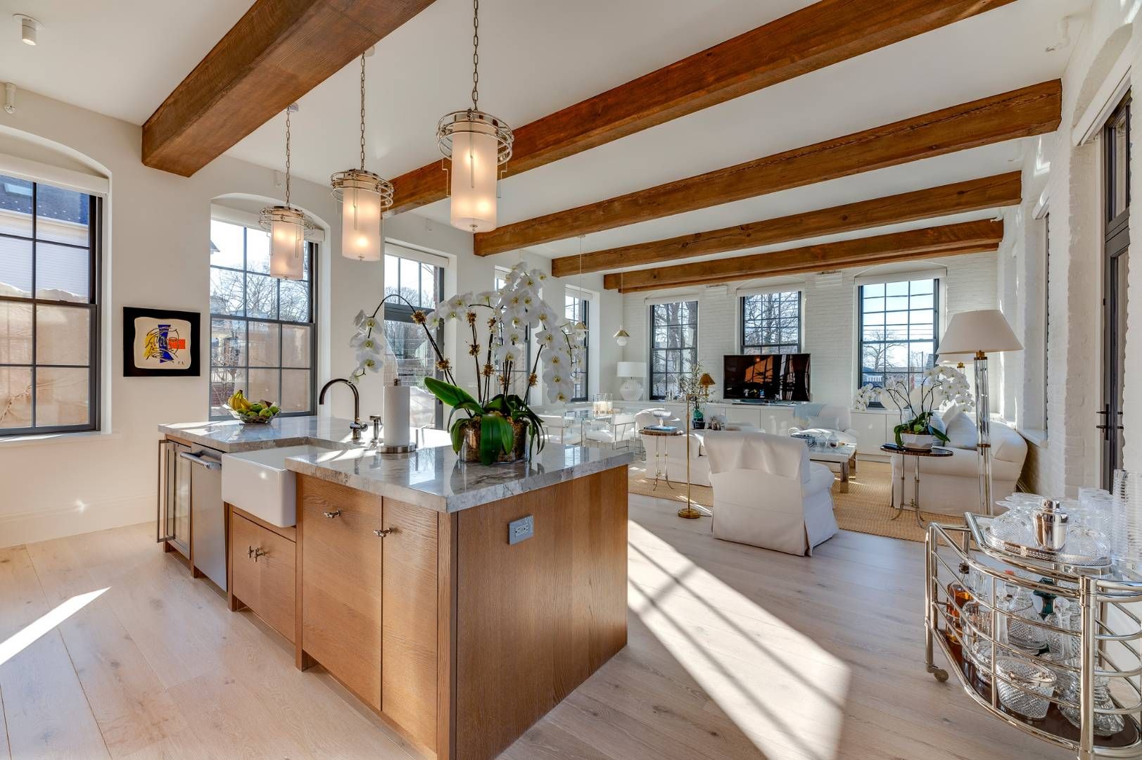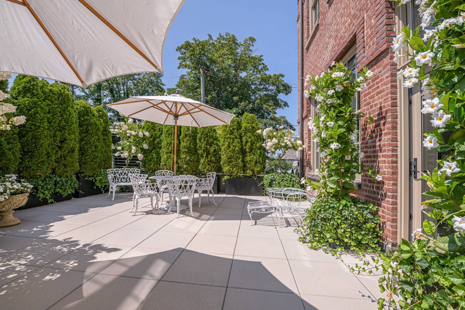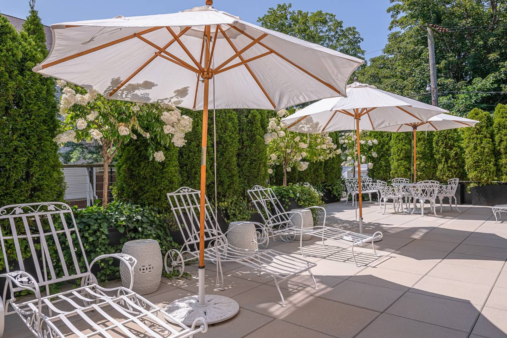In Sag Harbor's Watchcase, designed by Steven Gambrel, this exceptionally beautifully renovated residence provides 1,812+/- sq. ft. of interior living space plus 1,300+/- sq. ft. of exterior space on three terraces all on one level. Magnificent landscaping includes trees, hydrangeas, evergreens and flowers, and the southwest-facing orientation provides dazzling sunsets and suffuses the interiors with wonderful natural light. White-painted bric