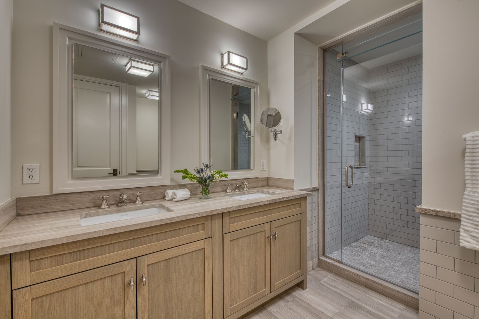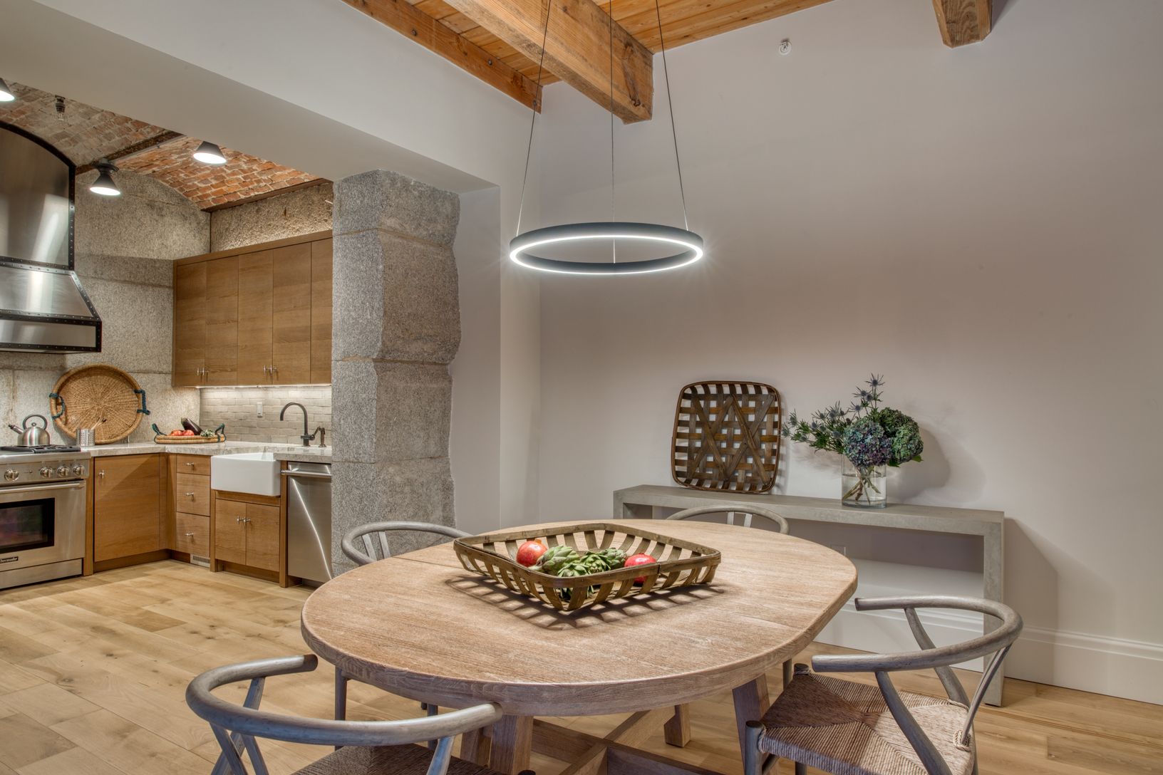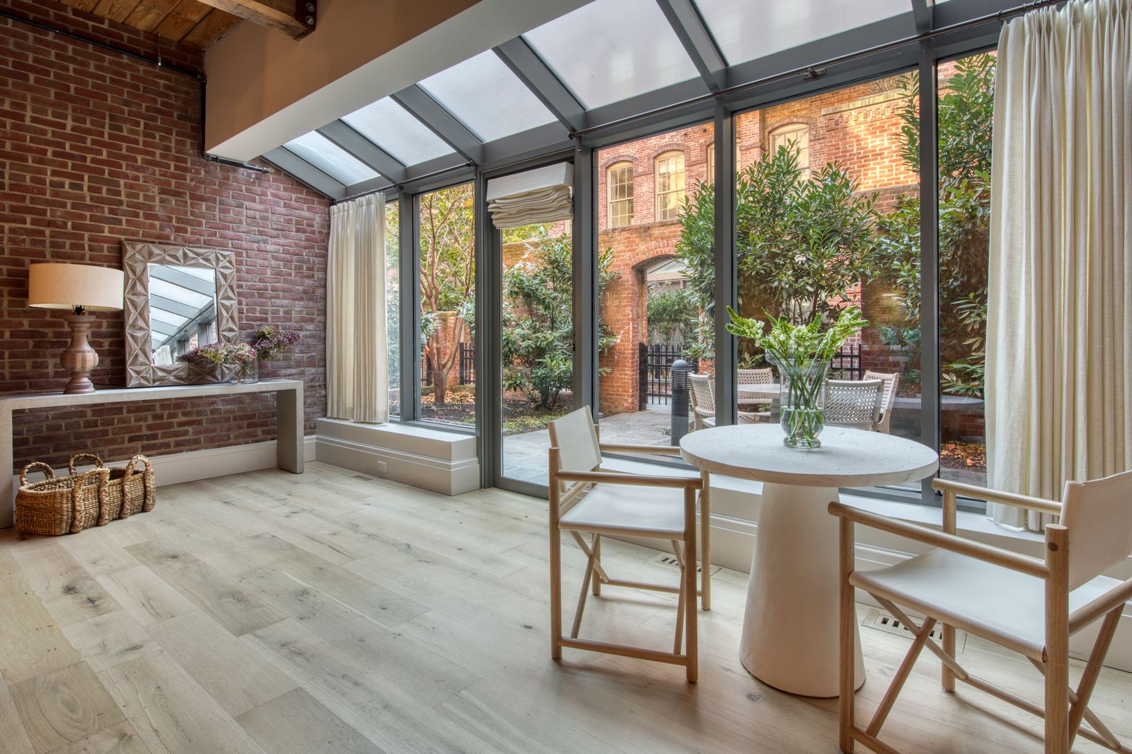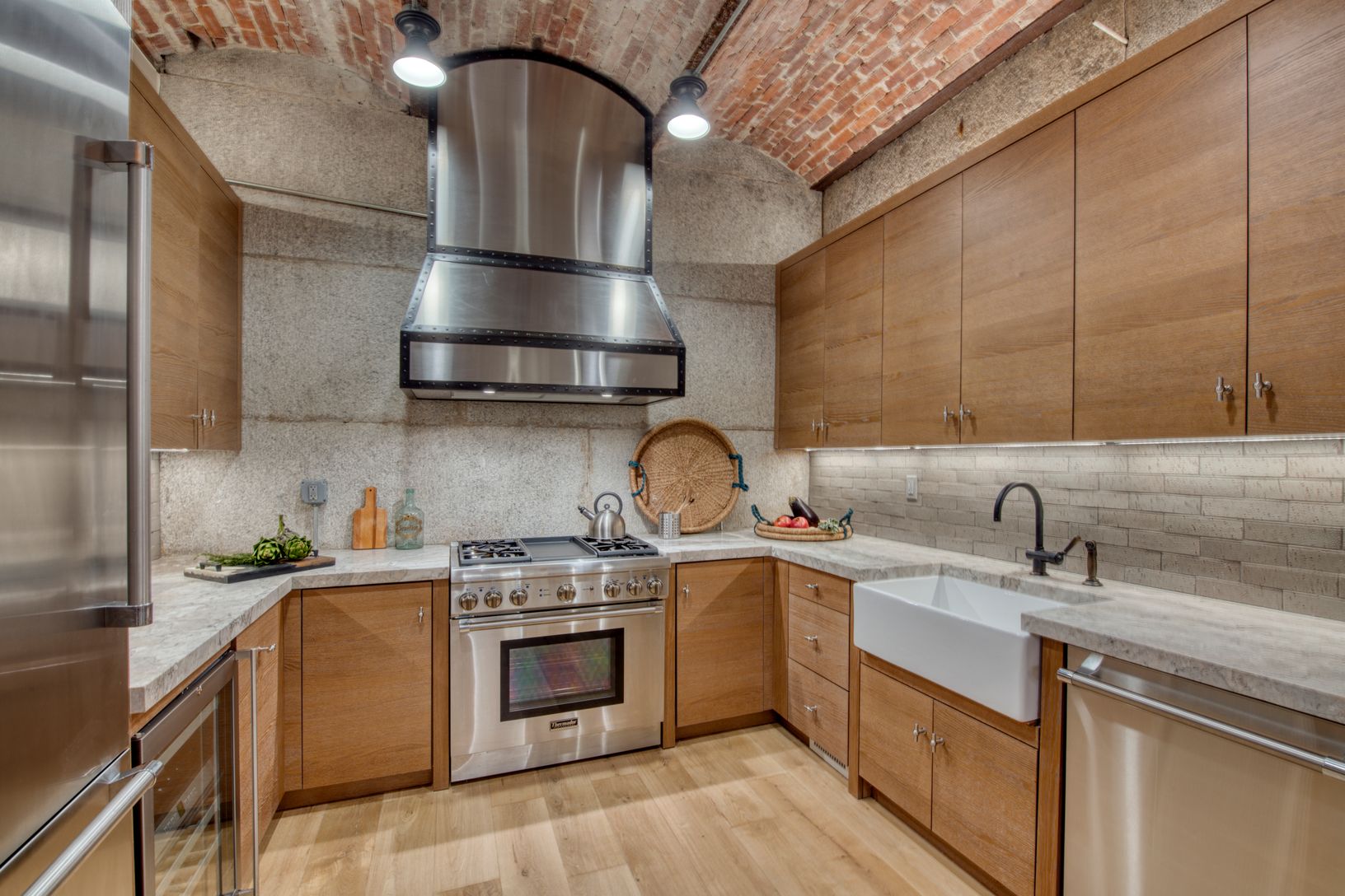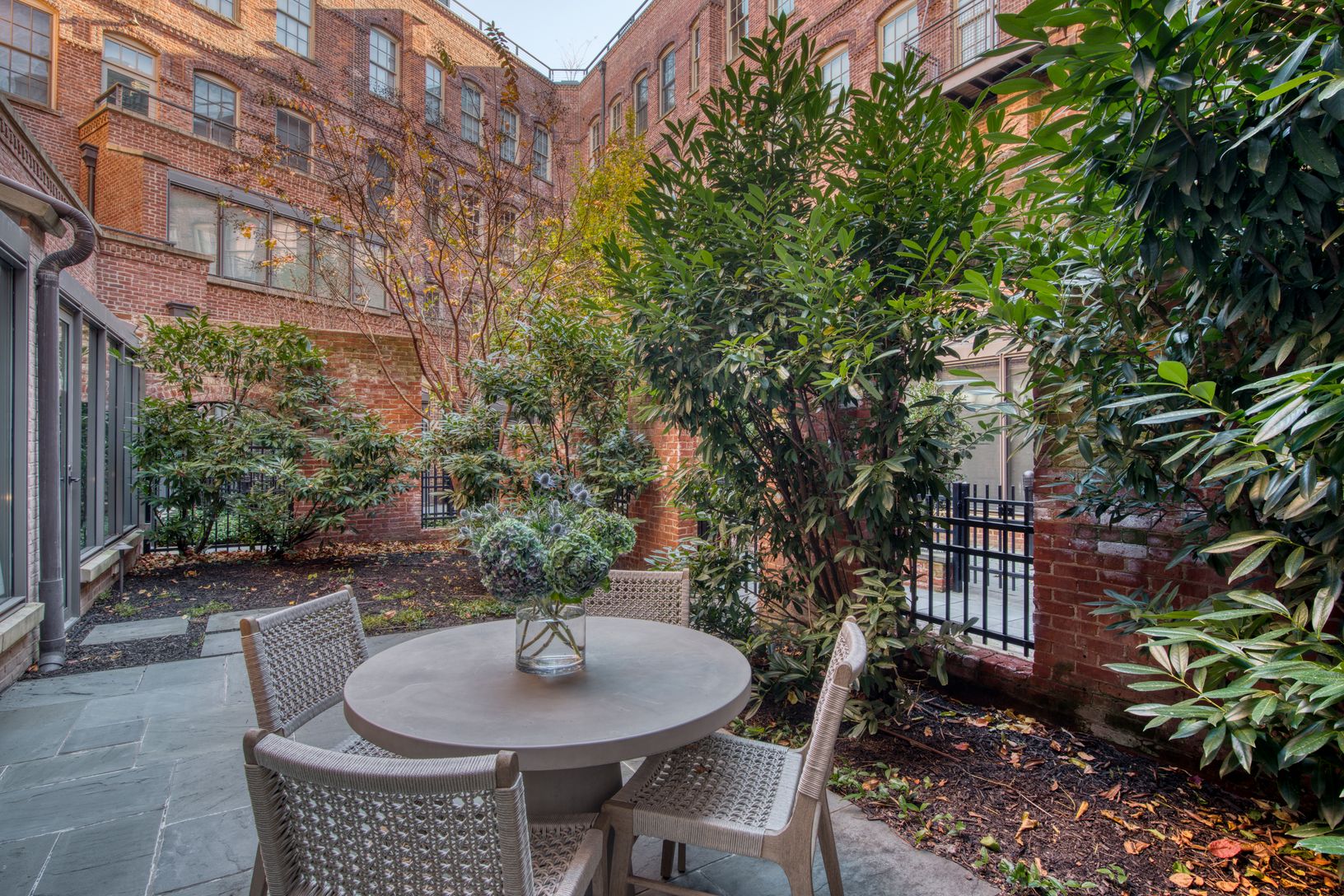 This exceptionally large 2164 s.f. residence has so much going for it: Private walled-in garden windows the entire width of the apartment, 2 separate solarium spaces, 2 good-sized ensuite bedrooms, and a 3rd full bath, a kitchen that is inside one of the 4 granite vaults in the complex as well as a spacious living area. Fumed oak floors, millwork, rich honed marble surfaces and exceptional fittings are blended with noted designer Steven Gambre