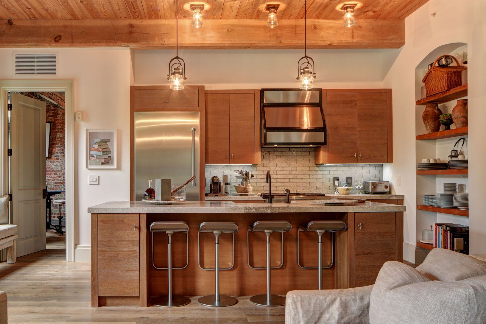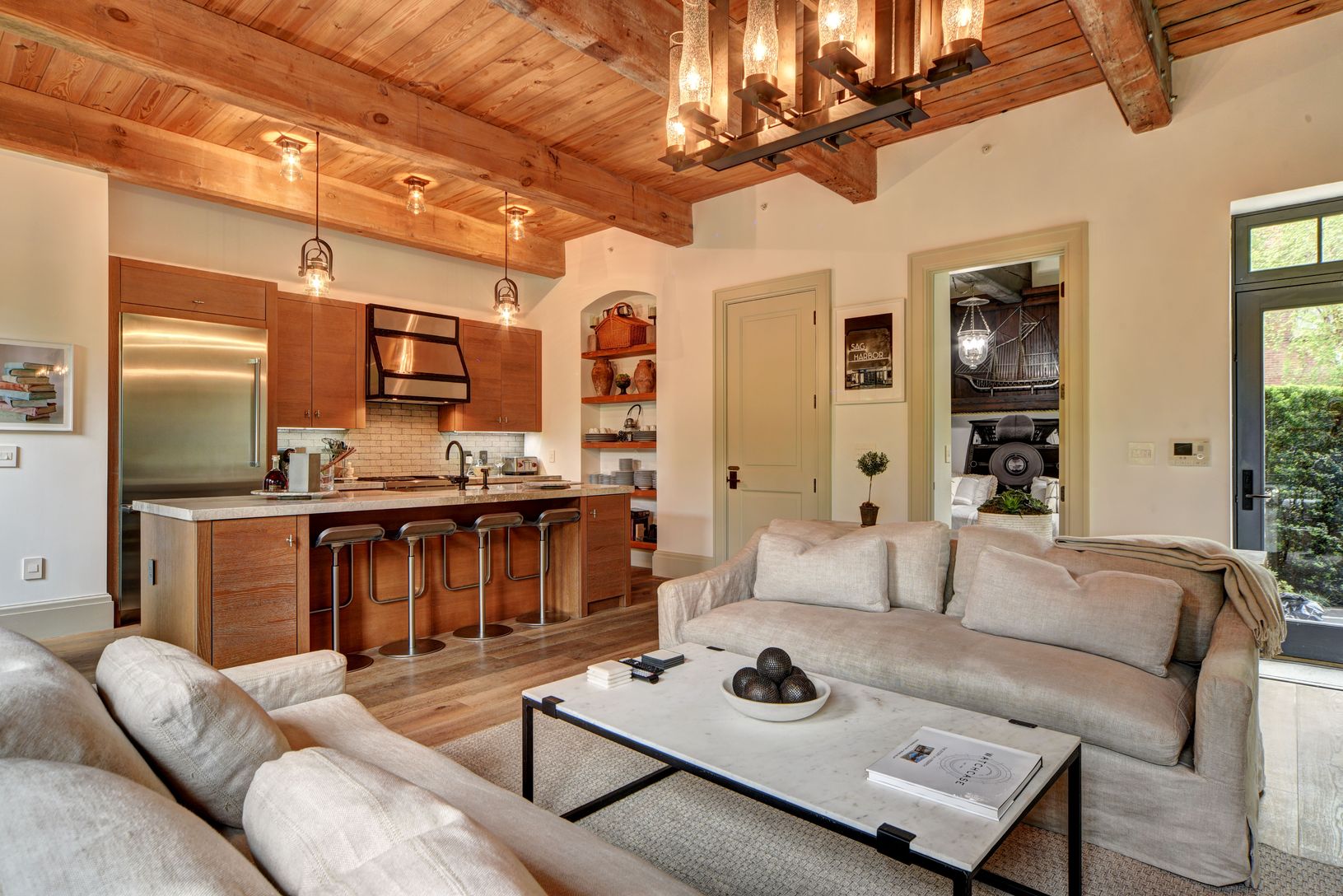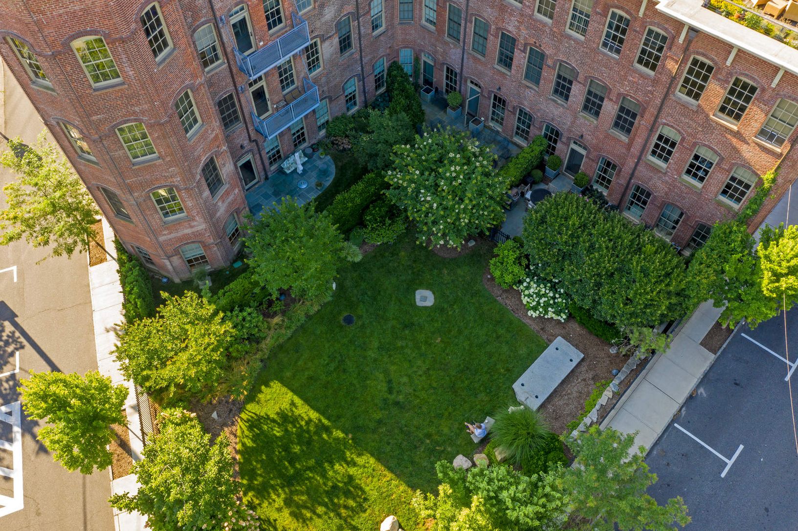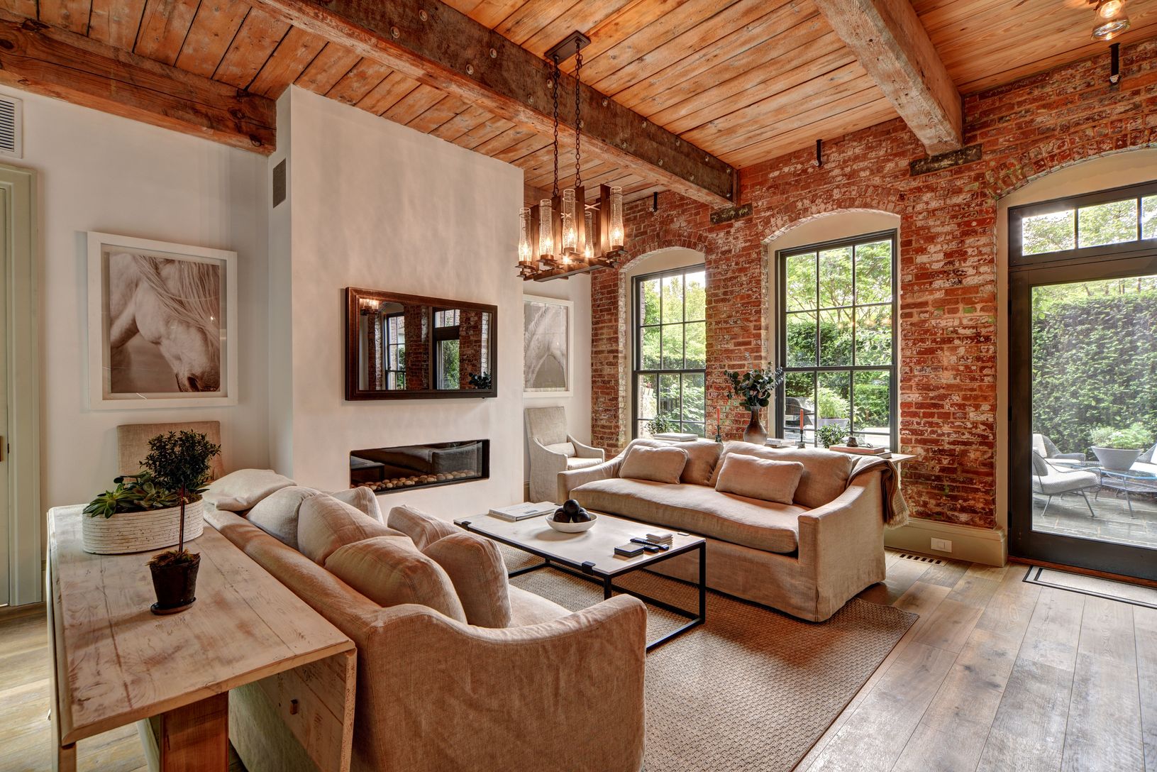 Instantly delightful, this two bedroom two bath home with 3rd bedroom flex space is accessed through a private garden off the landscaped Church Street courtyard at Watchcase. Offering a spacious greatroom with open kitchen and large center island, the oversized windows open onto the second larger garden allowing light to fill the residence. The exposed brick walls and old pine beamed 11 ft ceilings add to the architectural heritage and Watchca