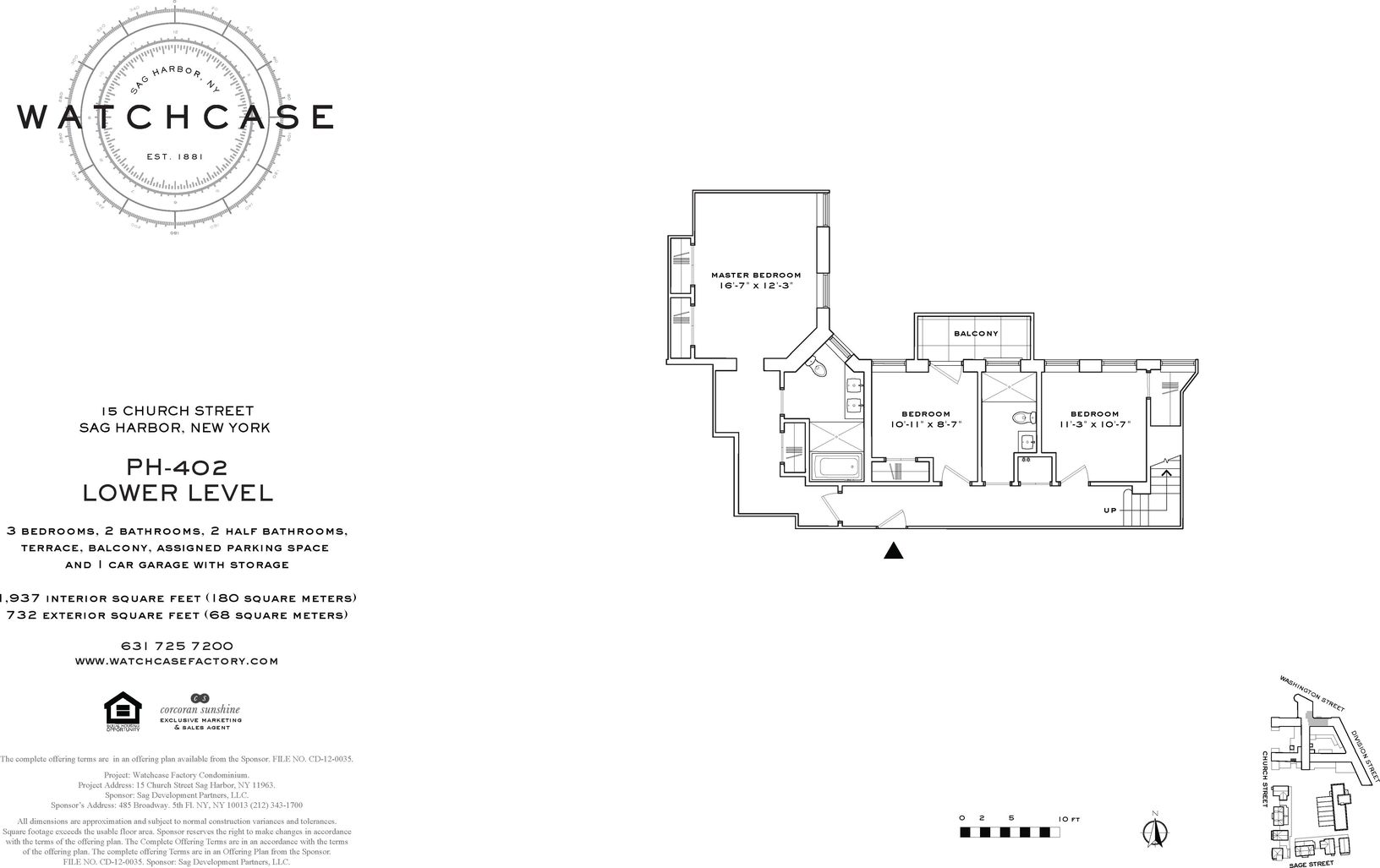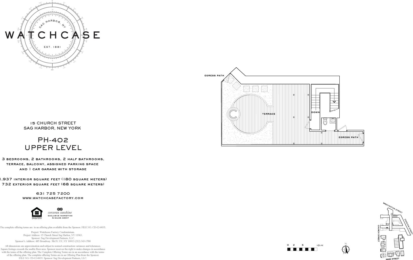 The Watchcase Factory in Sag Harbor Village: PH-402 is a 2321 s.f. 3-bedrooms, 2-full bathrooms and 2-half baths Penthouse on 2 living levels and rooftop terrace with water views, outdoor kitchen and one of the powder rooms. Building amenities include: concierge service, porters, full gym with locker rooms, yoga studio, spa treatment room, sauna, heated saltwater 64 x 22 ' pool, live-in resident manager and full-time superintendent. Parking a