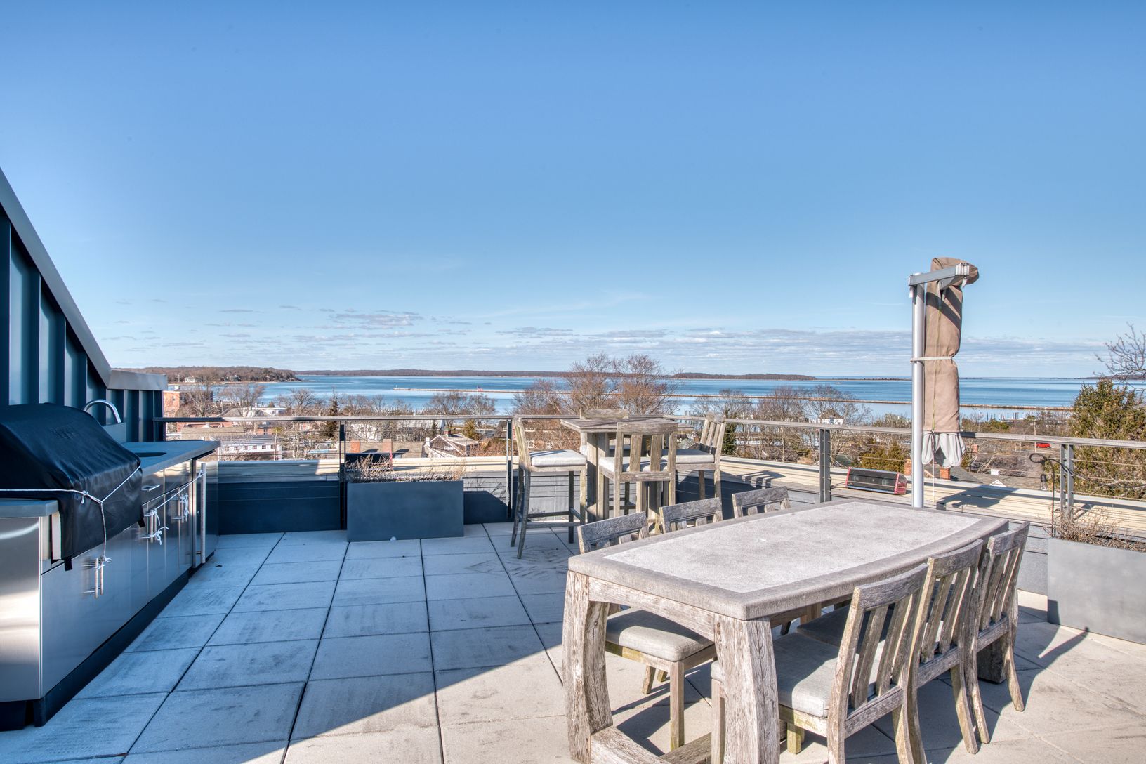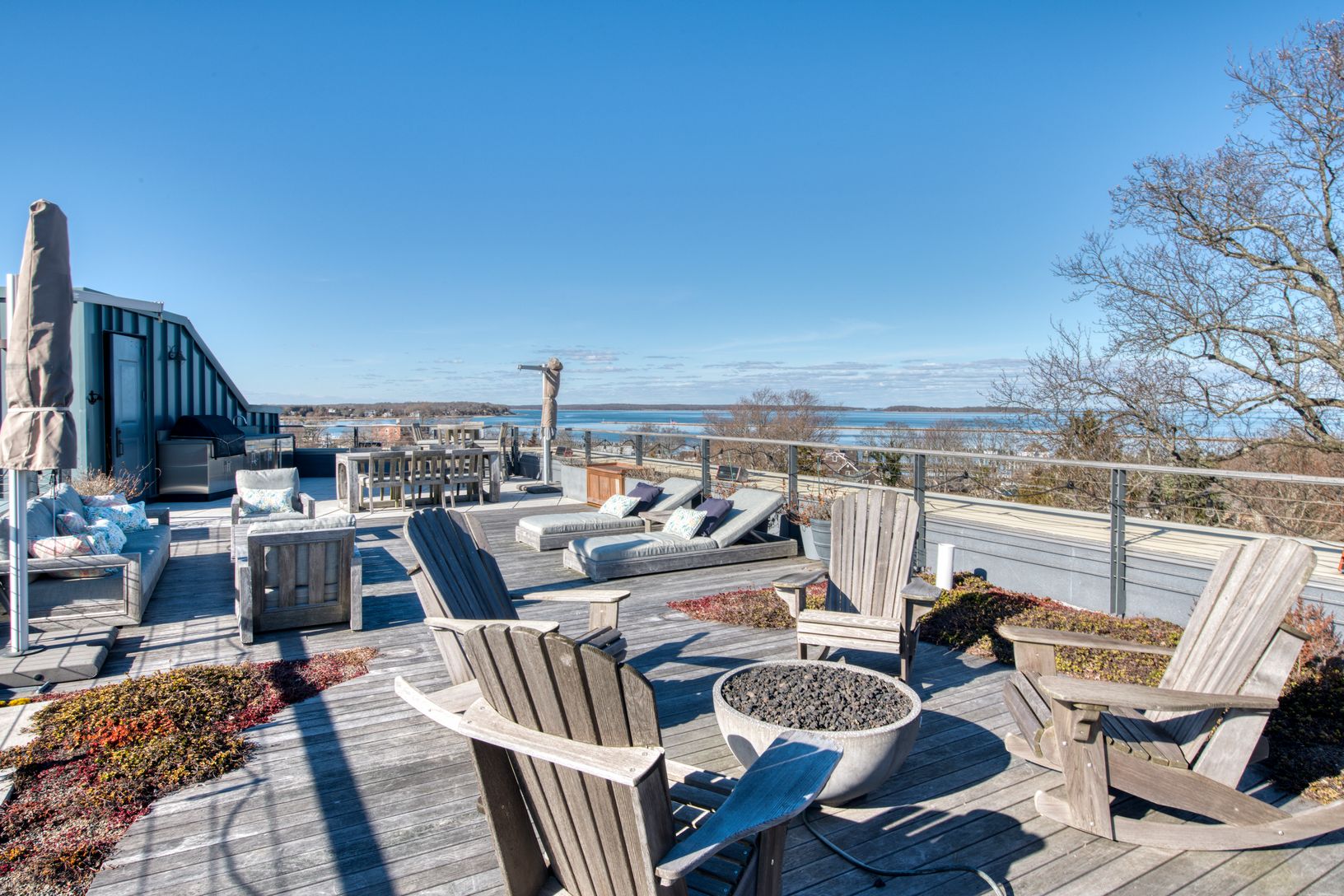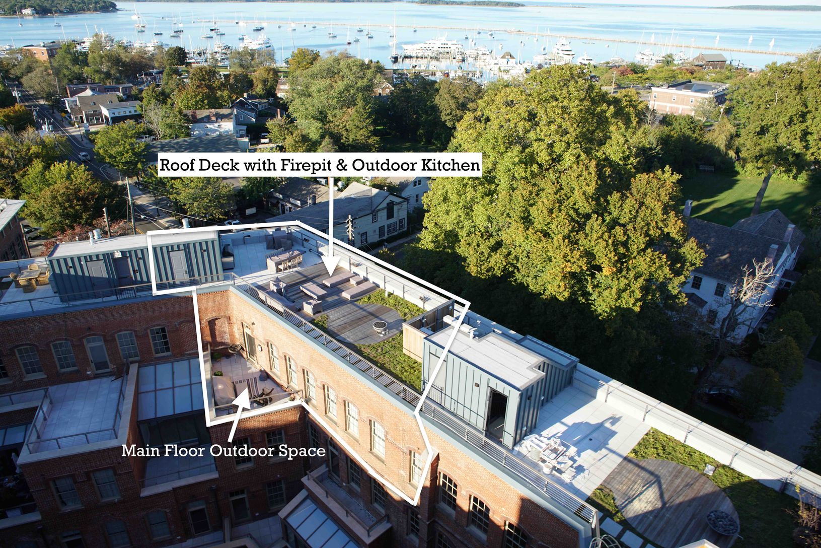 Stunning Harbor views await in this signature top floor Watchcase Penthouse. Offering 2 bedrooms, 2 full baths and 2 half baths (one on the roof deck), and breathtaking panoramic views completely unique to Long Island, the Hamptons and Watchcase itself. Wrapping the northeastern corner, the 2,000 sf PH residence with a 1,532 sf private rooftop terrace with built-in outdoor kitchen and fire pit which offers magical vistas over Sag Harbor Villa