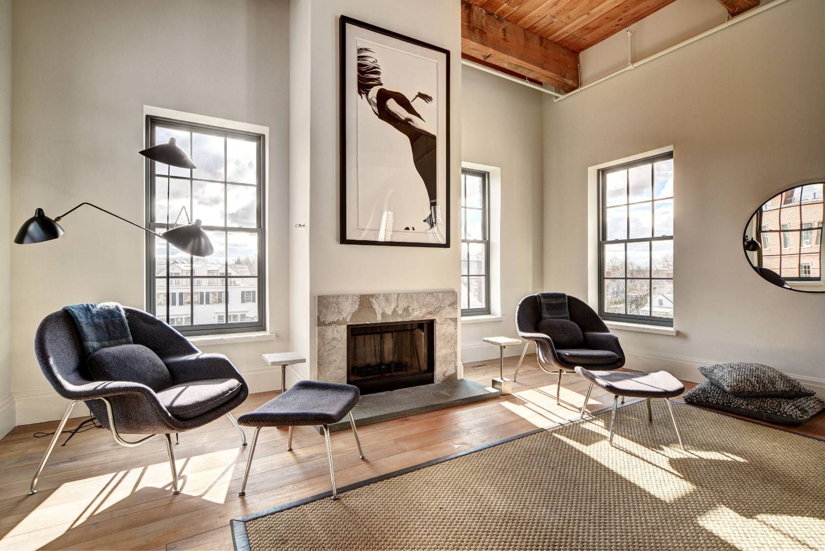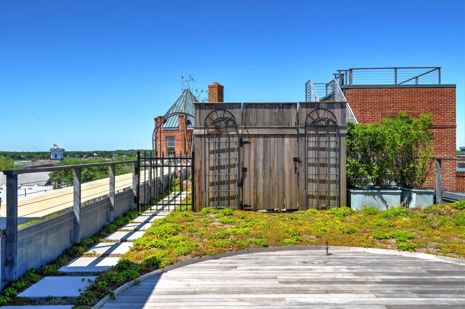 Situate on the southwestern section of Watchcase, PH-418 offers 3 bedrooms, 3 1/2 baths with 2,189 of interior sf and 2,049 of outdoor sf with magical vistas over Sag Harbor Village and its surrounding waterways. Inside, dramatic Georgian Pine ceiling beams, 12'+ ceiling height, and an open flowing layout, complemented by exposed brick, walls of windows and wood-burning fireplace create a truly striking home.The master suite features the Watch