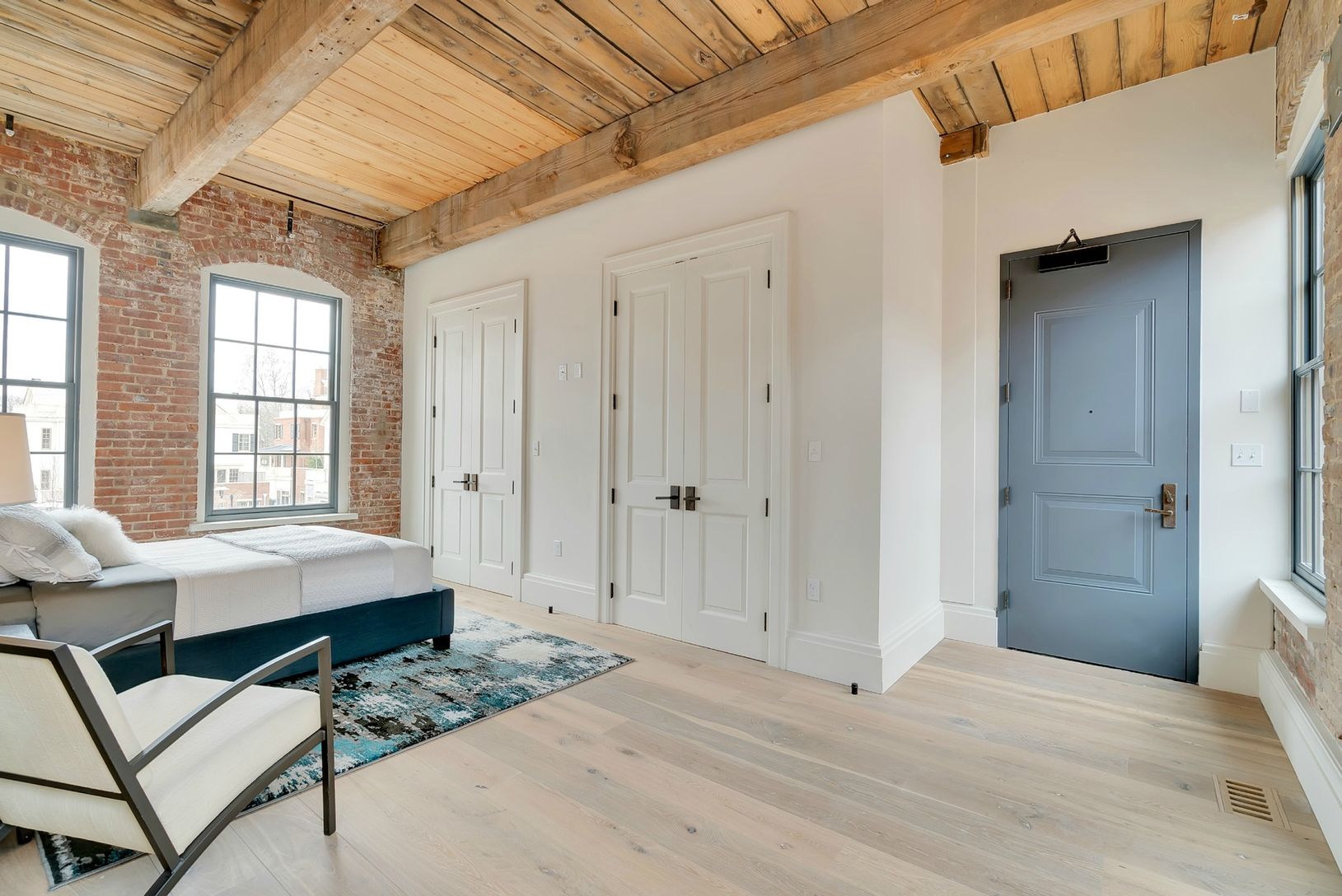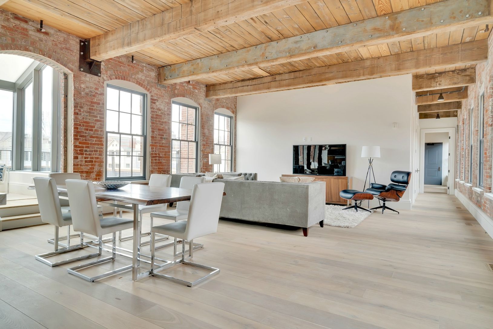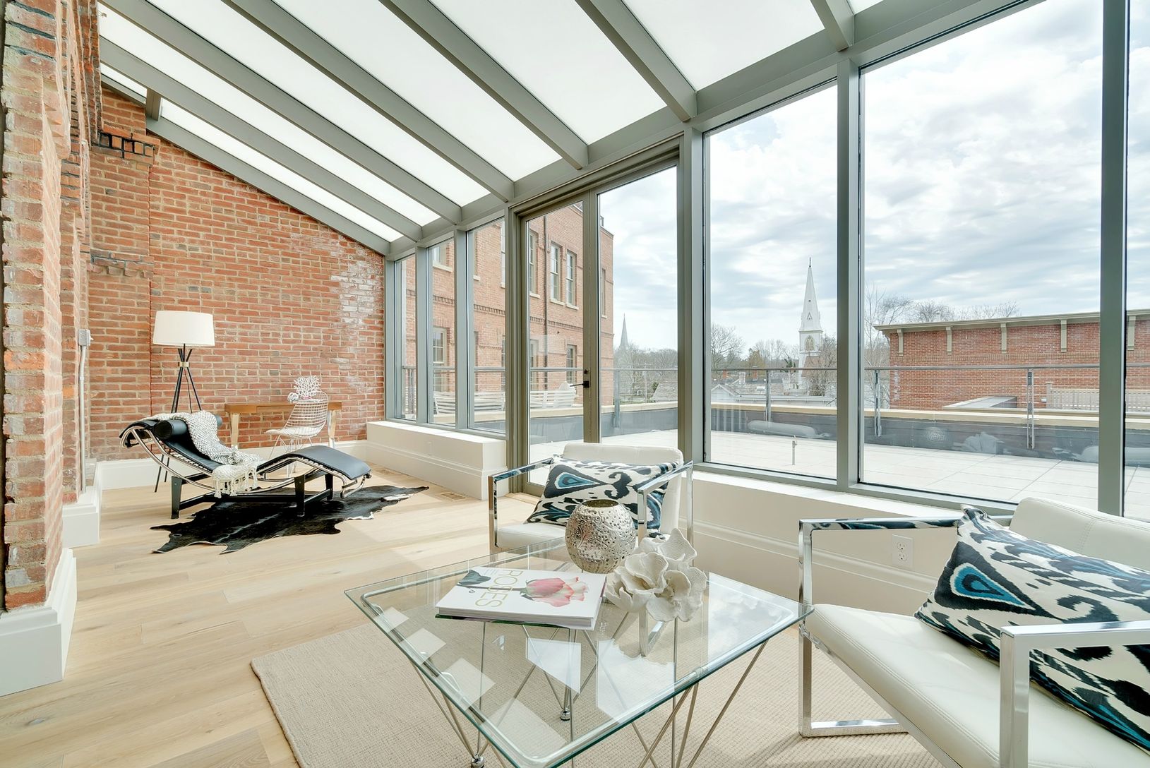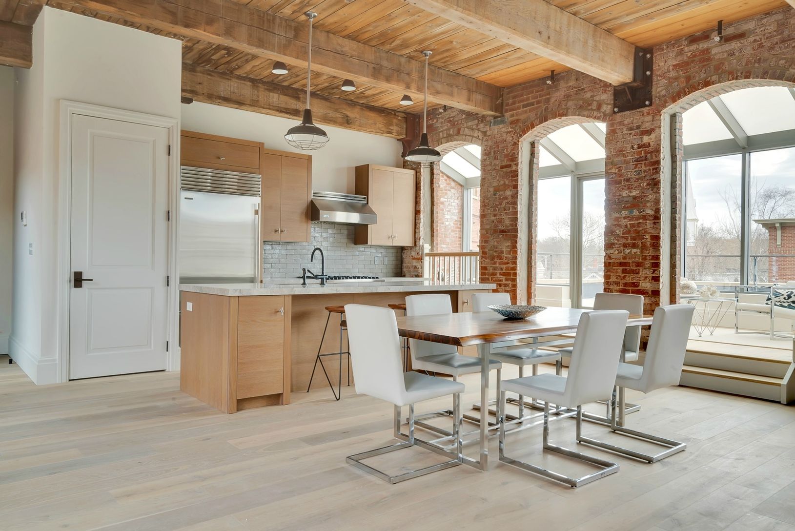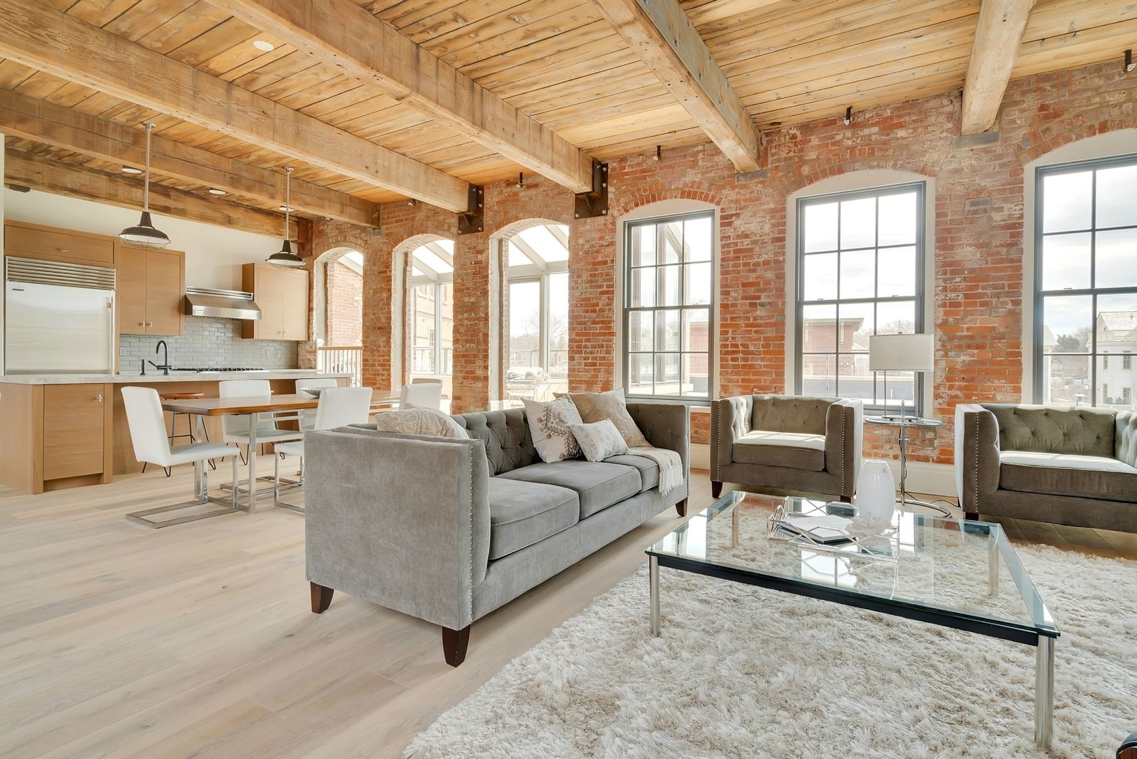 Monthly maintenance is $2041. This stunning 2 bedroom, 2 1/2 bath, south-facing penthouse on the third floor captures every enchanted charm that defines Watchcase. A spacious 1,994 sf home with walls of beautiful large windows and exposed brick complement the 11' old growth pine-beamed ceilings and loft-like layout. An 850 sf terrace soaking up the southern light and overlooking the swimming pool and Watchcase Pavilion is accessed from a ligh