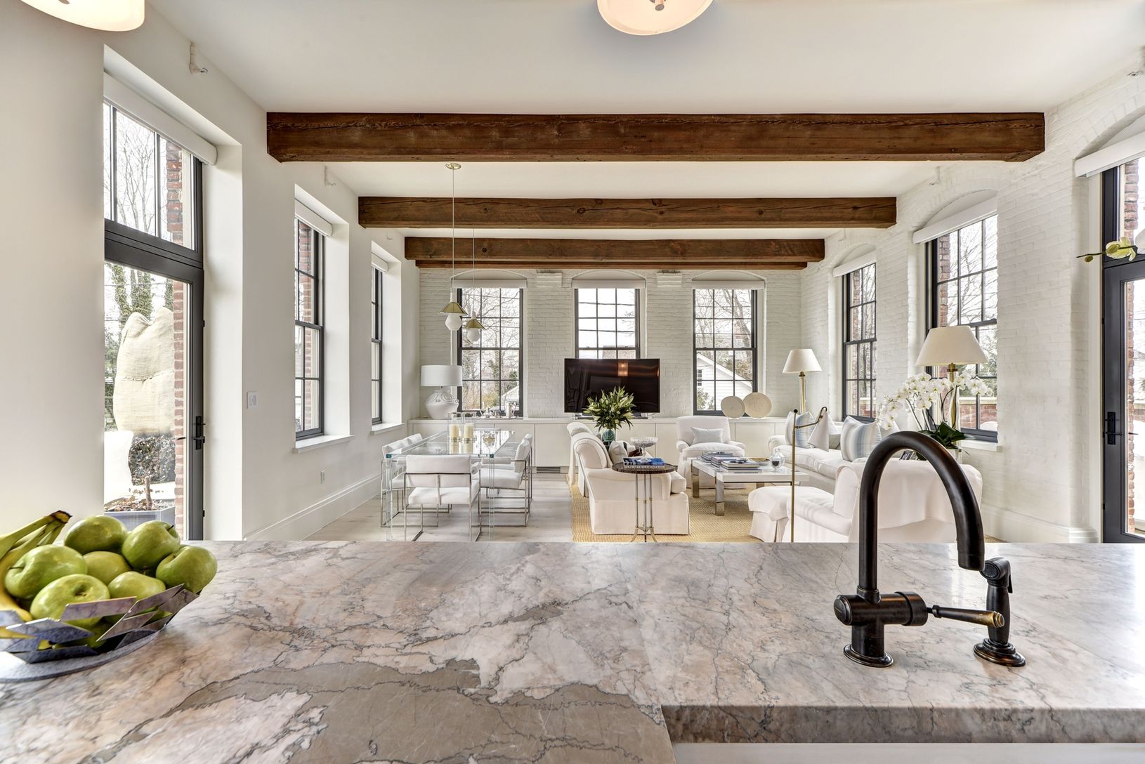 Occupying the entire 2nd floor of the southwest Church Street wing, this 2 bedroom, 2 ½ bath residence with three amazing private terraces is nothing short of spectacular! Light-filled spaces due to oversized windows at every turn and 11'+ pine-beamed ceilings, this dramatic, sun-drenched 1,812 s.f. home also features over 1,395 s.f. of outdoor living and monthly common charges of $2,095.11. Enter through the dazzling windowed foyer into the o