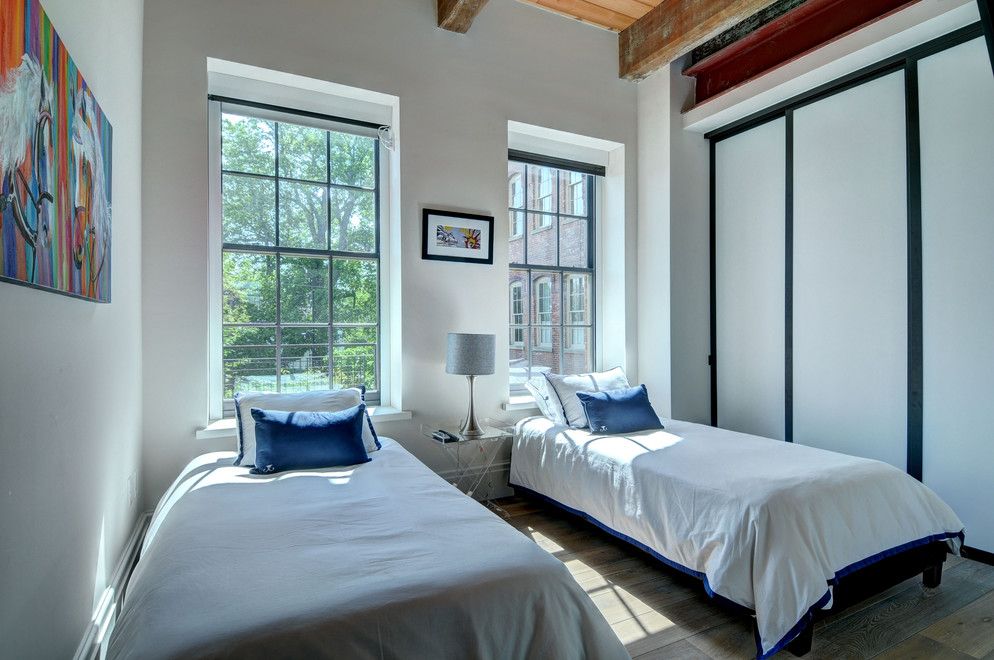W-200 is a 2000 s.f. three bedroom, three full bath residence on the second floor of the newly completed Watchcase Factory in Sag Harbor. Light-filled and situated in the octagon tower of the factory, this elegant apartment has views of the village and over the private residents' keyed garden and has a large balcony facing east looking up picturesque Burke Street. Enter through the main lobby at 15 Church, past the concierge, and take the elev