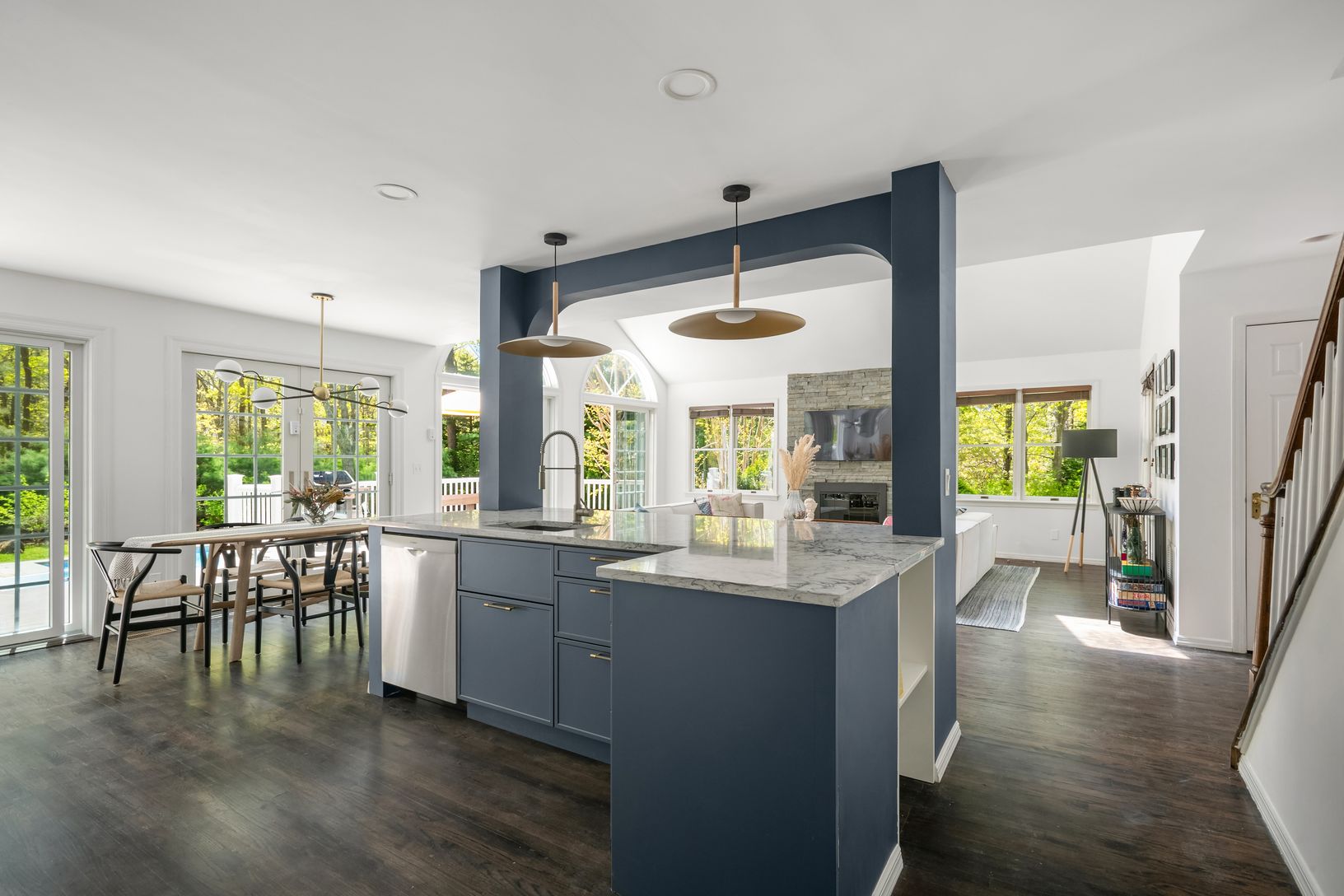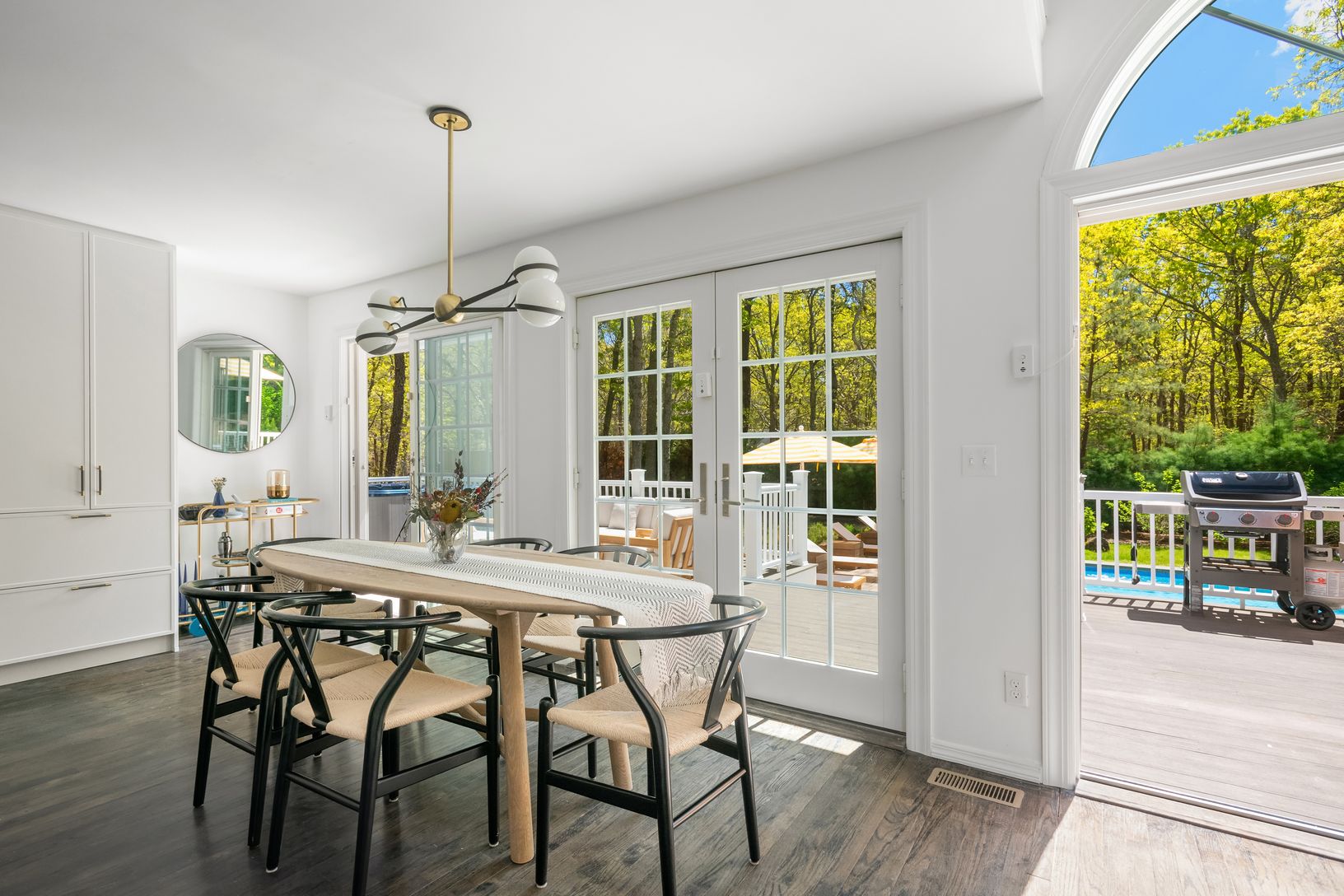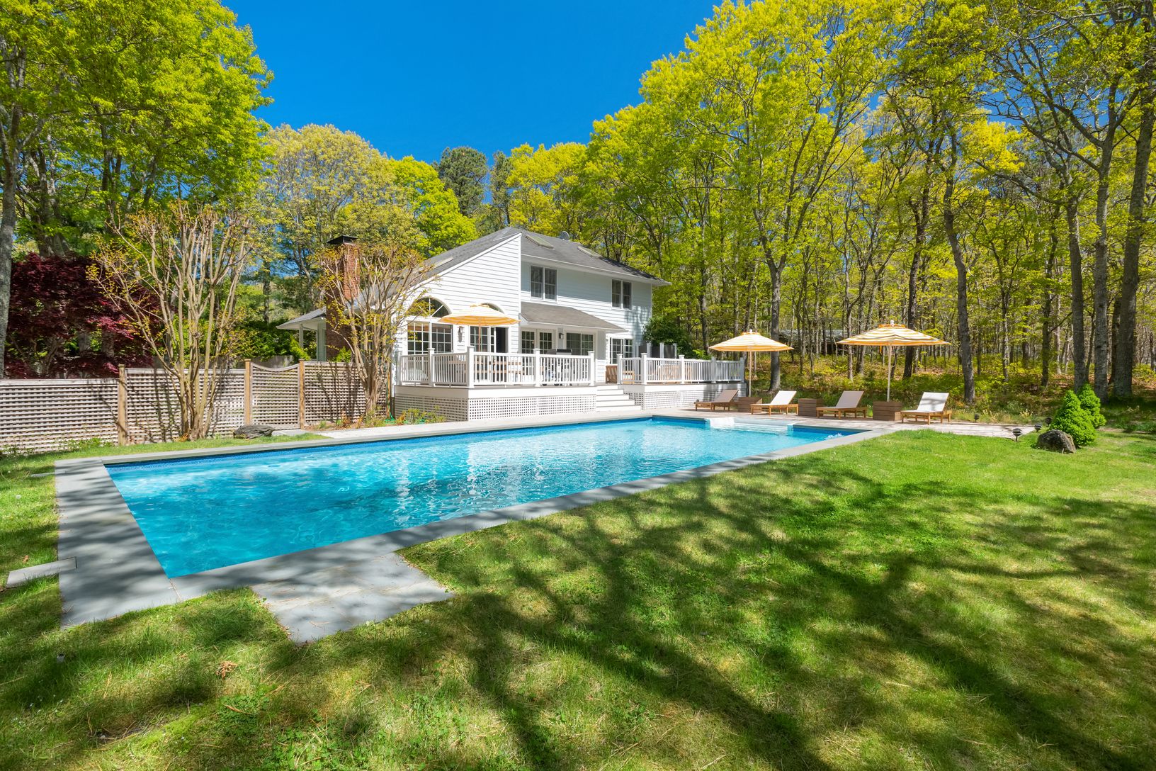 This meticulously designed home is tucked away at the end of a cul-de-sac and features 4 bedroom and 3 baths. The first floor features a spacious great room with vaulted ceilings, a cozy wood burning fireplace and an abundance of glass doors streaming with natural light which easily connects to the expansive wood deck and lush grounds. Finishing off the first level, an inviting eat-in-kitchen, bedroom and full bath. The second level has a newl
