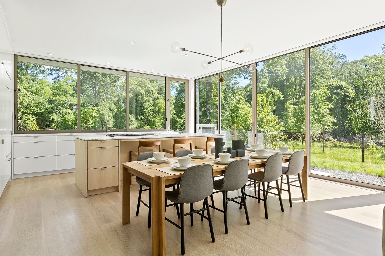 Newly constructed, this Contemporary home was designed by the highly acclaimed Stelle, Lomont and Rouhani Architects and brings forth the elements of modern design that include clean lines and organic elements that maintain a symbiotic relationship to the natural settings. In this instance, the ultra contemporary home blends perfectly unobstructed views of a quintessential Eastern Long Island ecosystem sheltering birds, plants and mature tree
