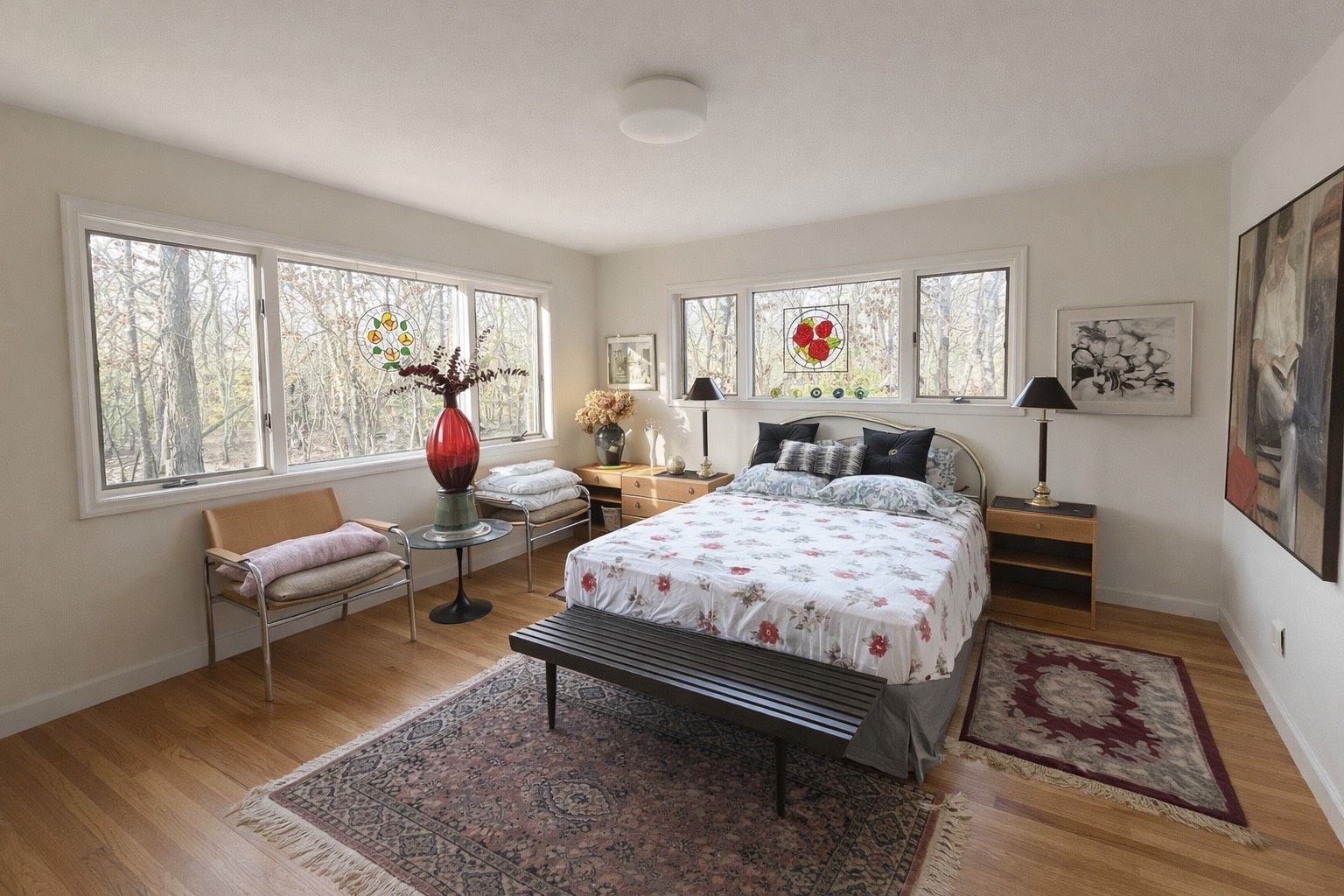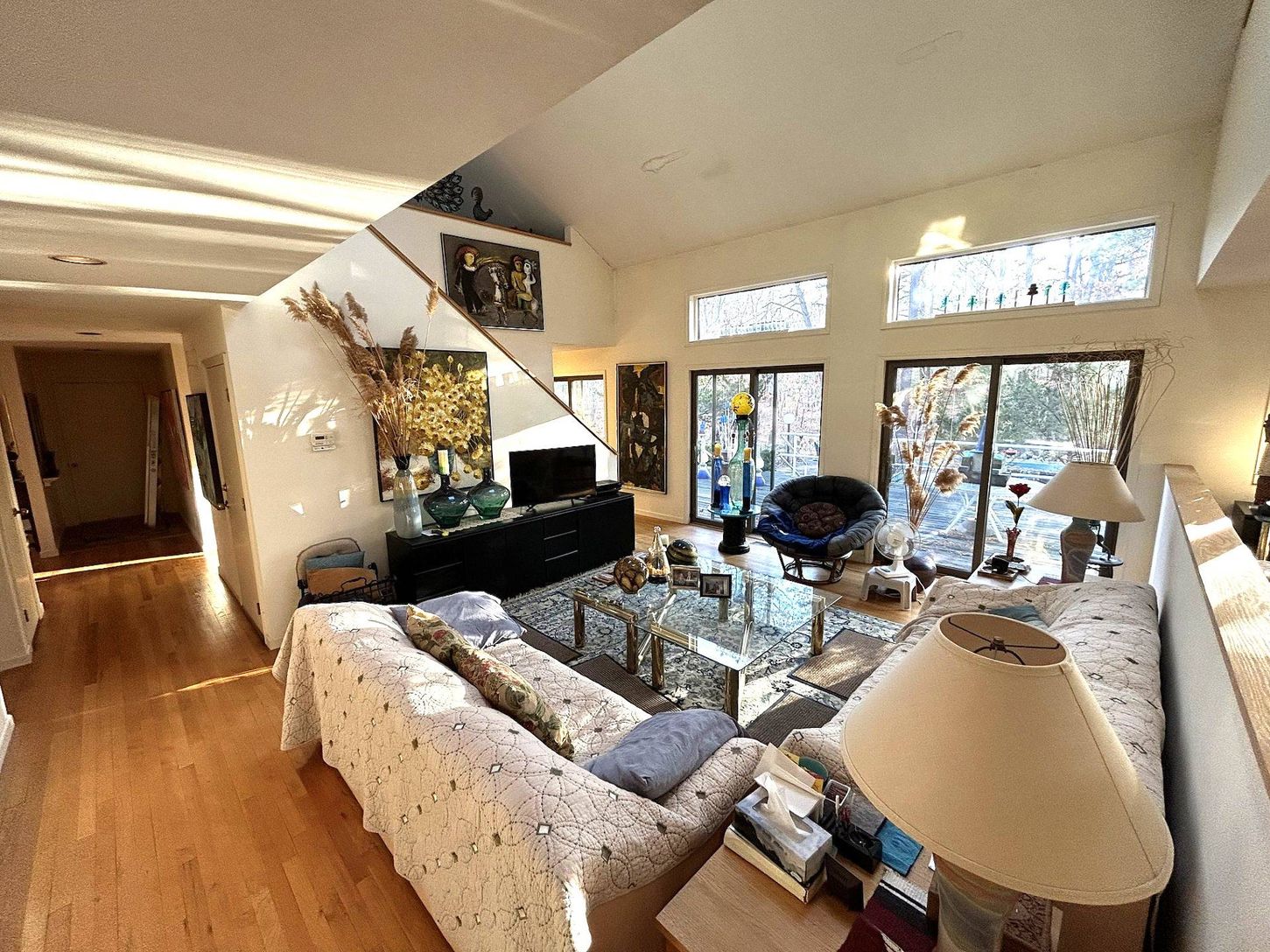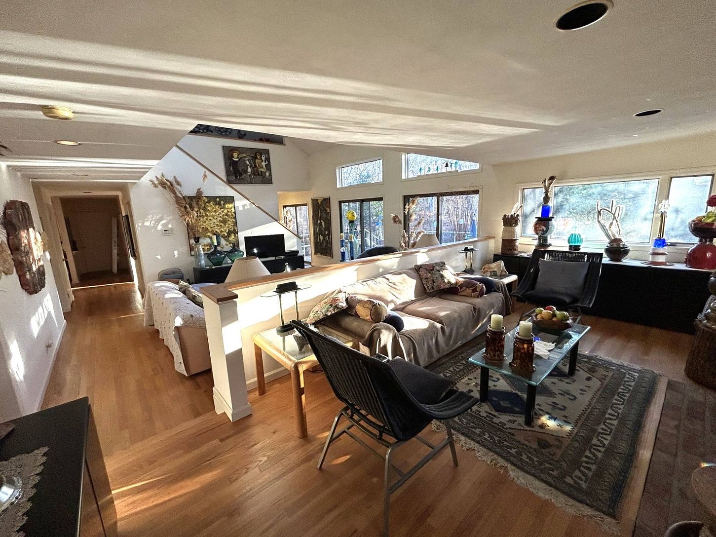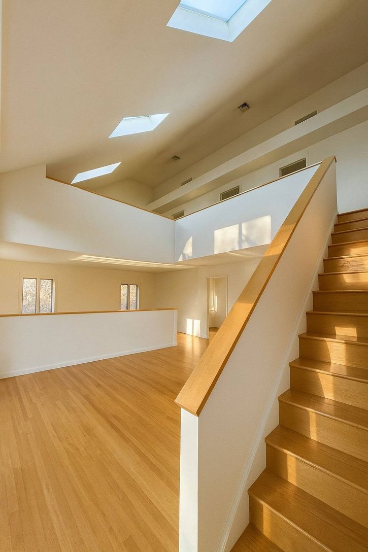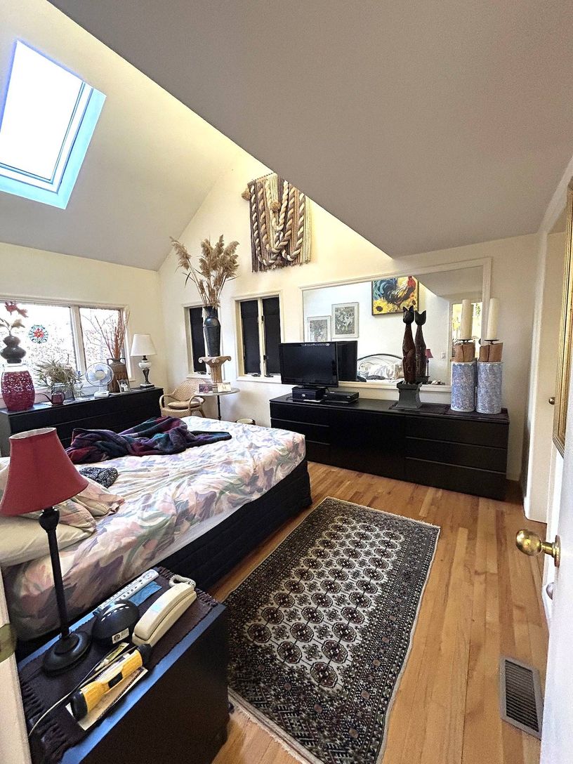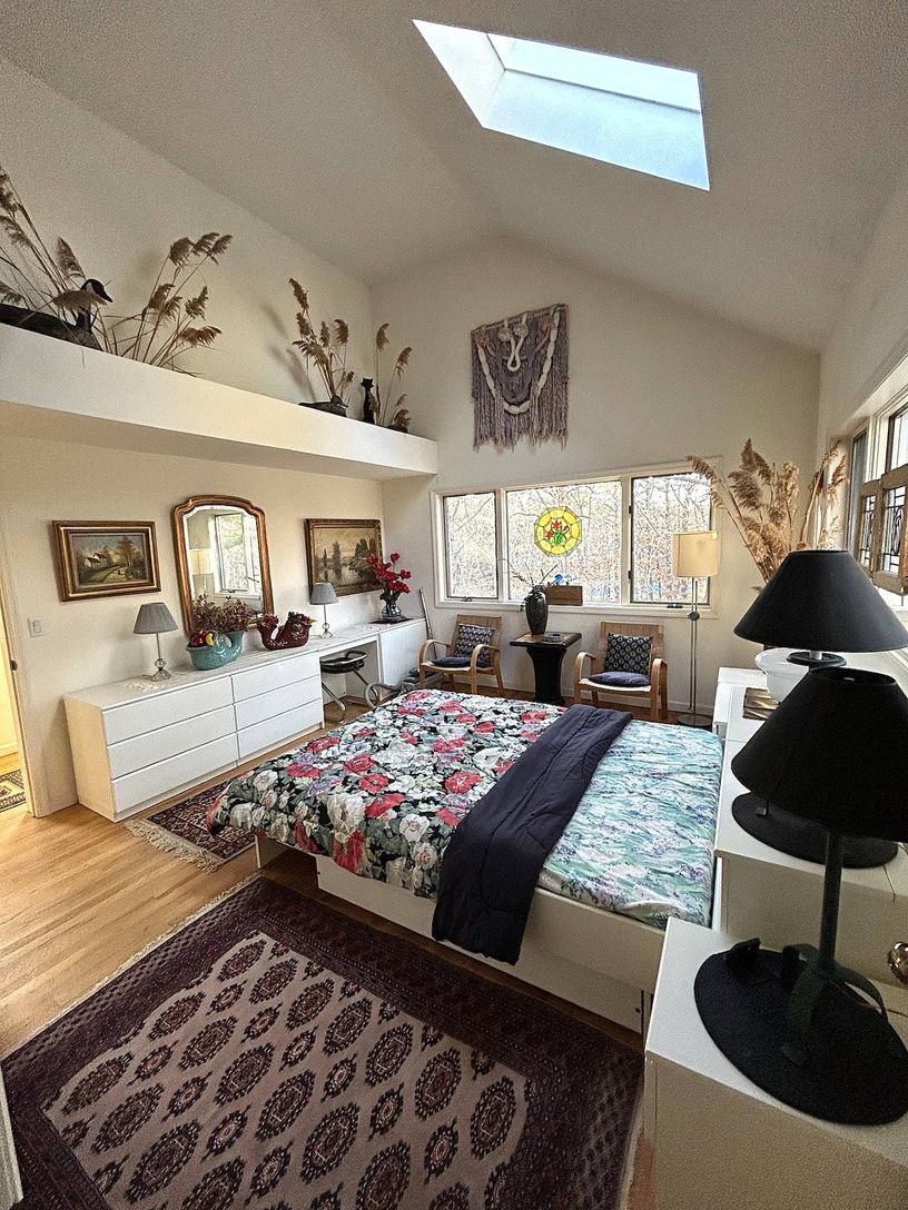 First time offered ever. Estate sale Post Modern, custom built on 2.5 Acres in 1990. Design ethos is solid, and airs lines evocative of current Modern school; with modest traditional Hamptons Saltbox volume. Close to land value, this home is a well considered investment to live in, never rented, low impact use and very well cared for. First Floor owner suite, formal dining room, original eat-in kitchen. Upstairs are two more guest rooms and tw