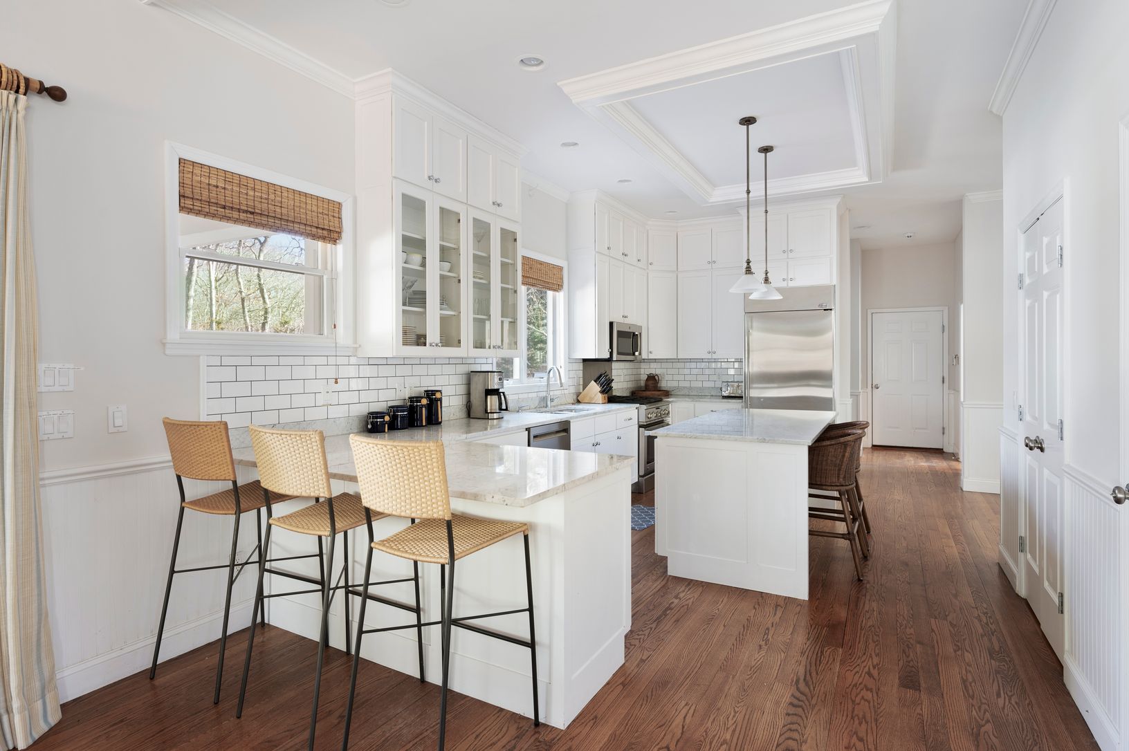 Nestled on a peaceful street just moments to the village, this exquisite home offers an unparalleled Hamptons experience. Ideally located with convenient access to popular restaurants and stunning ocean beaches, this residence offers everything you'll need for a delightful summer getaway. This immaculate home with its warm and inviting atmosphere boasts an open floor plan with 10-foot ceilings,