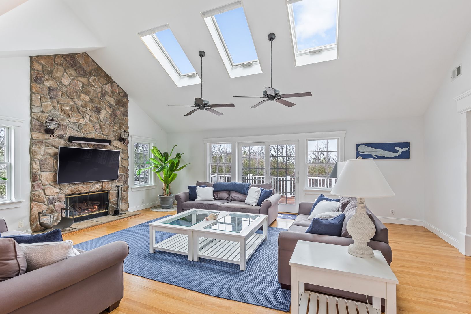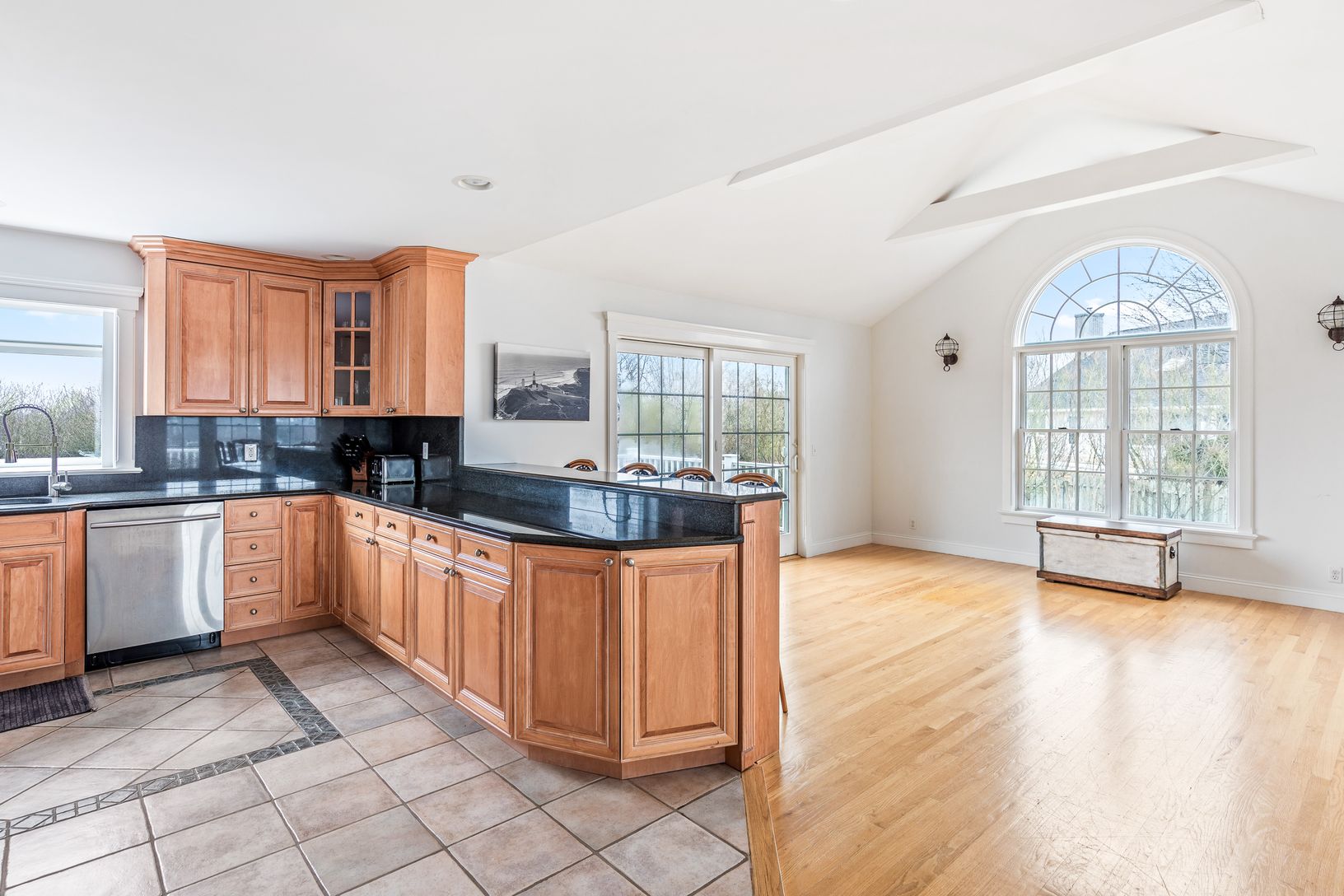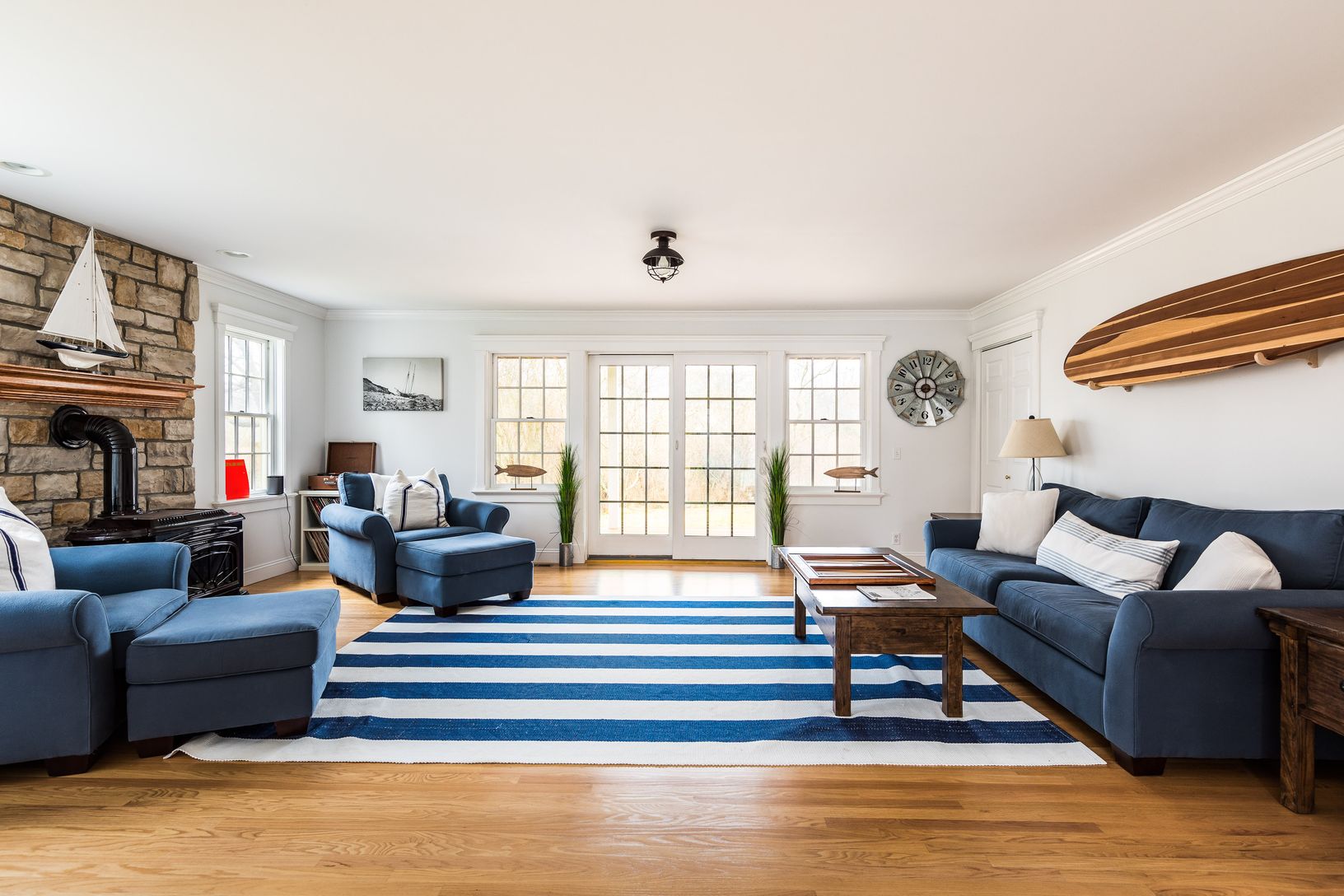 Conveniently located between Montauk Harbor and Main Street, this pristine traditional home offers 4 bedrooms and 3 bathrooms. The first floor has a master suite, 2 guest bedrooms, and a full bathroom, each providing access to an outdoor deck. A large room with wood-burning stove and a laundry are also located on this floor. Upstairs offers an open, eat-in kitchen with stainless steel appliances, a formal dining room, breakfast area/den and a