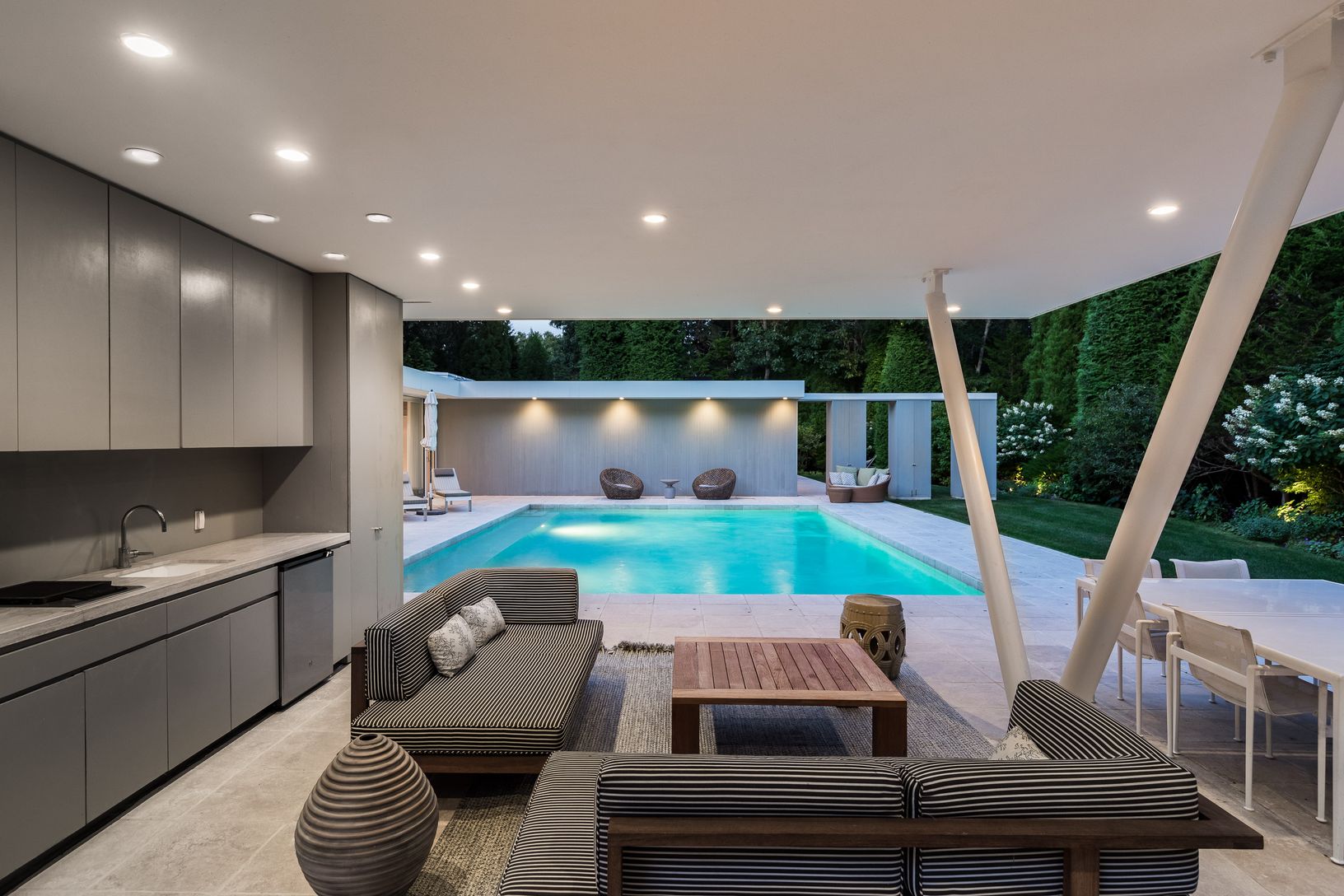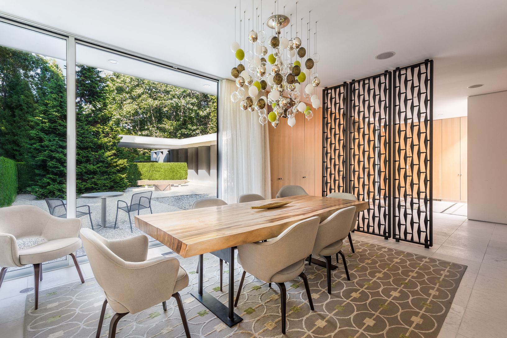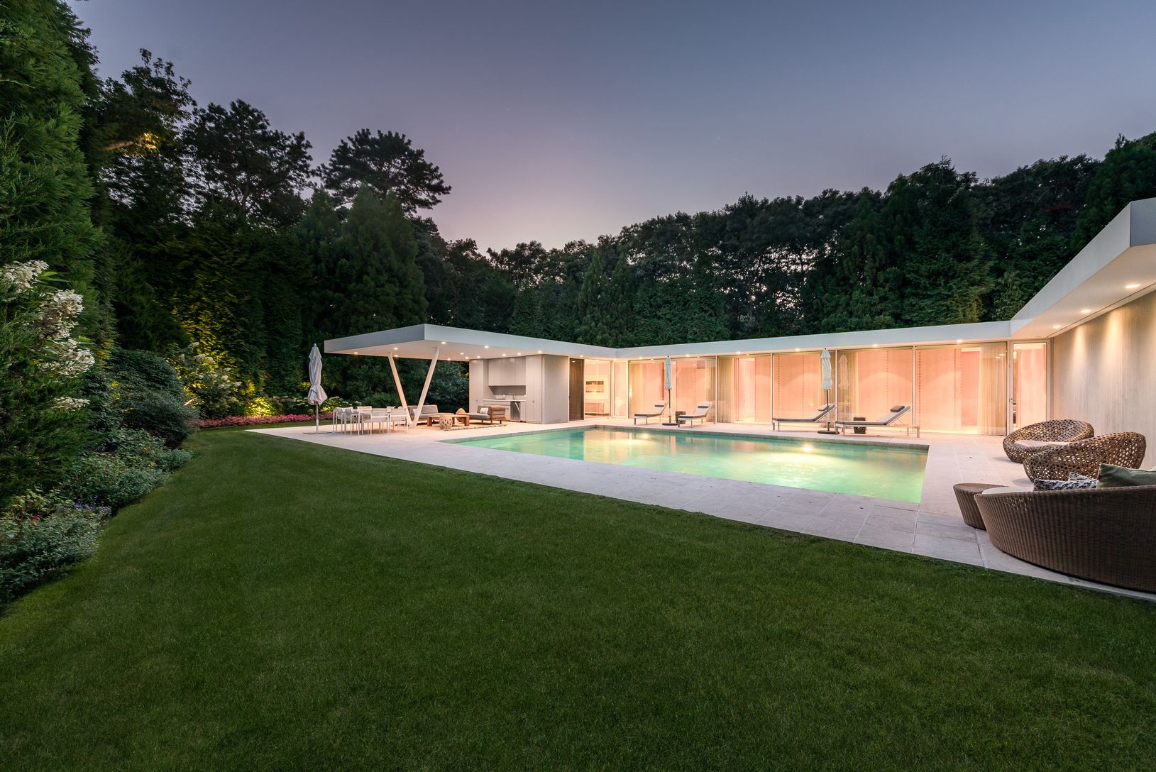 This Shigeru Ban masterpiece sets a new benchmark in flawless luxury. Every inch of this remarkable residence has been crafted to offer impeccable taste which embraces the intersection of architecture and art. The only home built byBan in all of Long Island, this elegant and modern glass structure is completed with exceptional furnishings by renowned designer Shamir Shah.Walking up to this magnificent 5 bedroom, 5.5 bath home, you will be gree